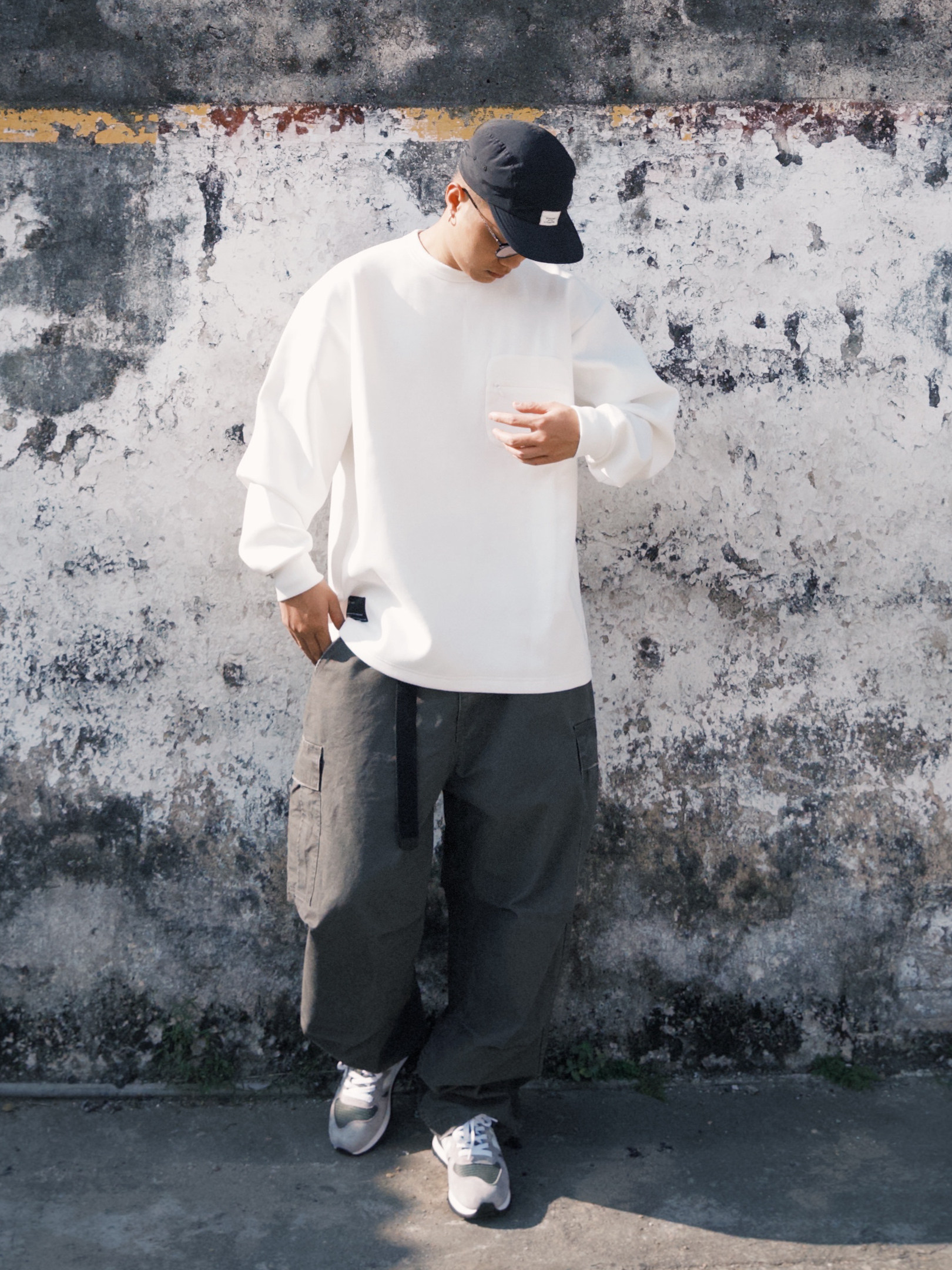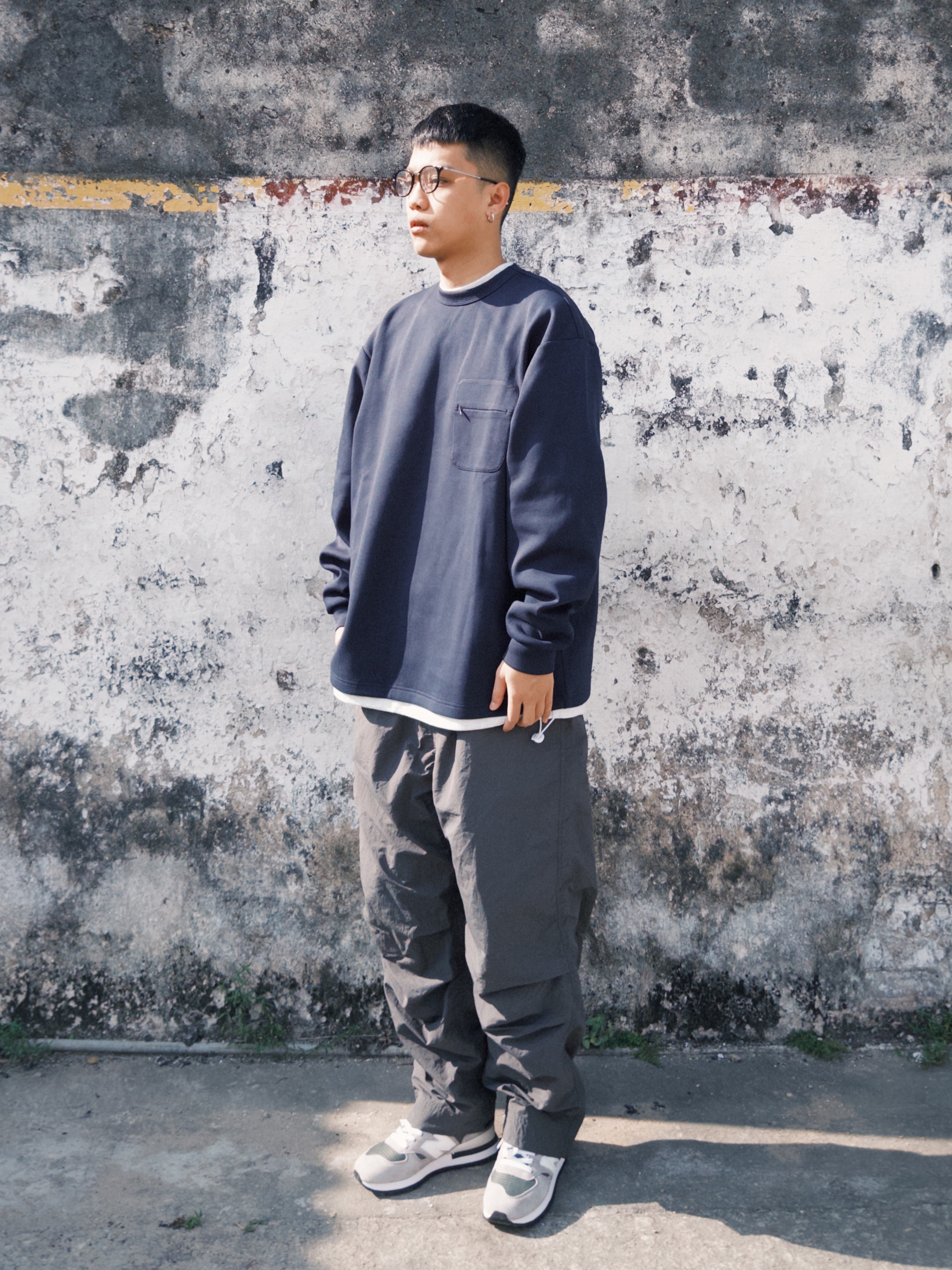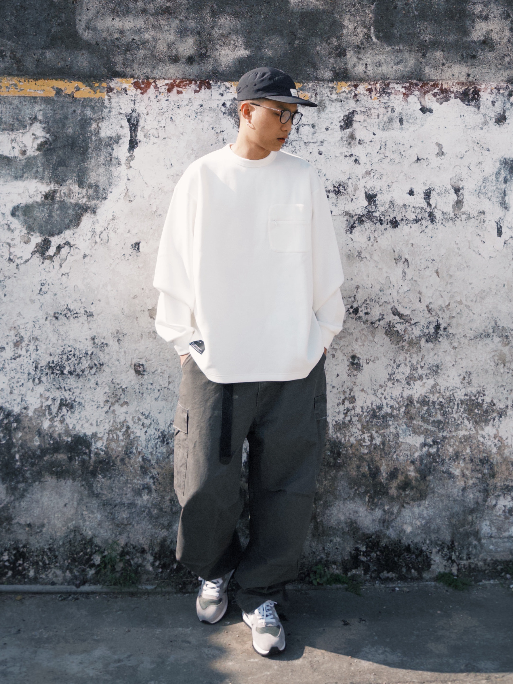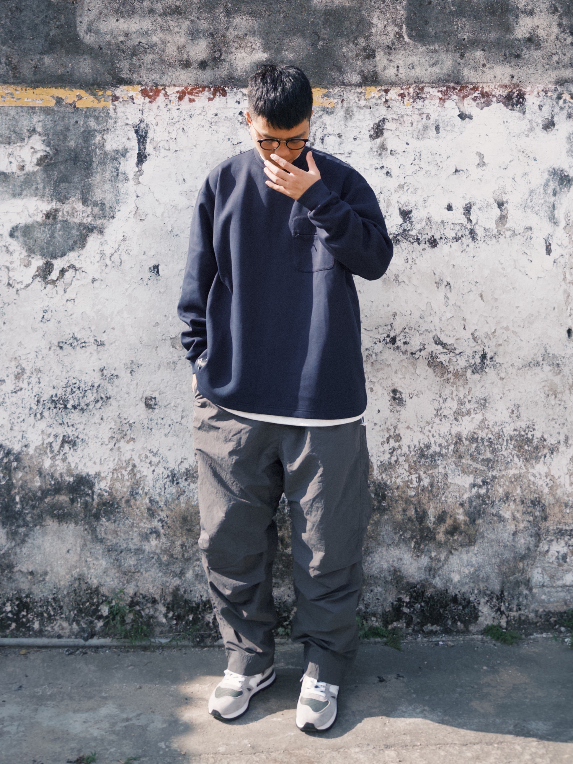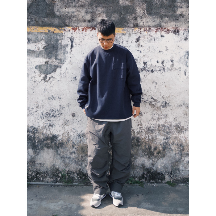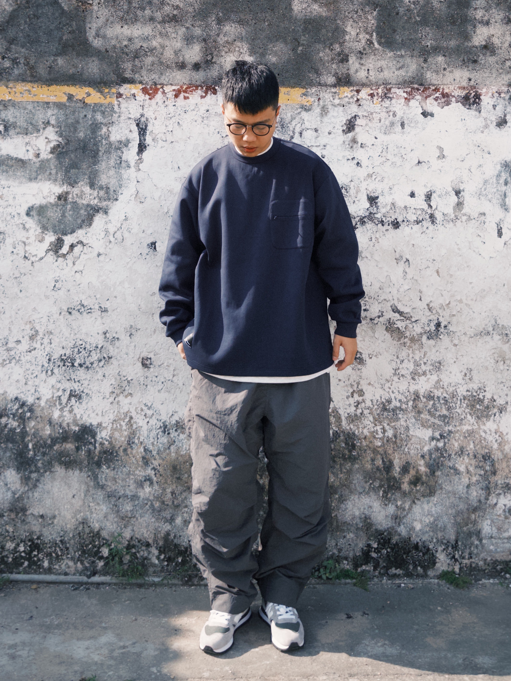 NESSTTU 24SS日系空氣層圓領長袖衛衣春季新款寬松休閒基礎上衣男
