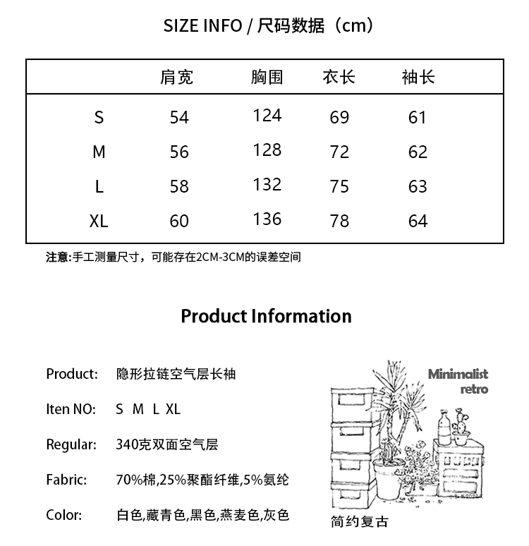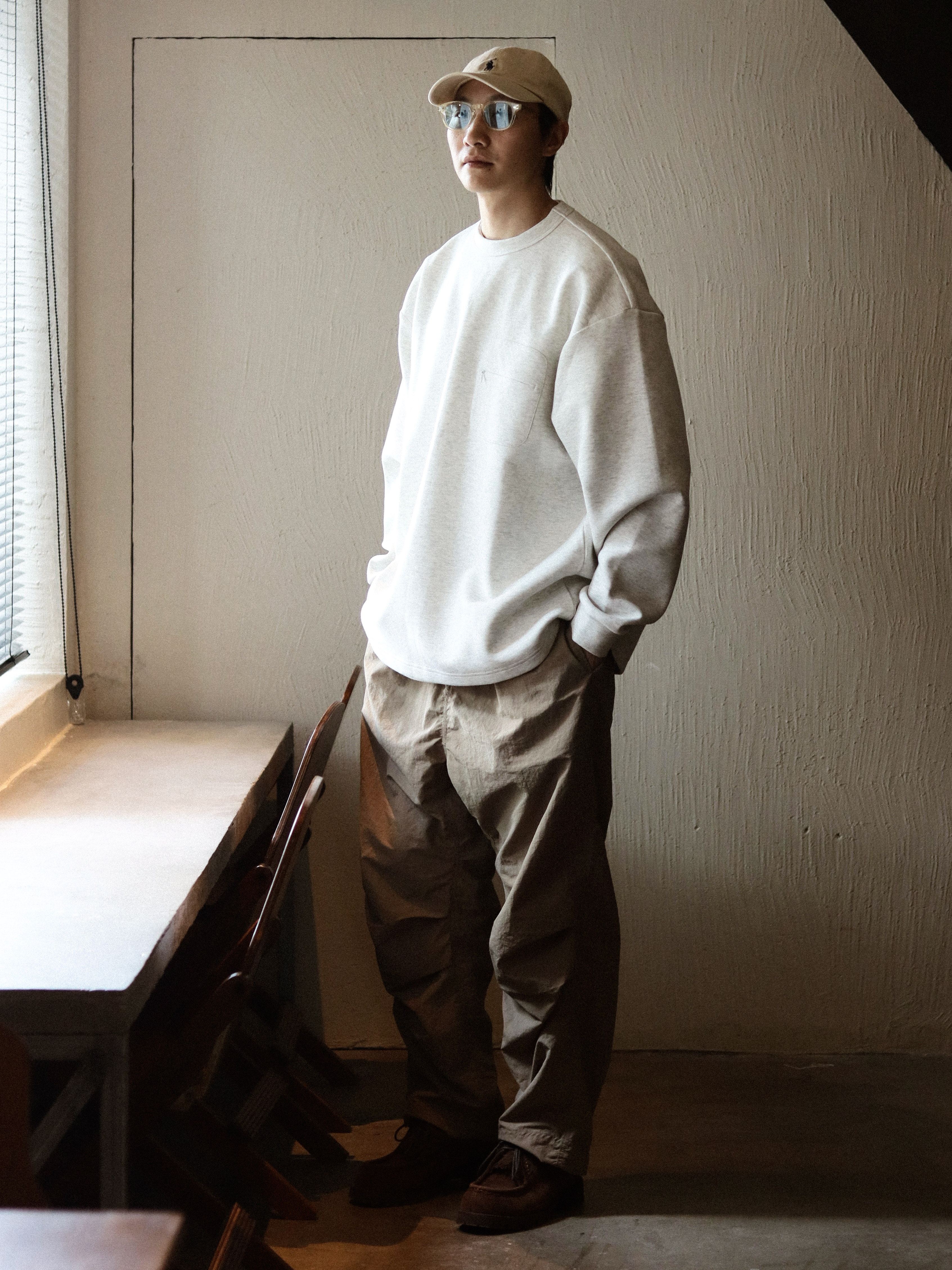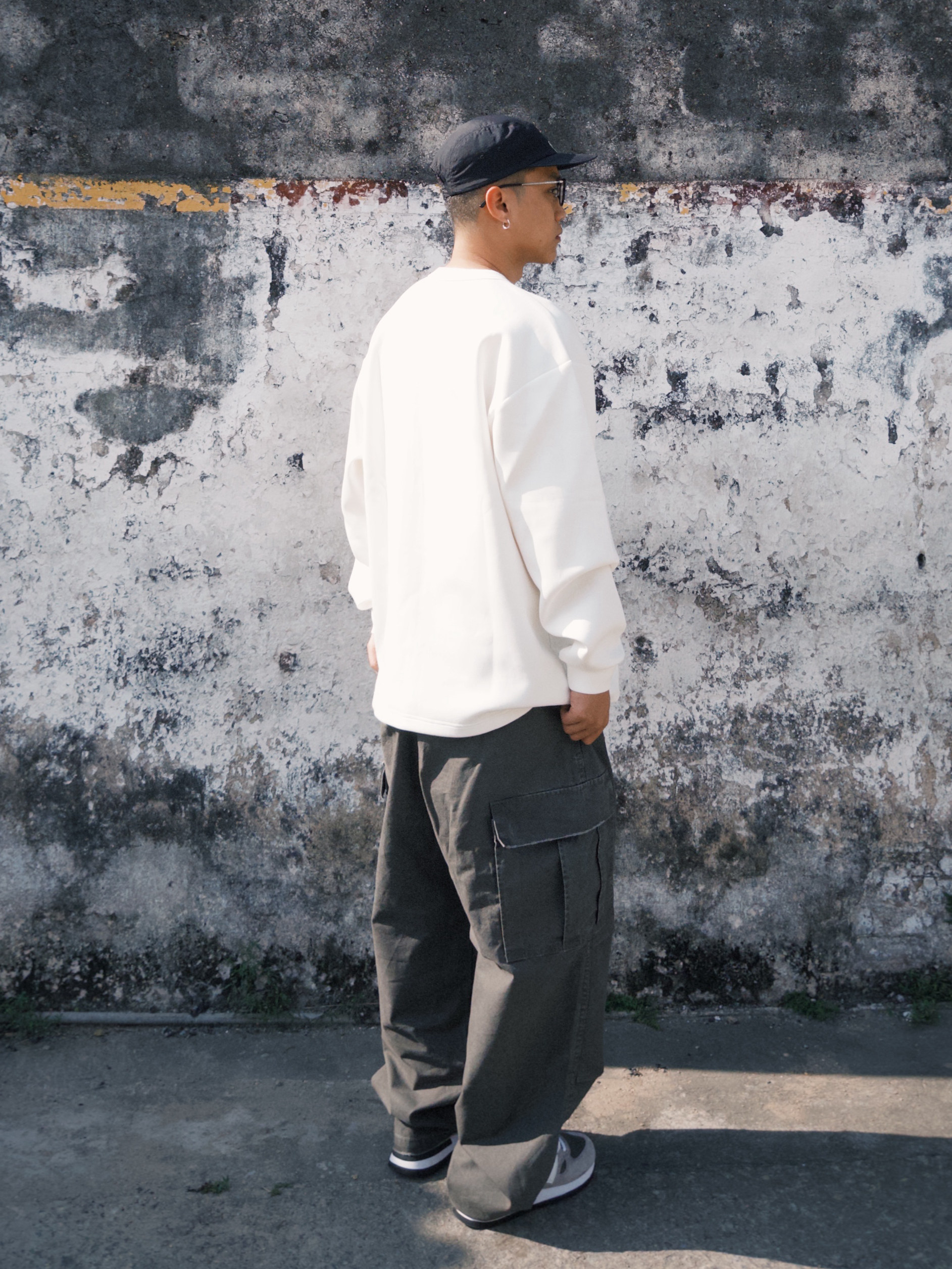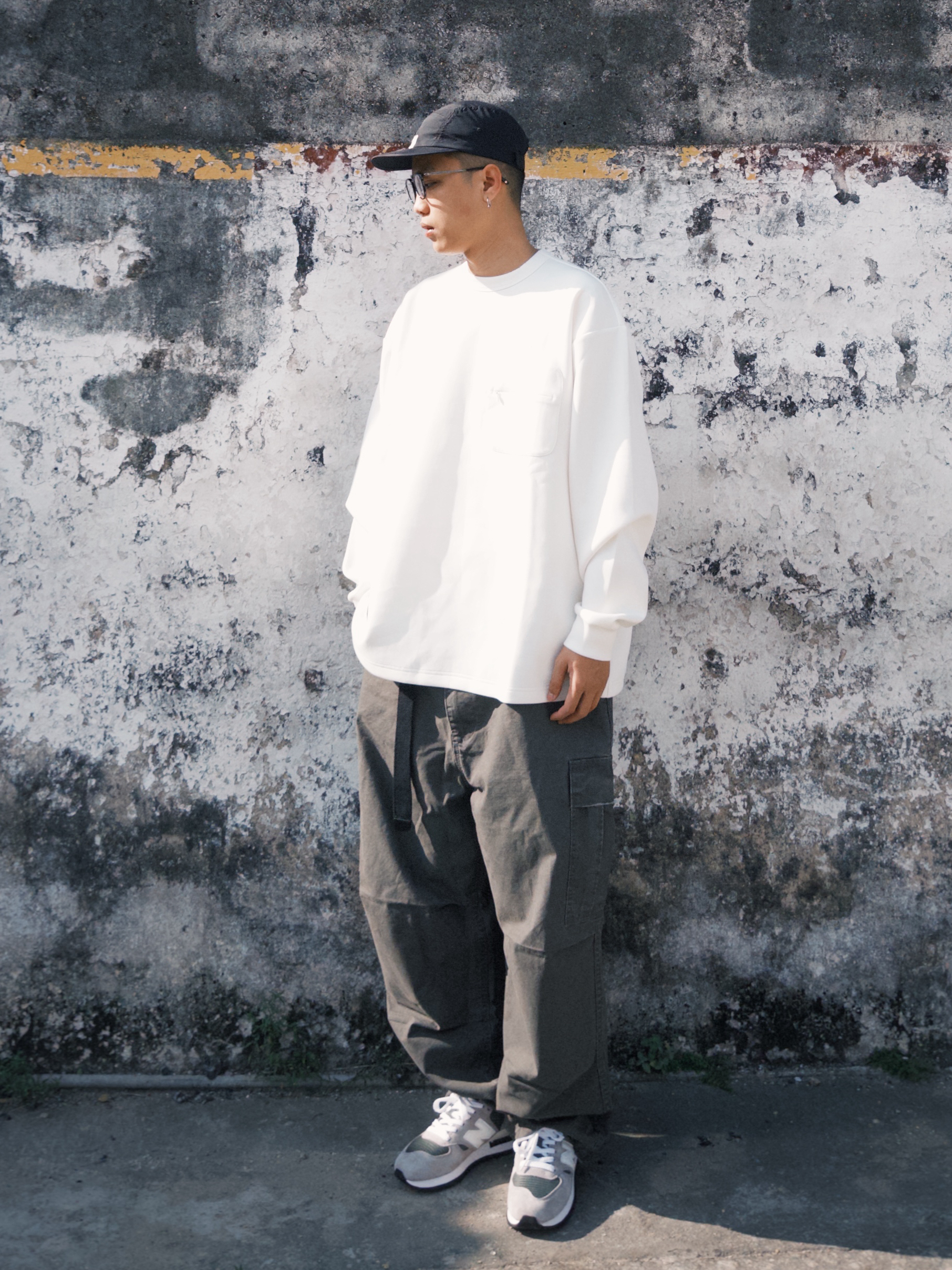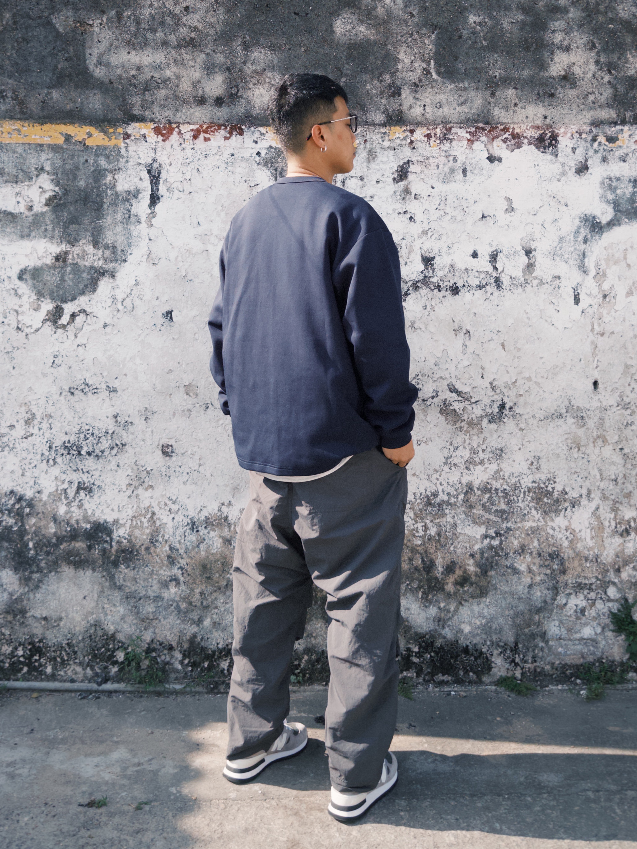 NESSTTU 24SS日系空氣層圓領長袖衛衣春季新款寬松休閒基礎上衣男