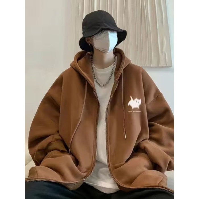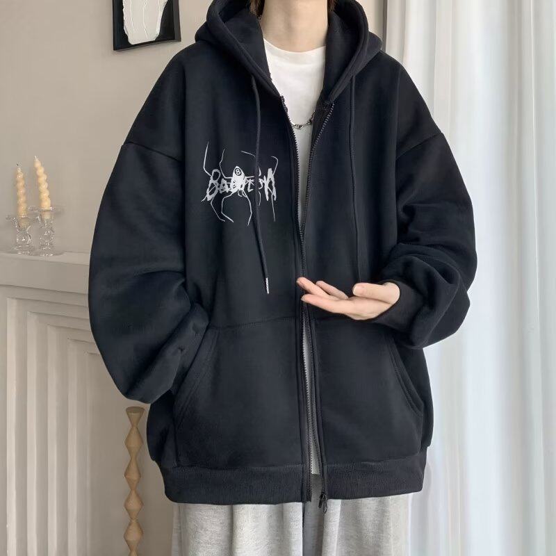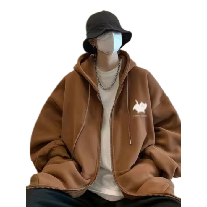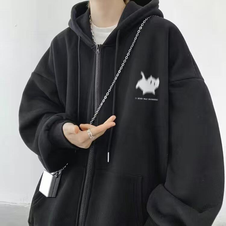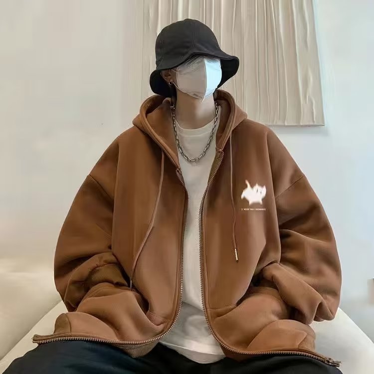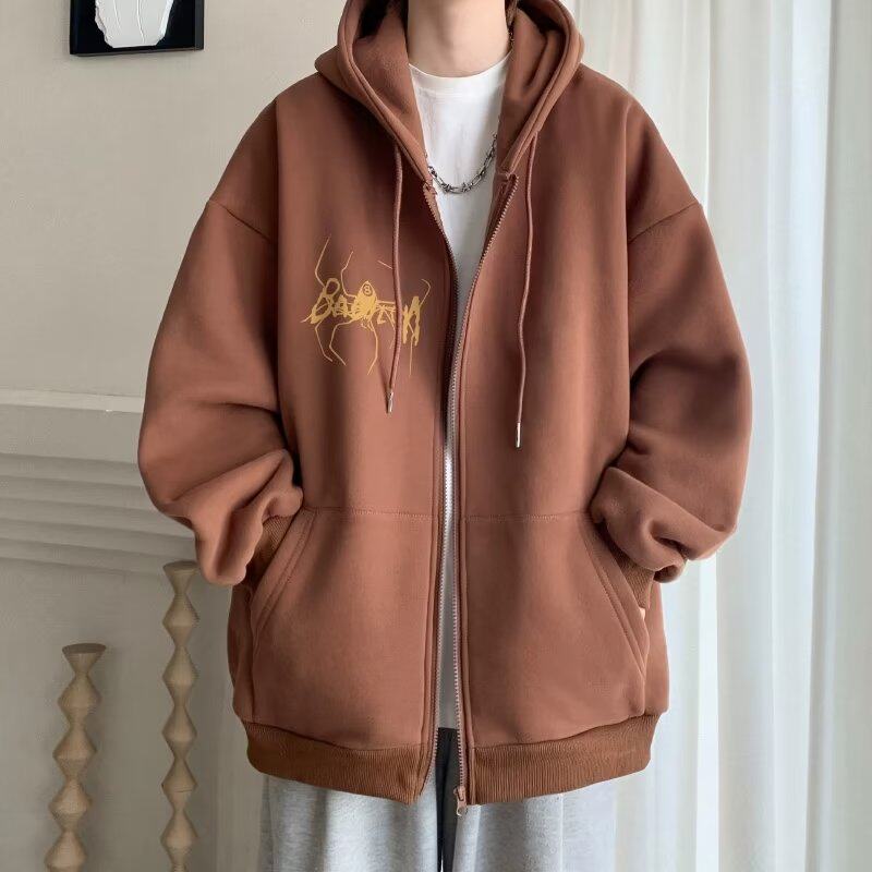 300斤穿開衫衛衣男冬季新款復古重磅連帽加絨外套大碼拉鍊外套男