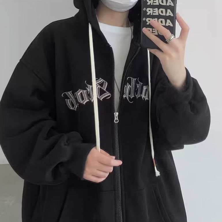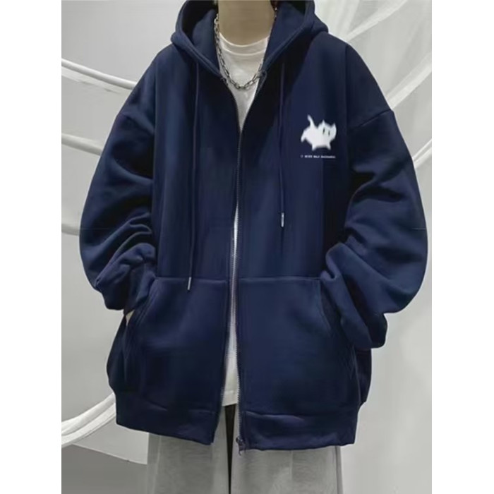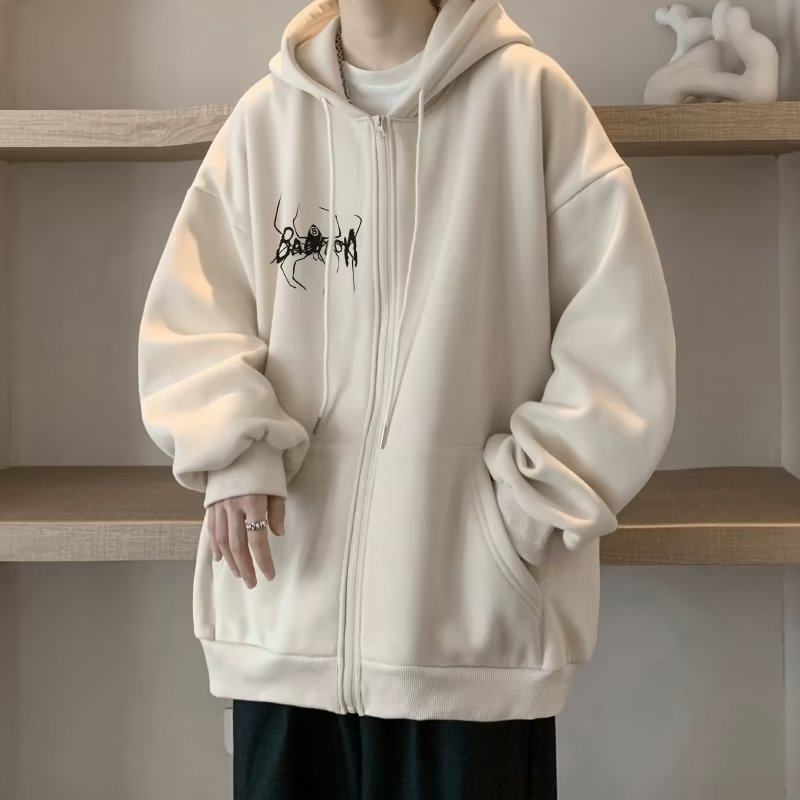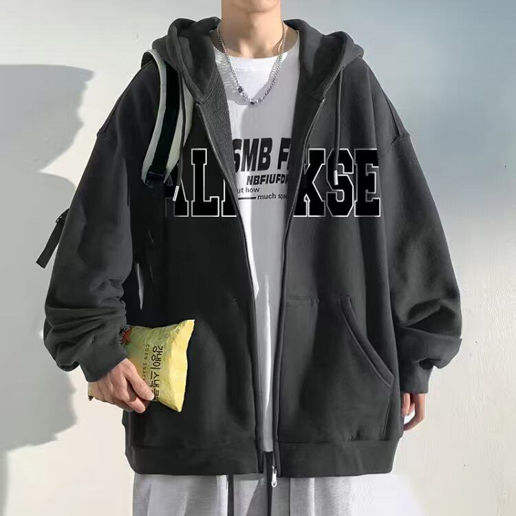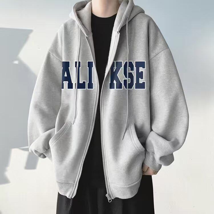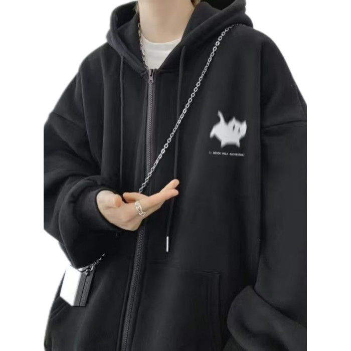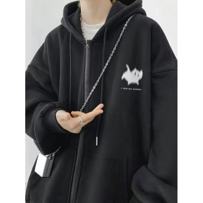 300斤穿開衫衛衣男冬季新款復古重磅連帽加絨外套大碼拉鍊外套男