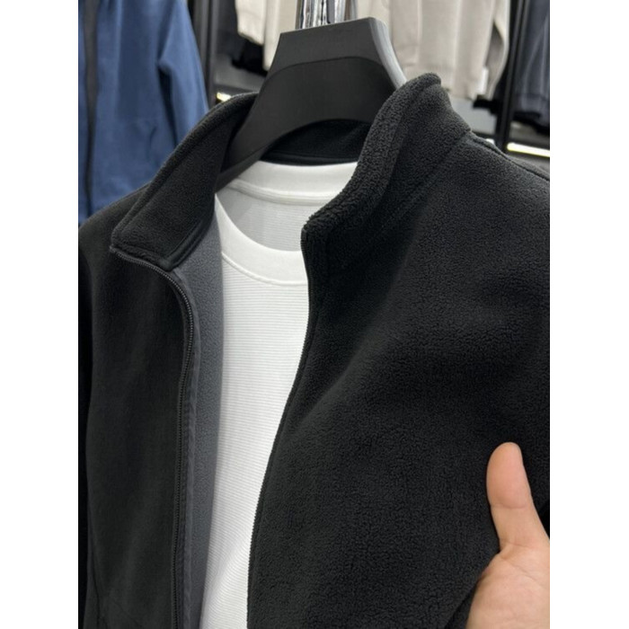 潮牌搖粒絨立領外套男士秋冬季開衫衛衣男抓絨保暖雙面搖粒絨上衣