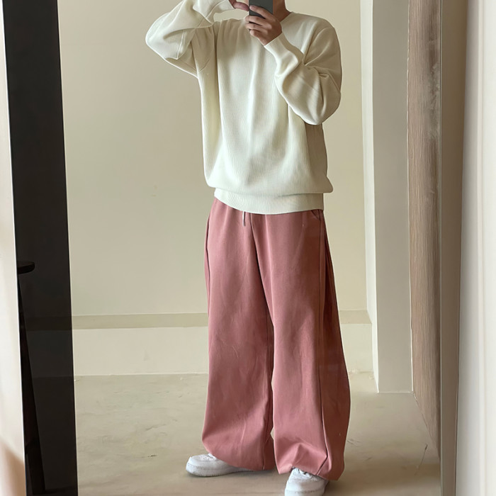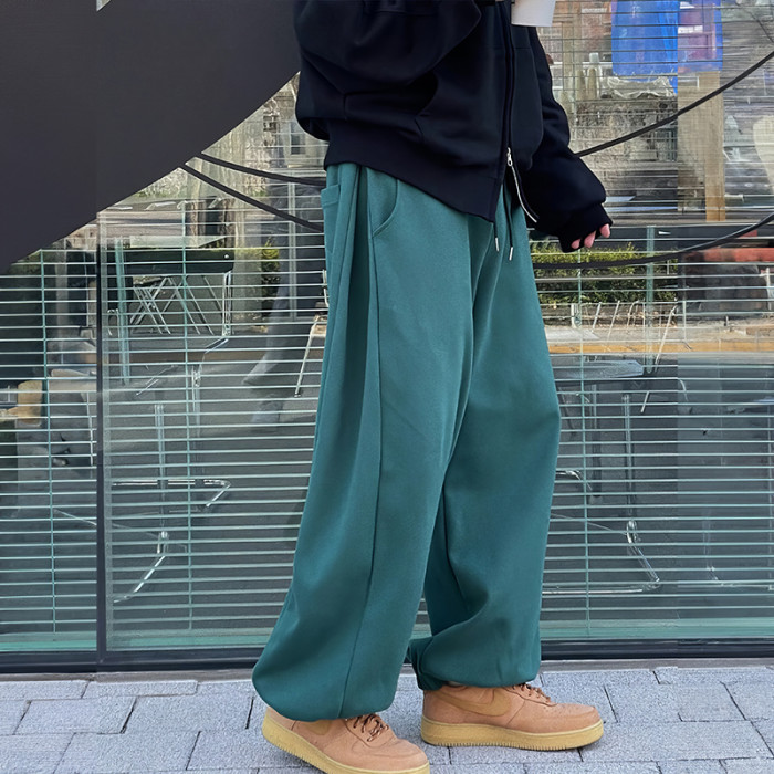 褲子男春季垂墜感濶腿束腳運動衛褲美式復古痞帥重磅寬鬆休閒長褲