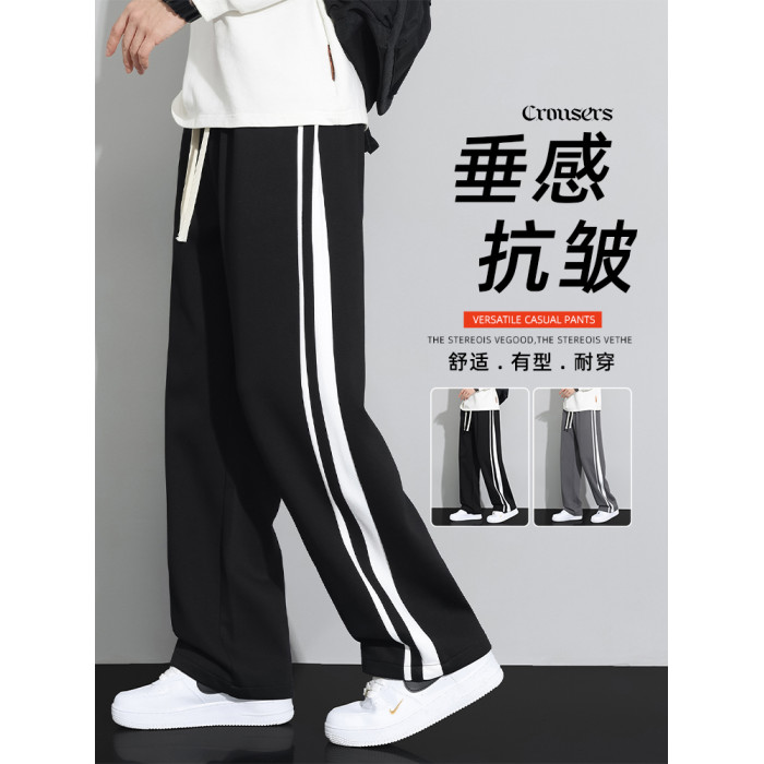 加絨加厚衛褲男士春秋季直筒運動褲寬松秋冬青少年男生休閒長褲子