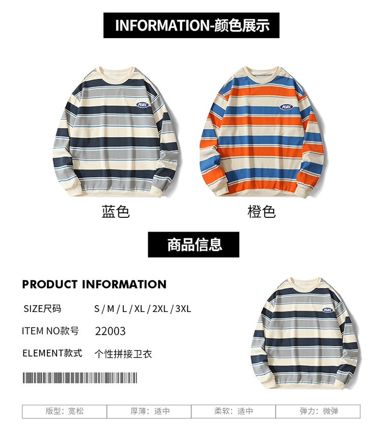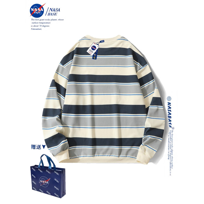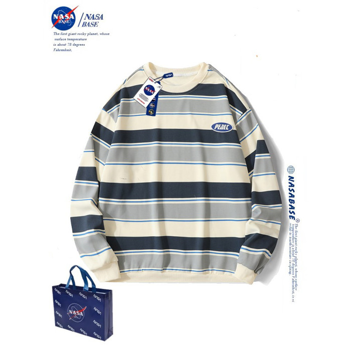 NASA聯名春秋原宿風上衣ins美式街頭復古條紋情侶長袖t恤衛衣男潮