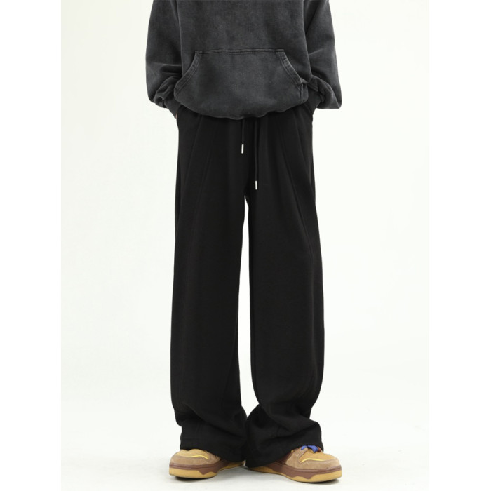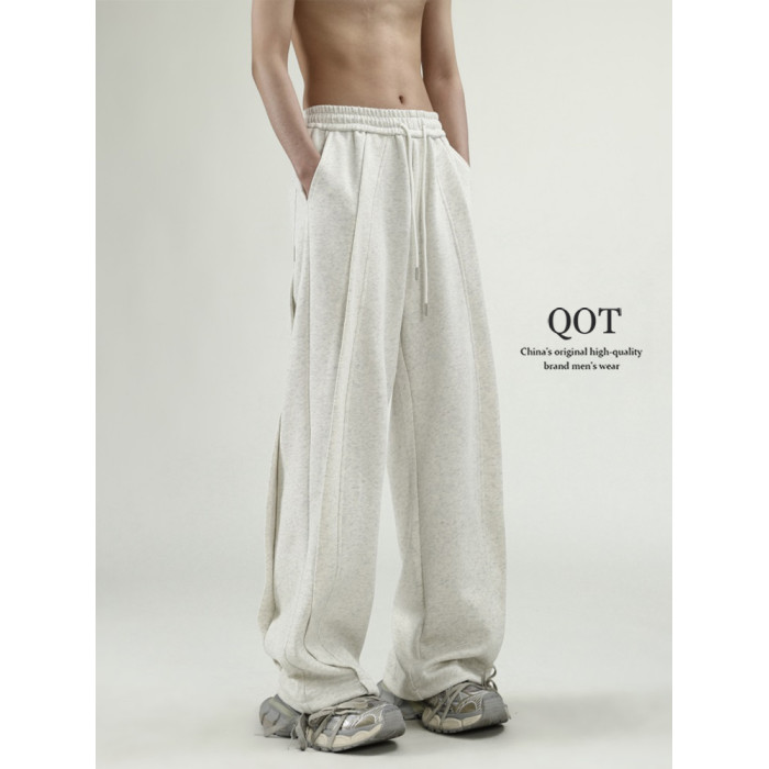 美式解搆休閒衛褲男女秋季重磅潮牌設計感直筒褲原創寬松運動褲子