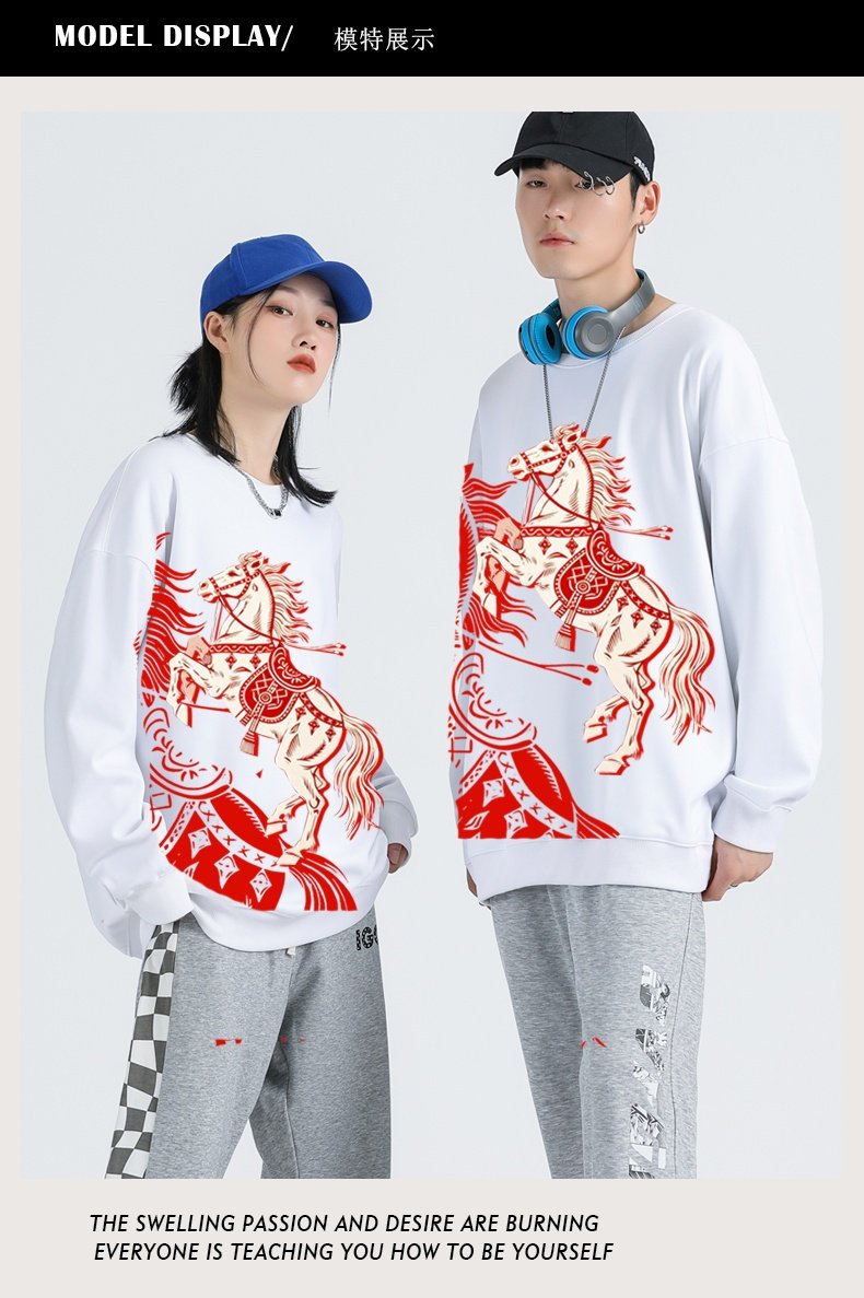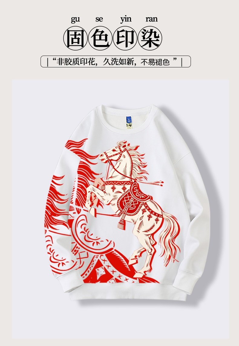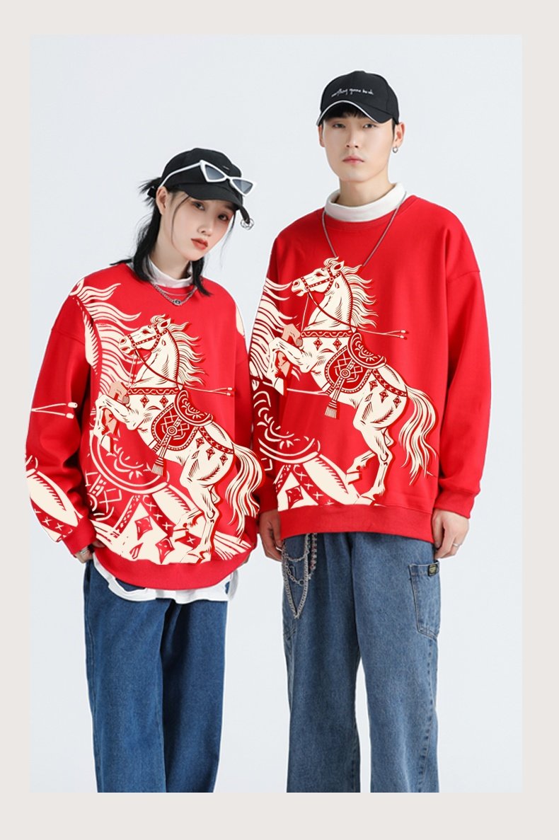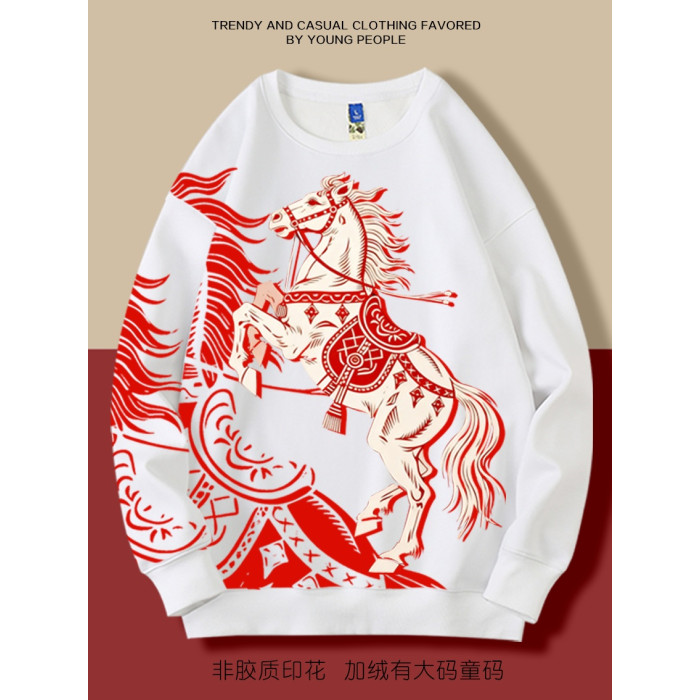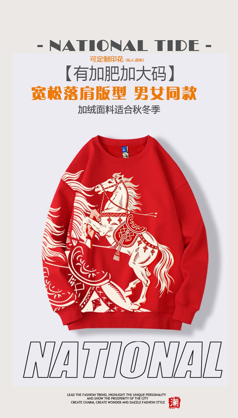 本命年馬年2026新年圓領加絨衛衣打底寬鬆休閒男女大碼有童碼紅色
