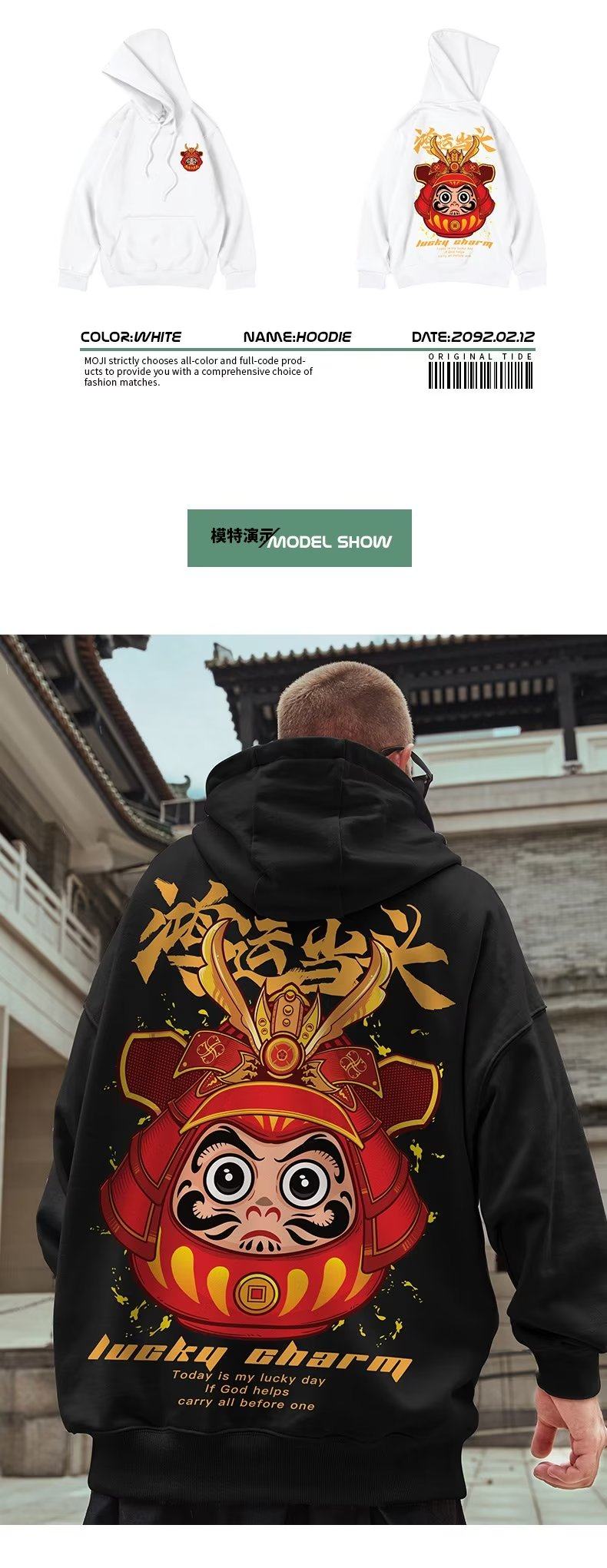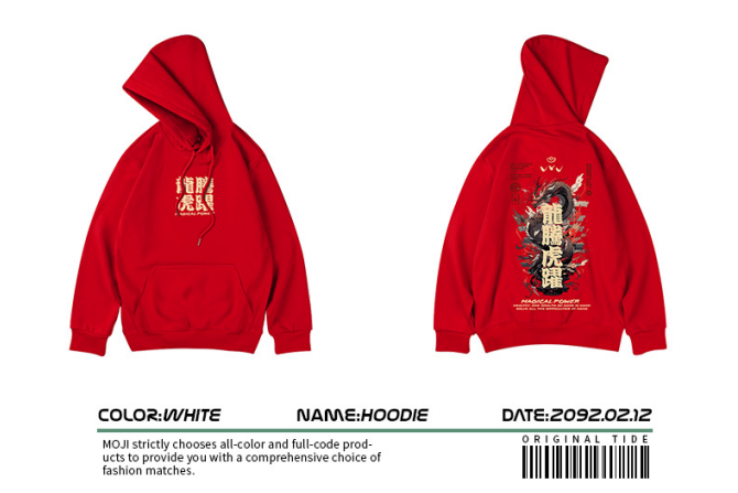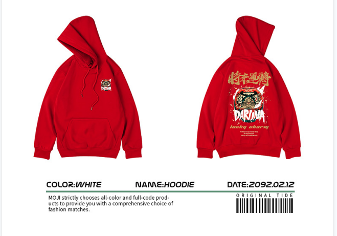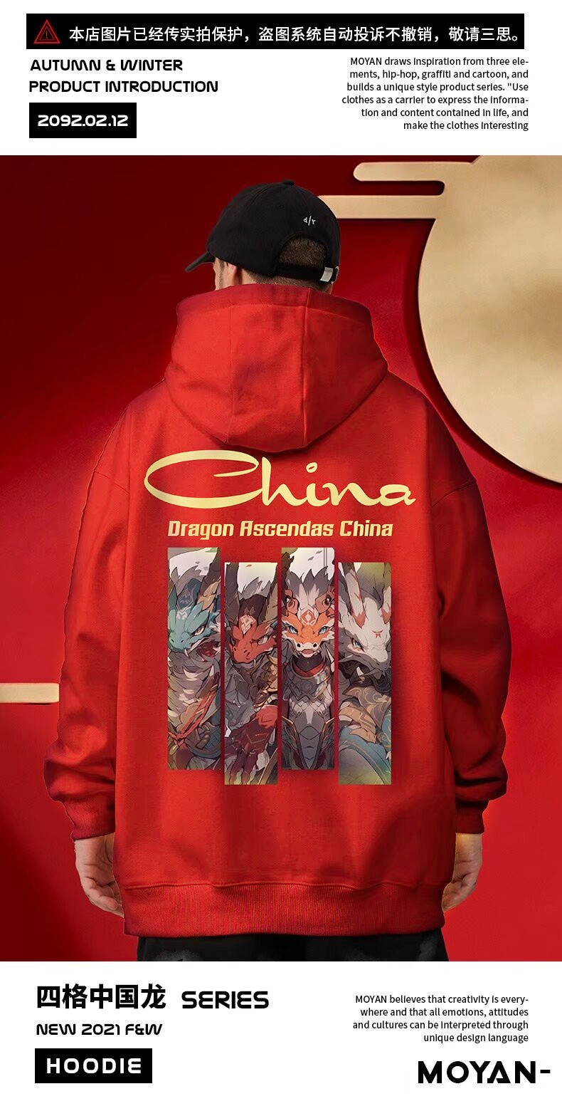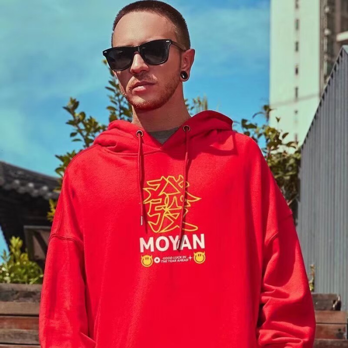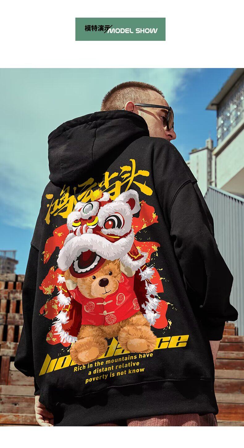 國潮發財風紅色本命年連帽套頭衛衣男寬鬆大加絨加厚新年外套