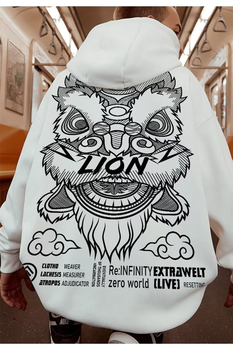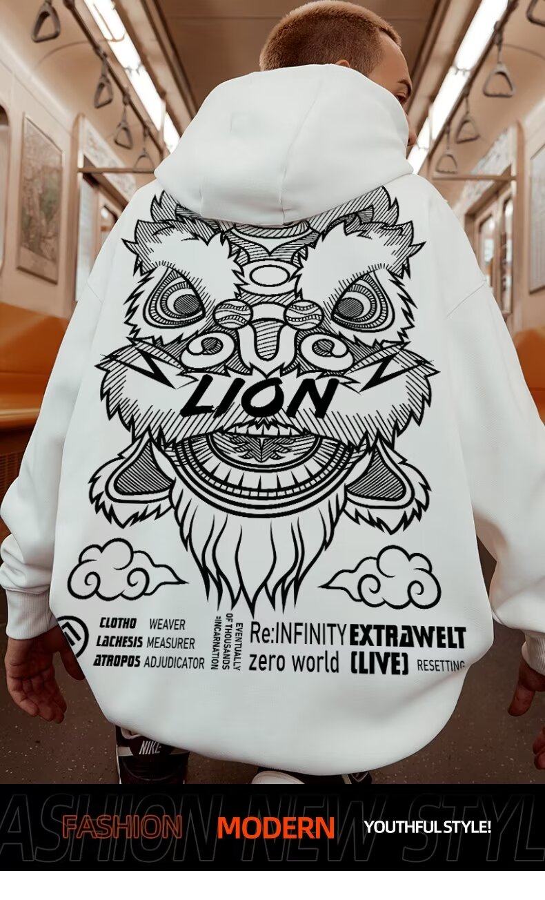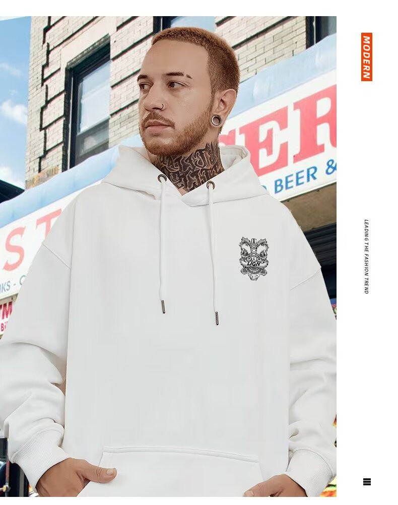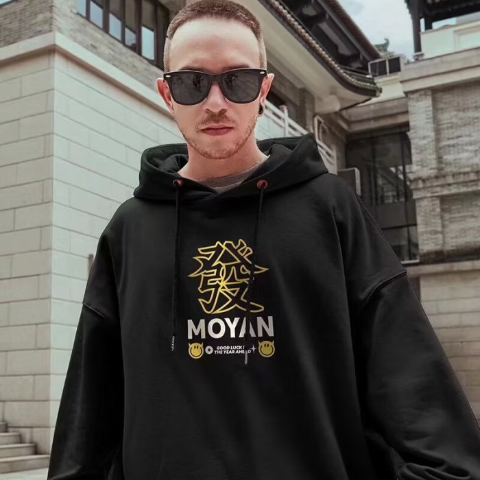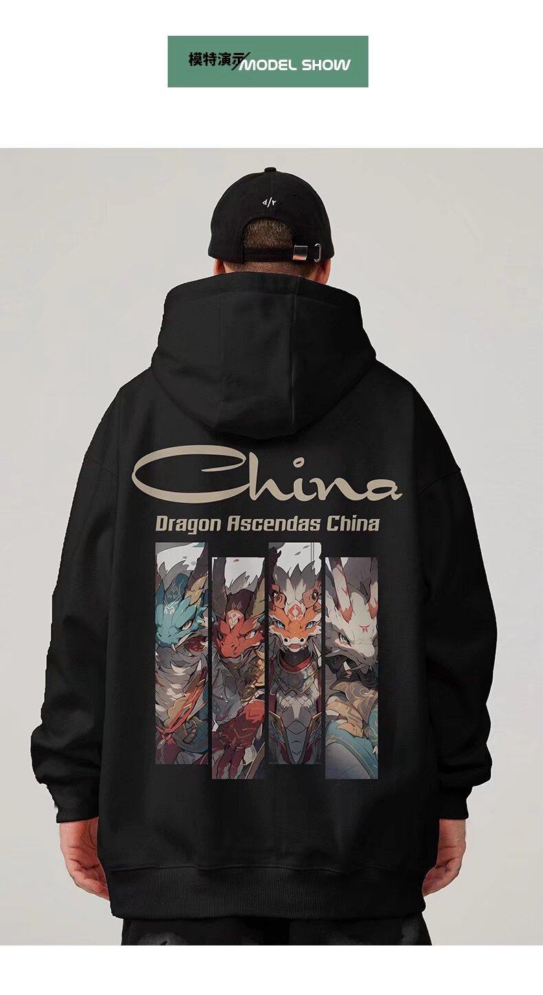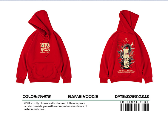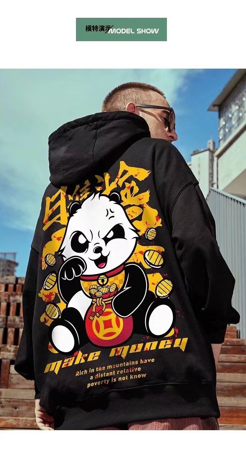 國潮發財風紅色本命年連帽套頭衛衣男寬鬆大加絨加厚新年外套