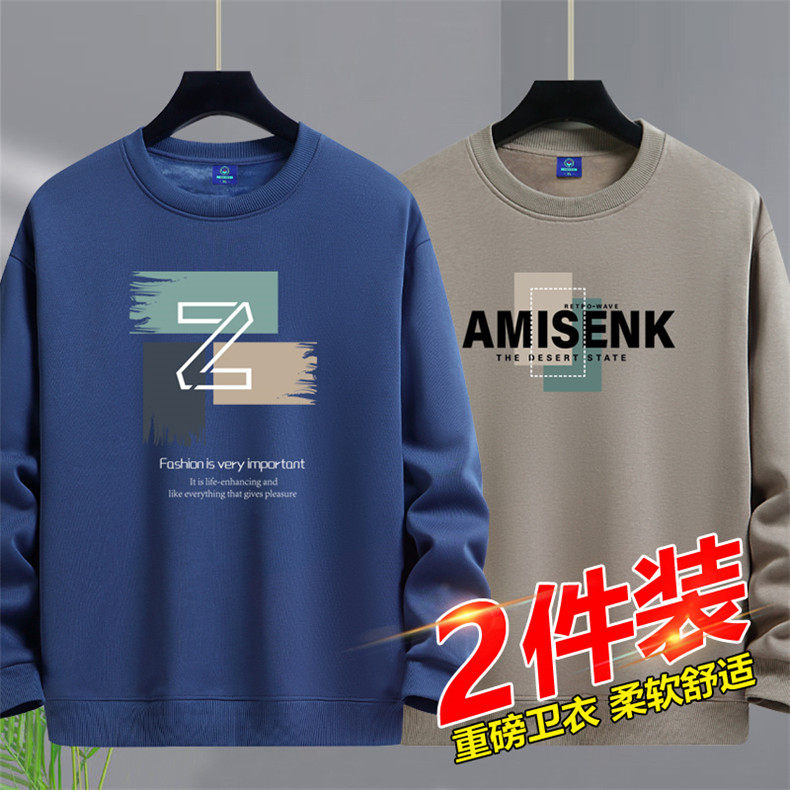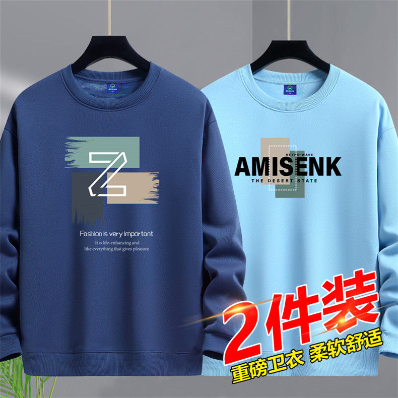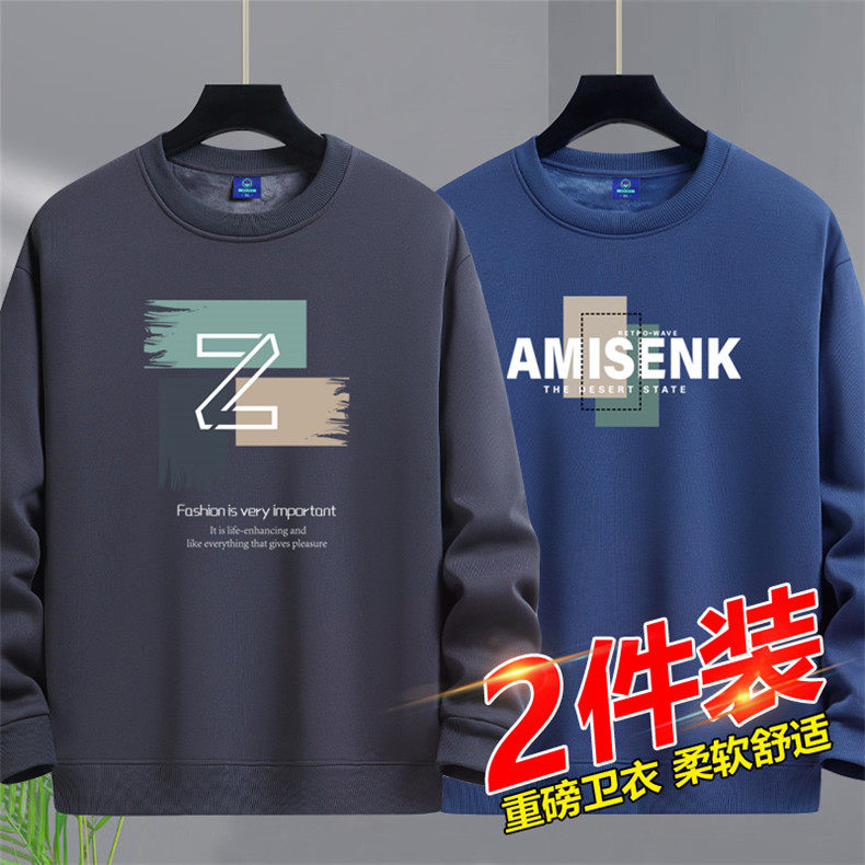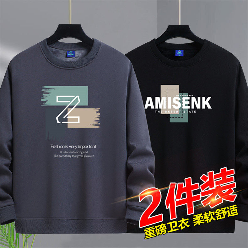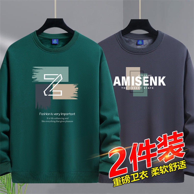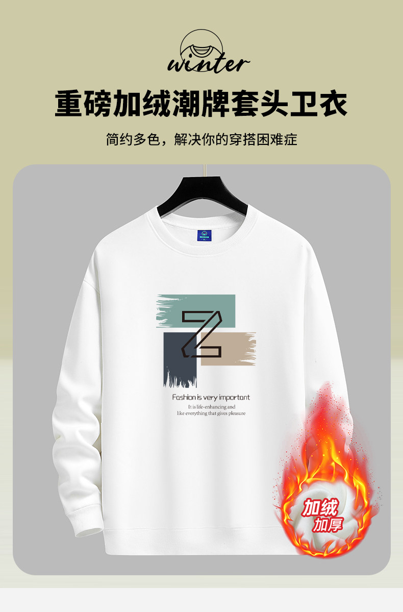 加絨加厚套頭圓領衛衣男純棉打底衫潮流百搭休閒長袖體恤寬鬆上衣