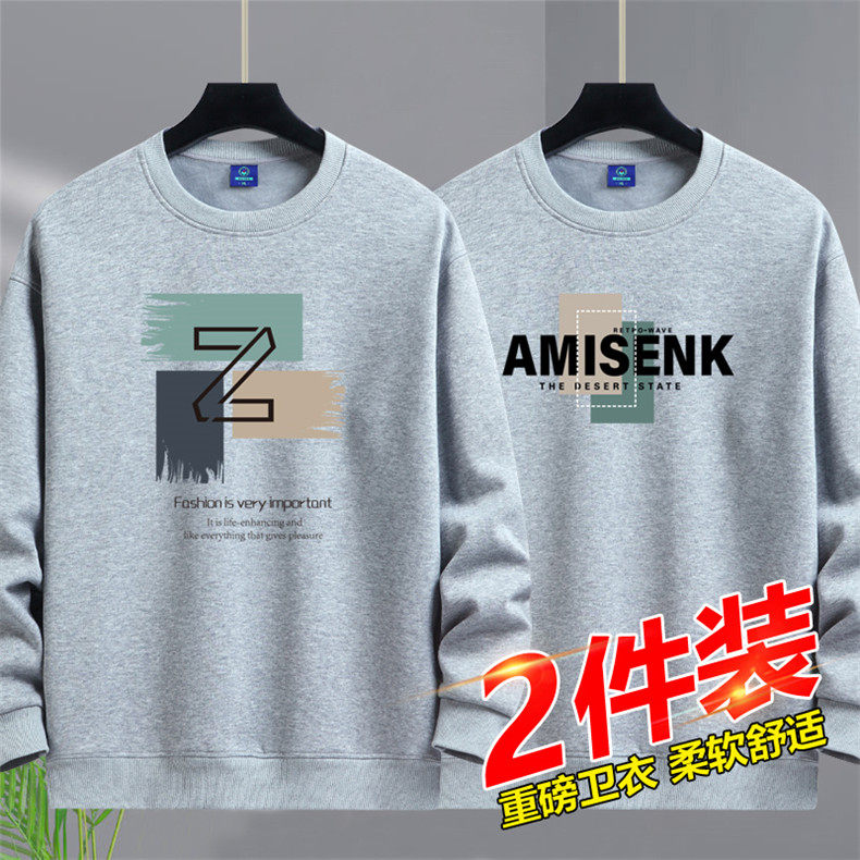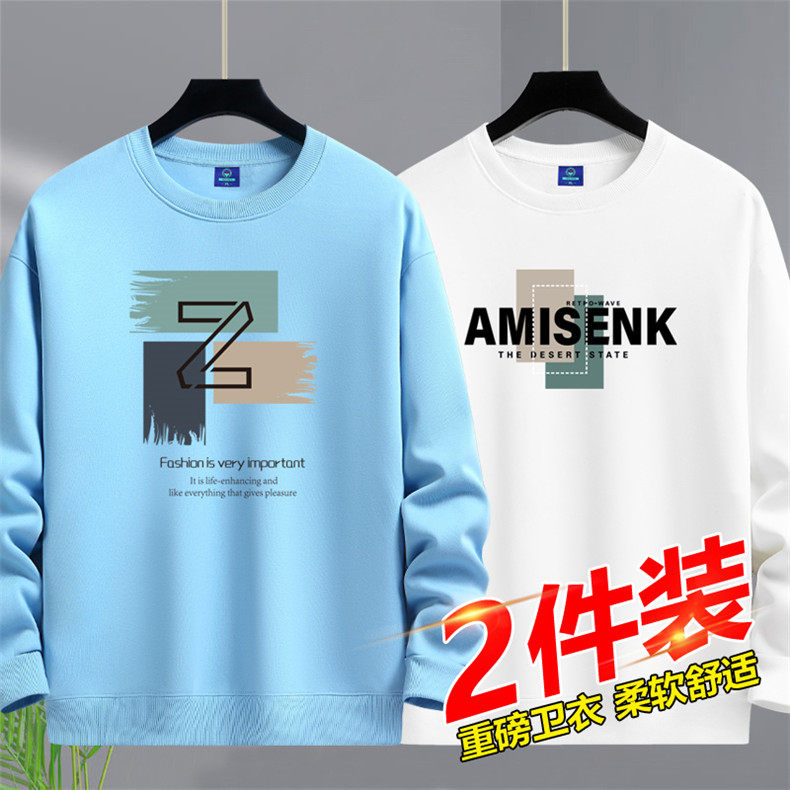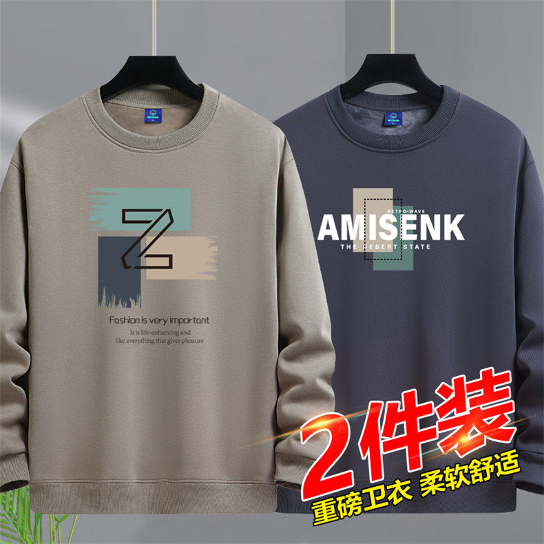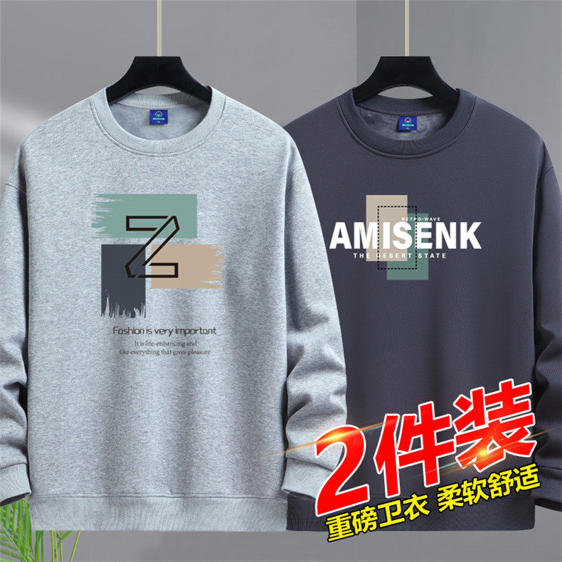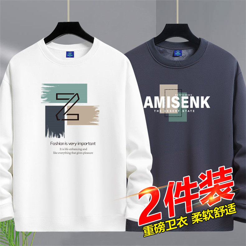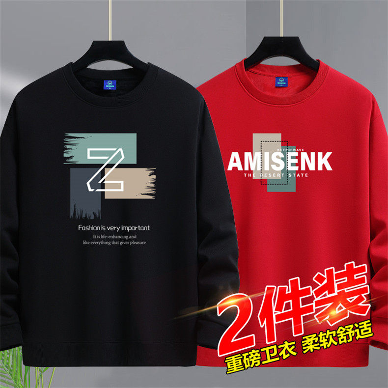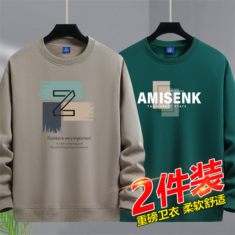 加絨加厚套頭圓領衛衣男純棉打底衫潮流百搭休閒長袖體恤寬鬆上衣
