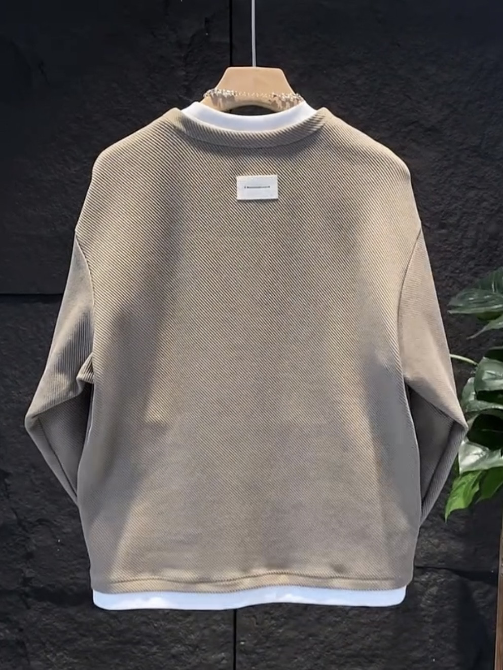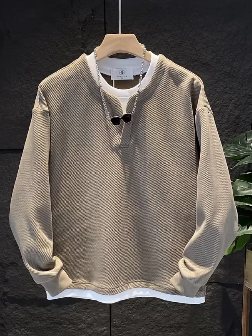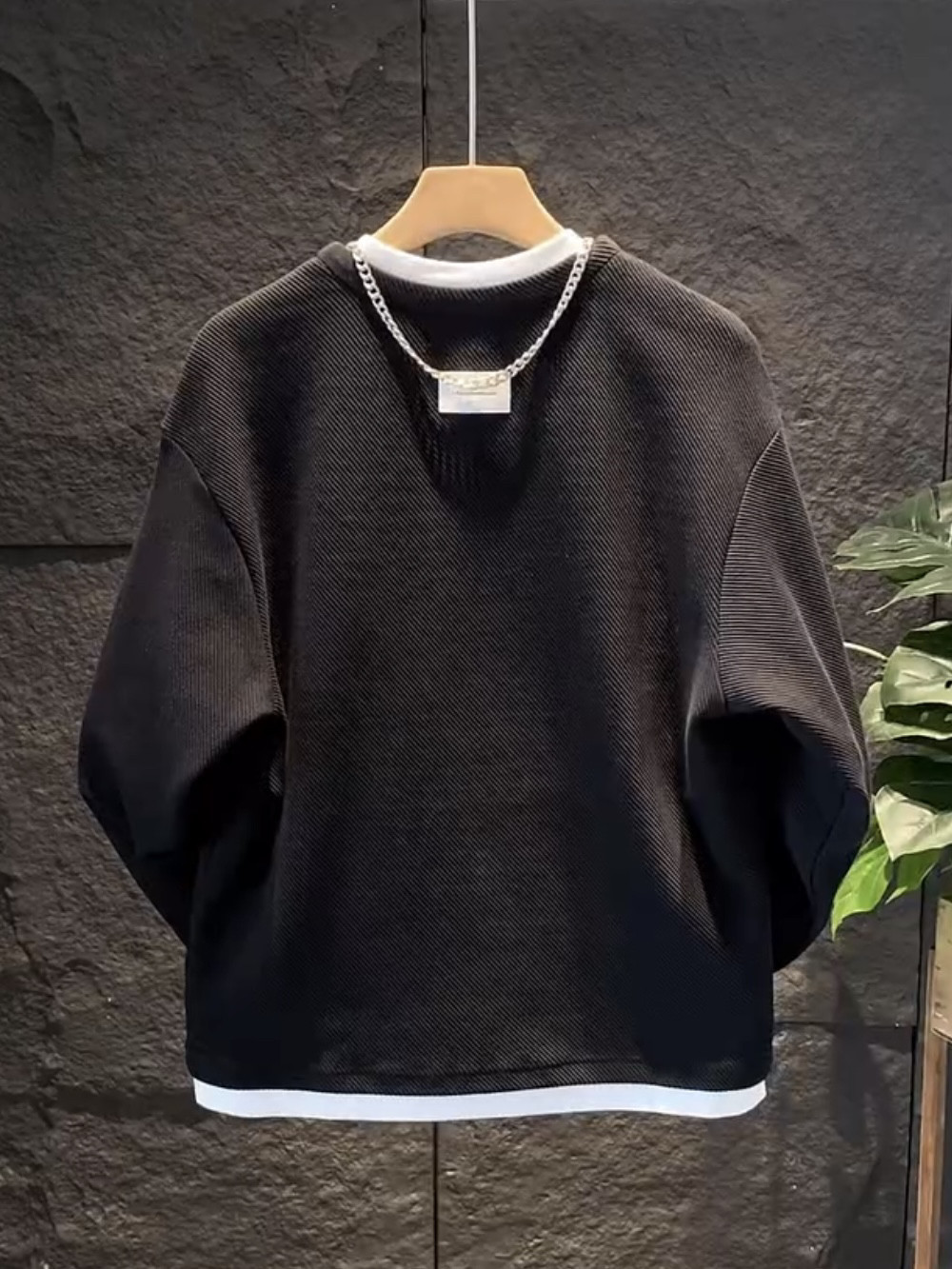 假兩件拼接慵懶風V圓領衛衣男潮流高級寬鬆百搭情侶長袖T恤打底衫
