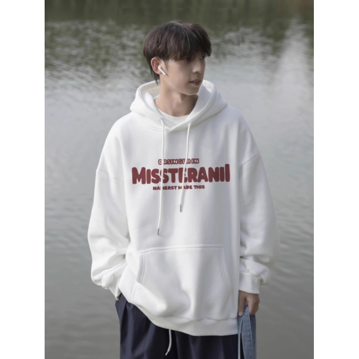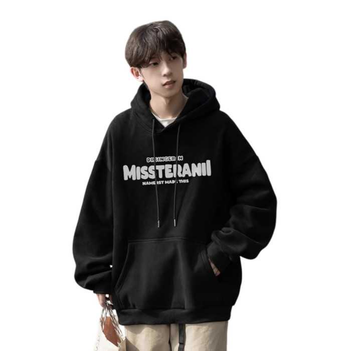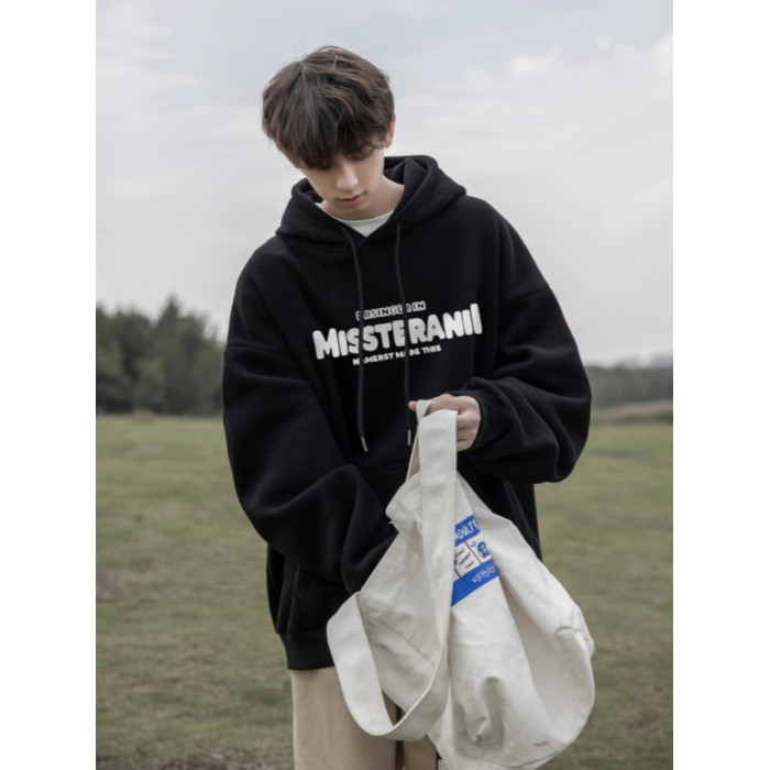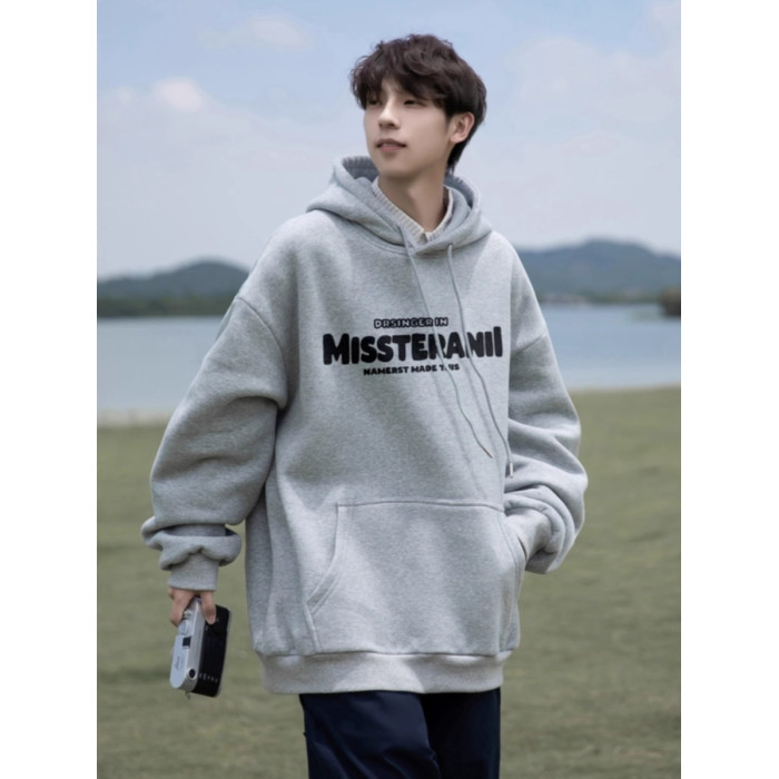 純棉重磅美式寬鬆百搭連帽衫加絨衛衣男秋冬潮牌青少年日系外套