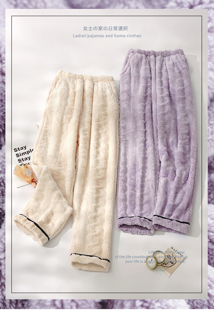 女士睡褲秋冬季加絨加厚珊瑚絨長褲暖暖褲法蘭絨居家褲女款家居褲