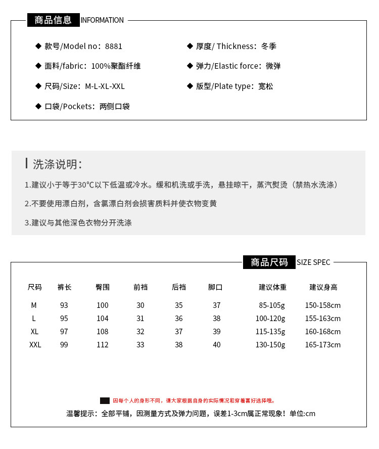 款式及尺寸: