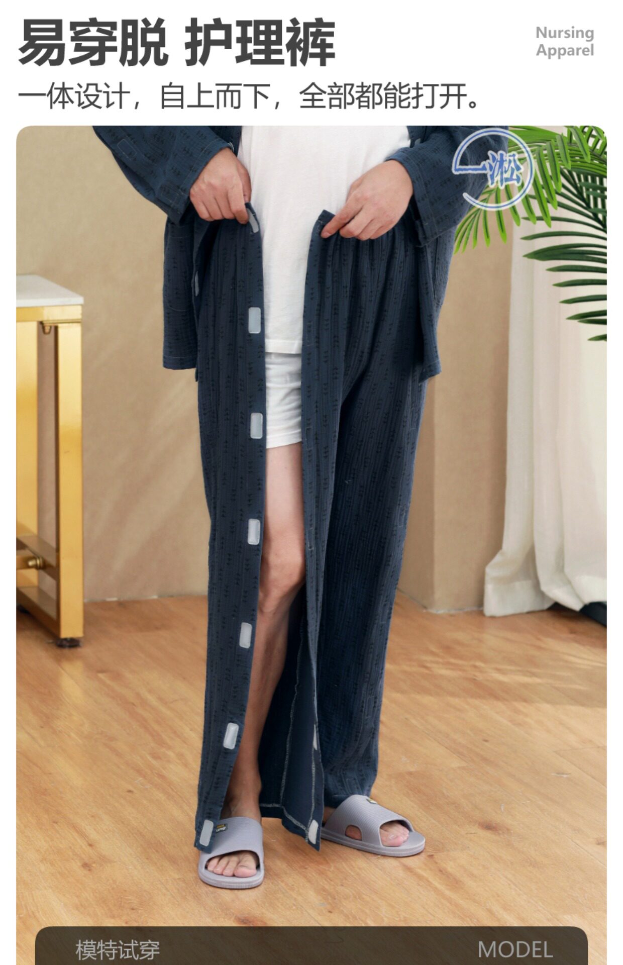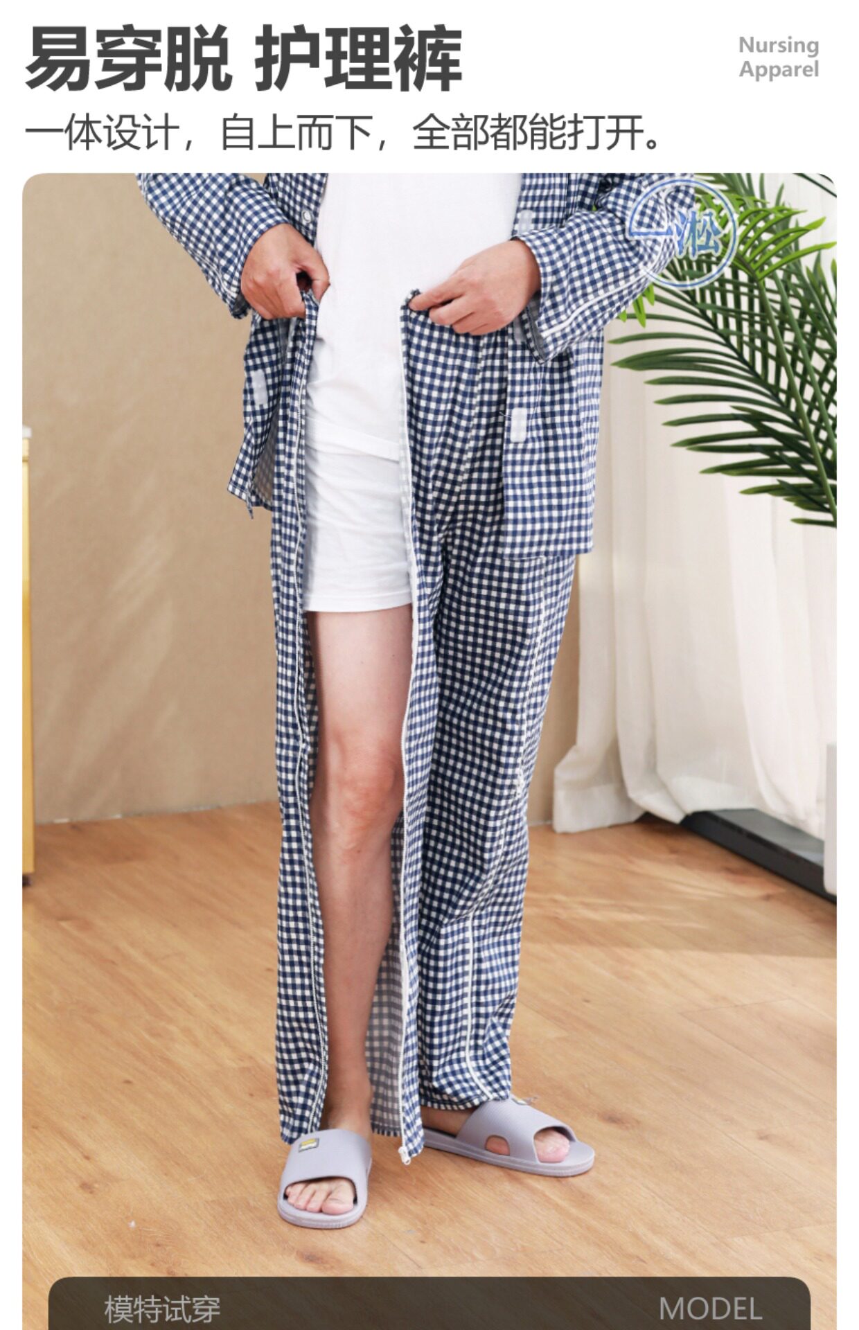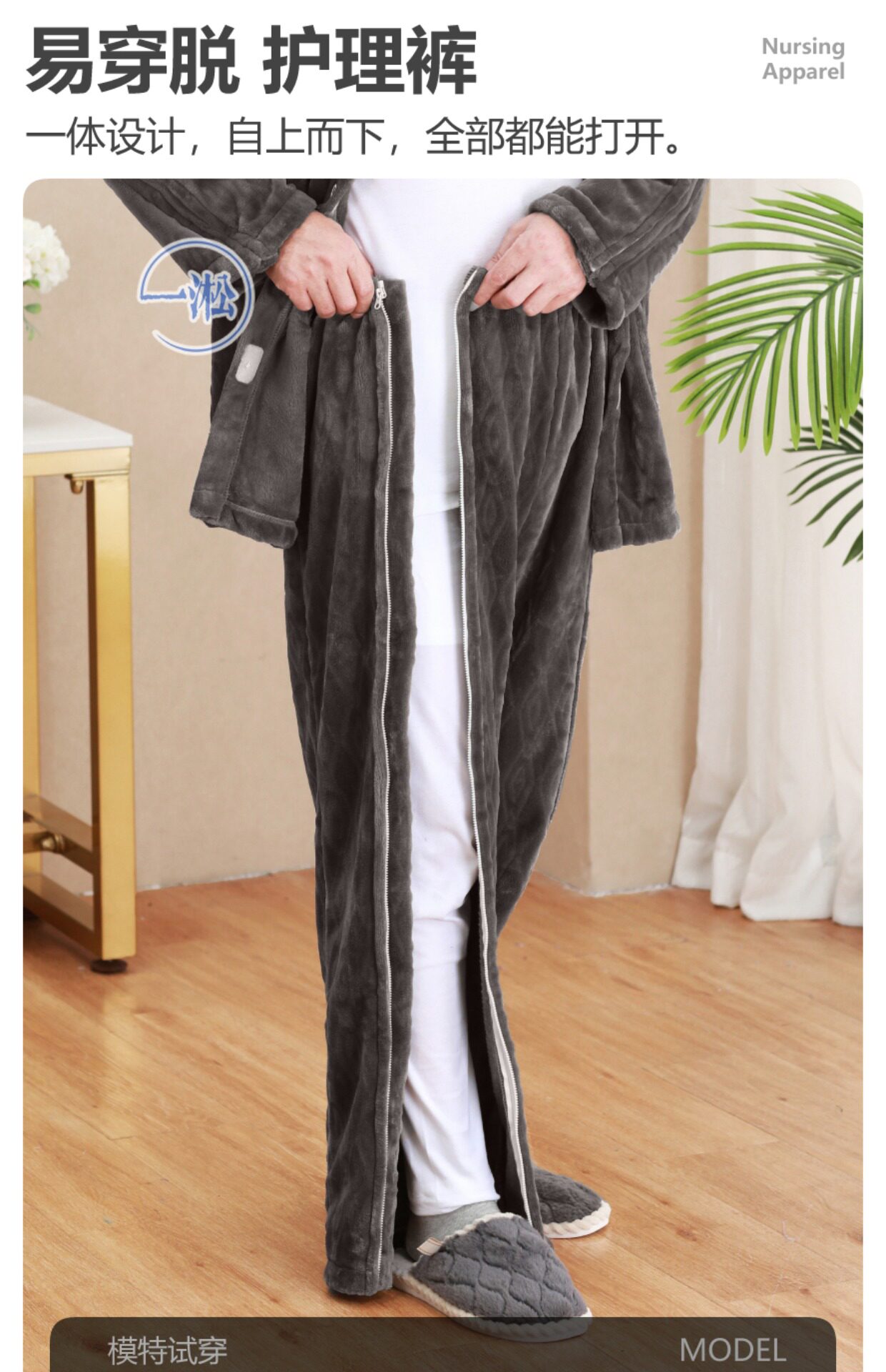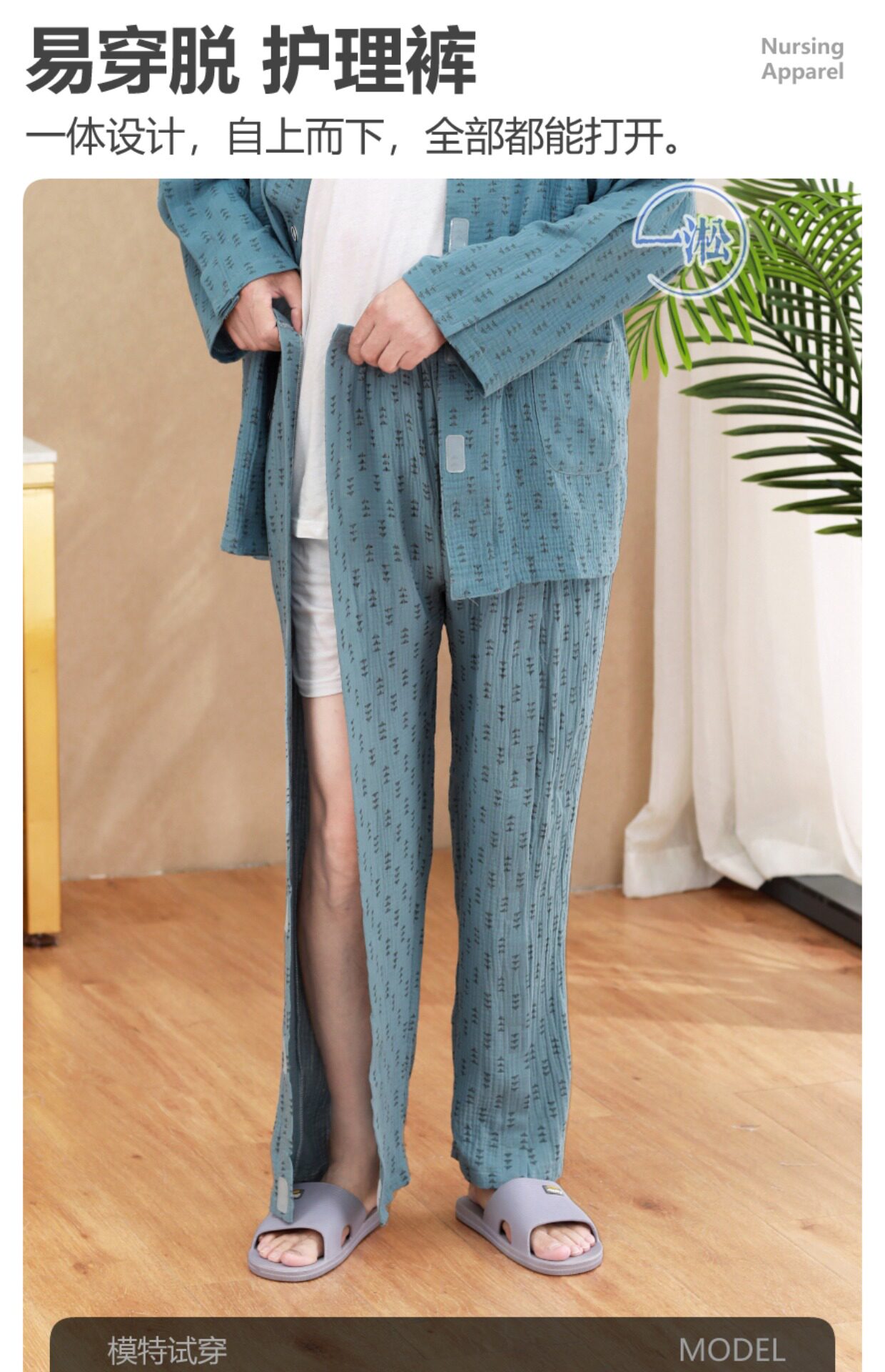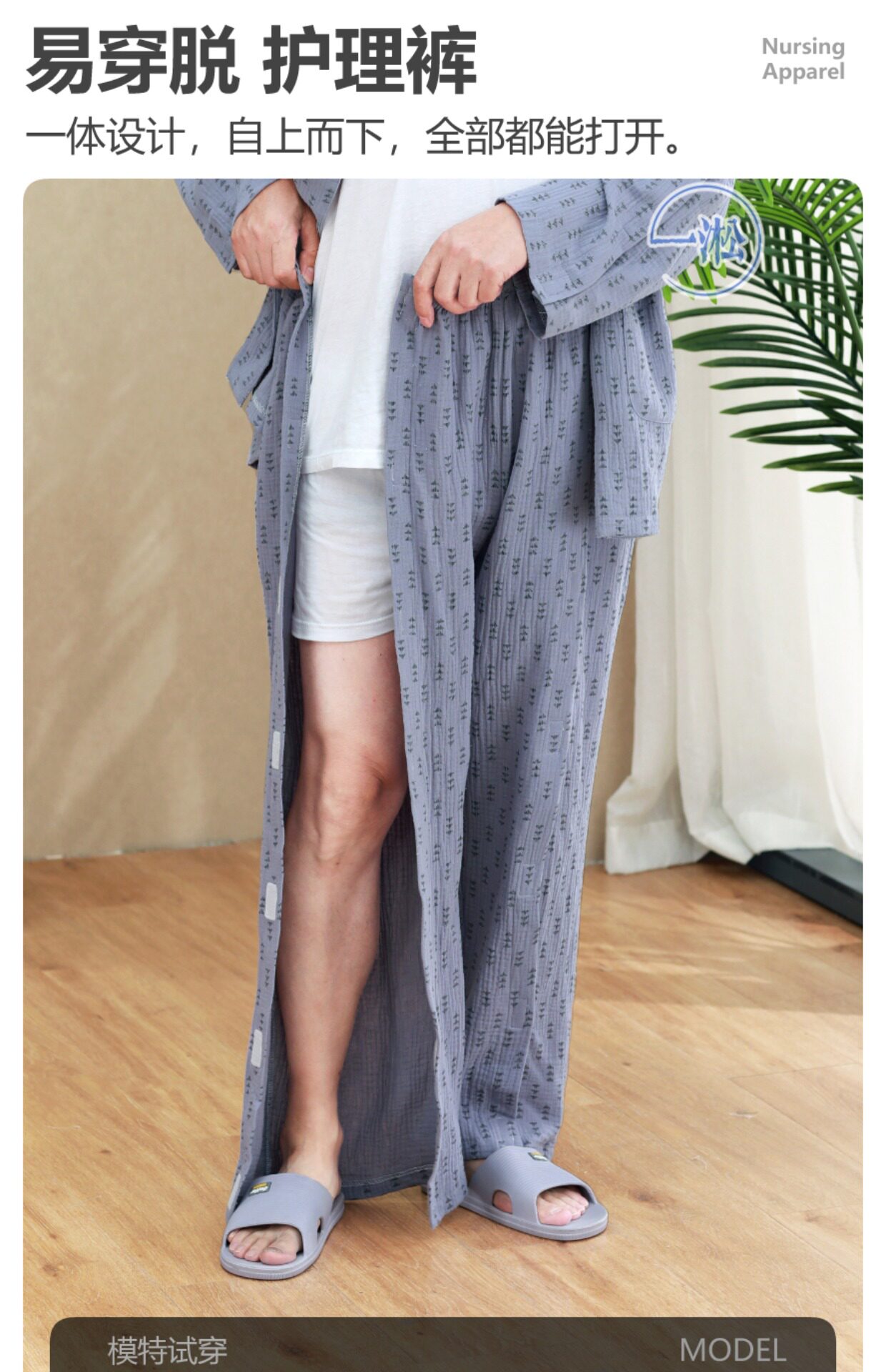 骨折病人受傷打石膏易穿脫護理褲偏癱臥床老人開邊褲一片式病號褲