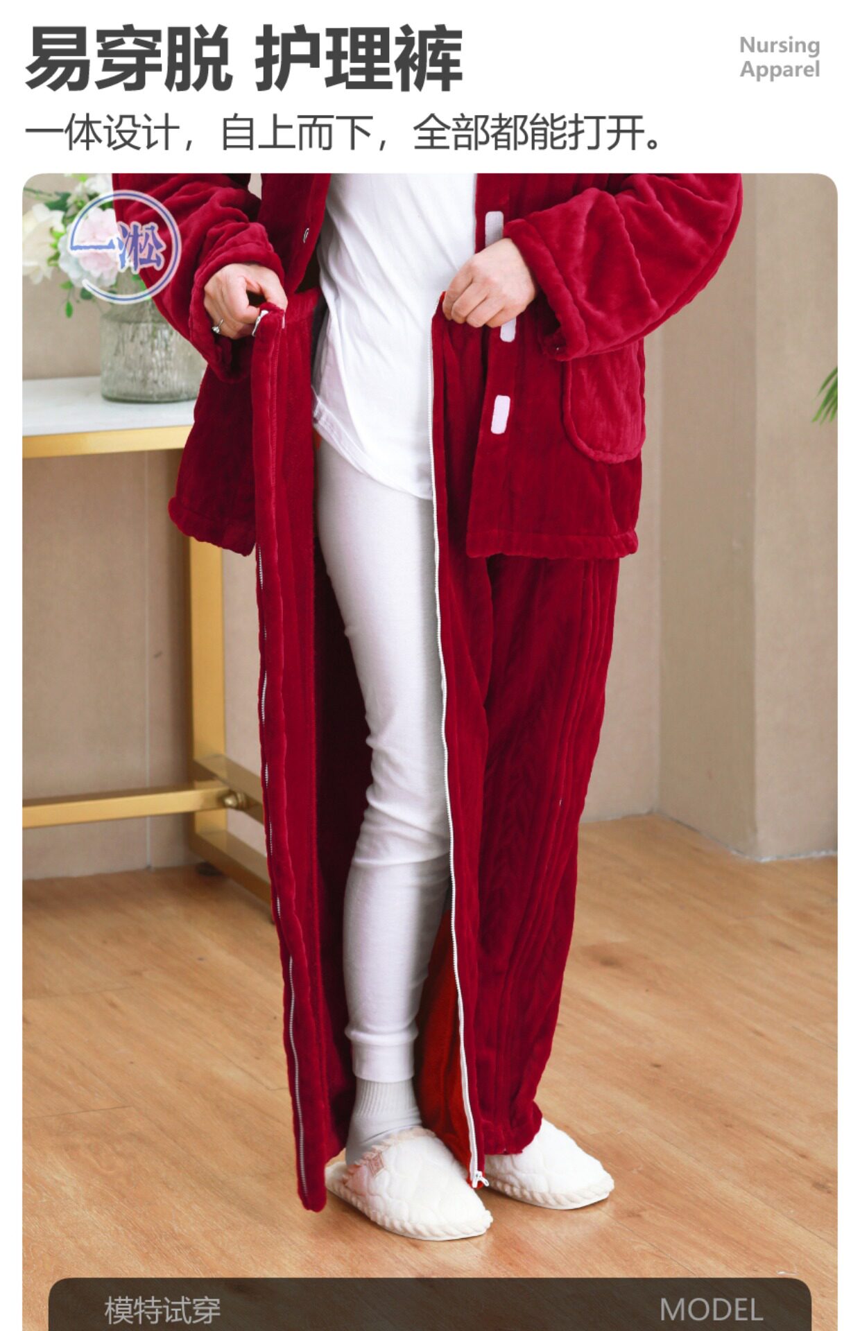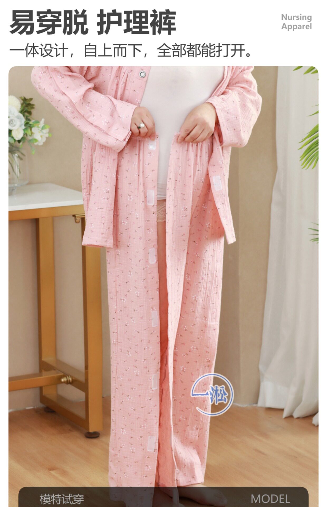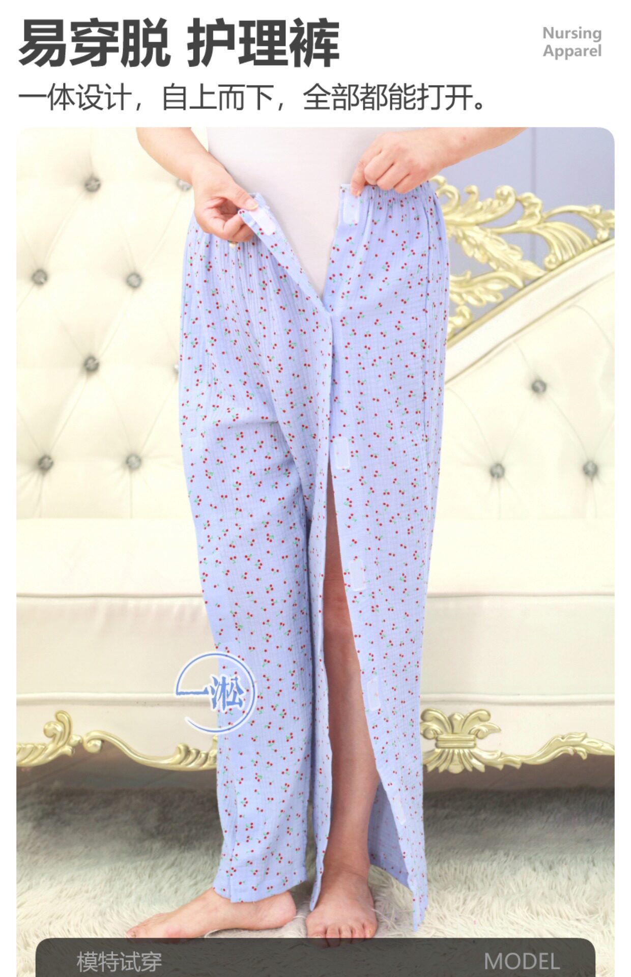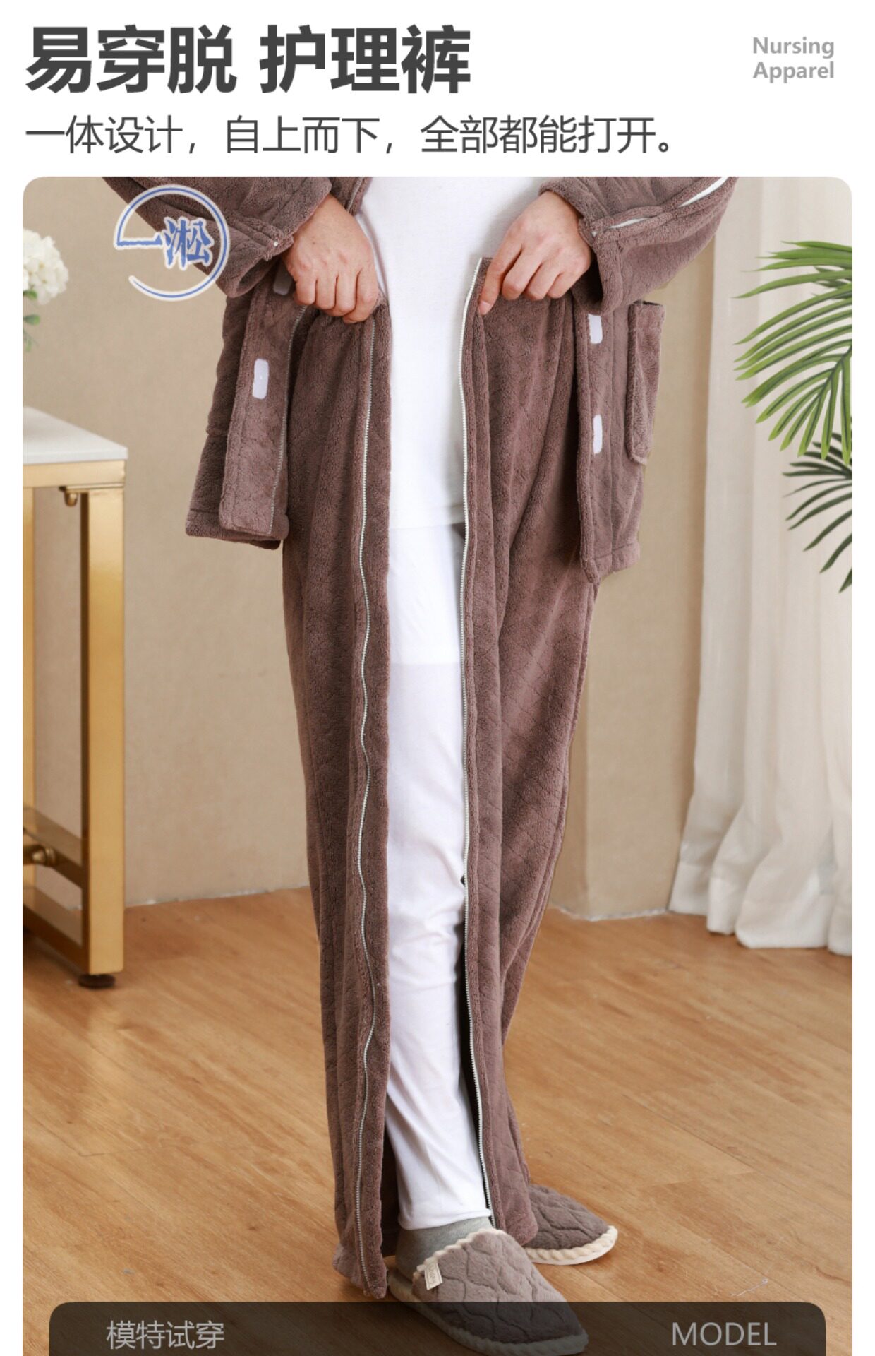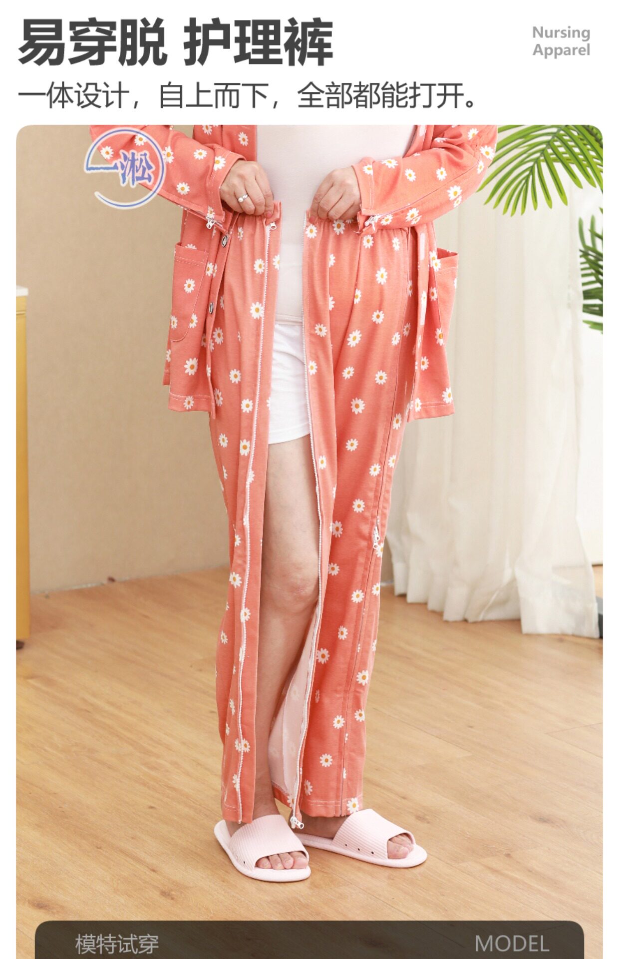 骨折病人受傷打石膏易穿脫護理褲偏癱臥床老人開邊褲一片式病號褲