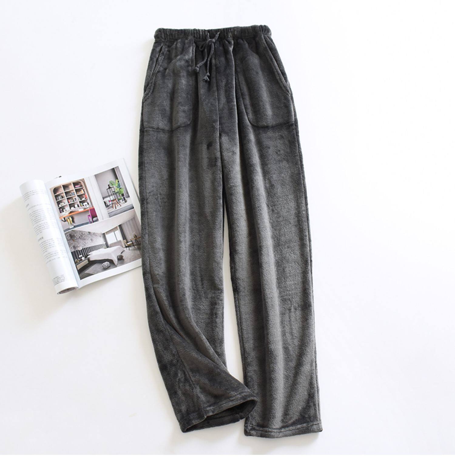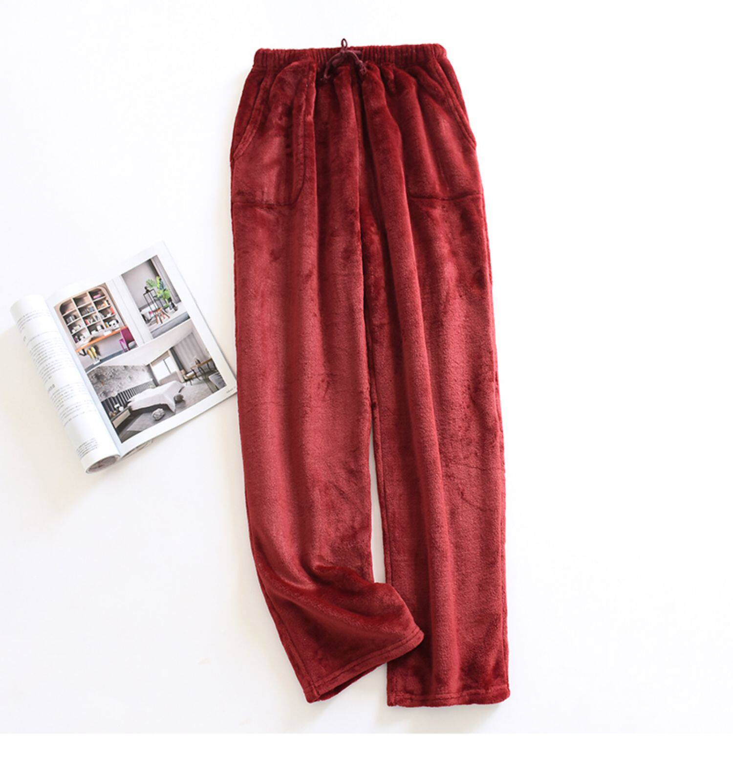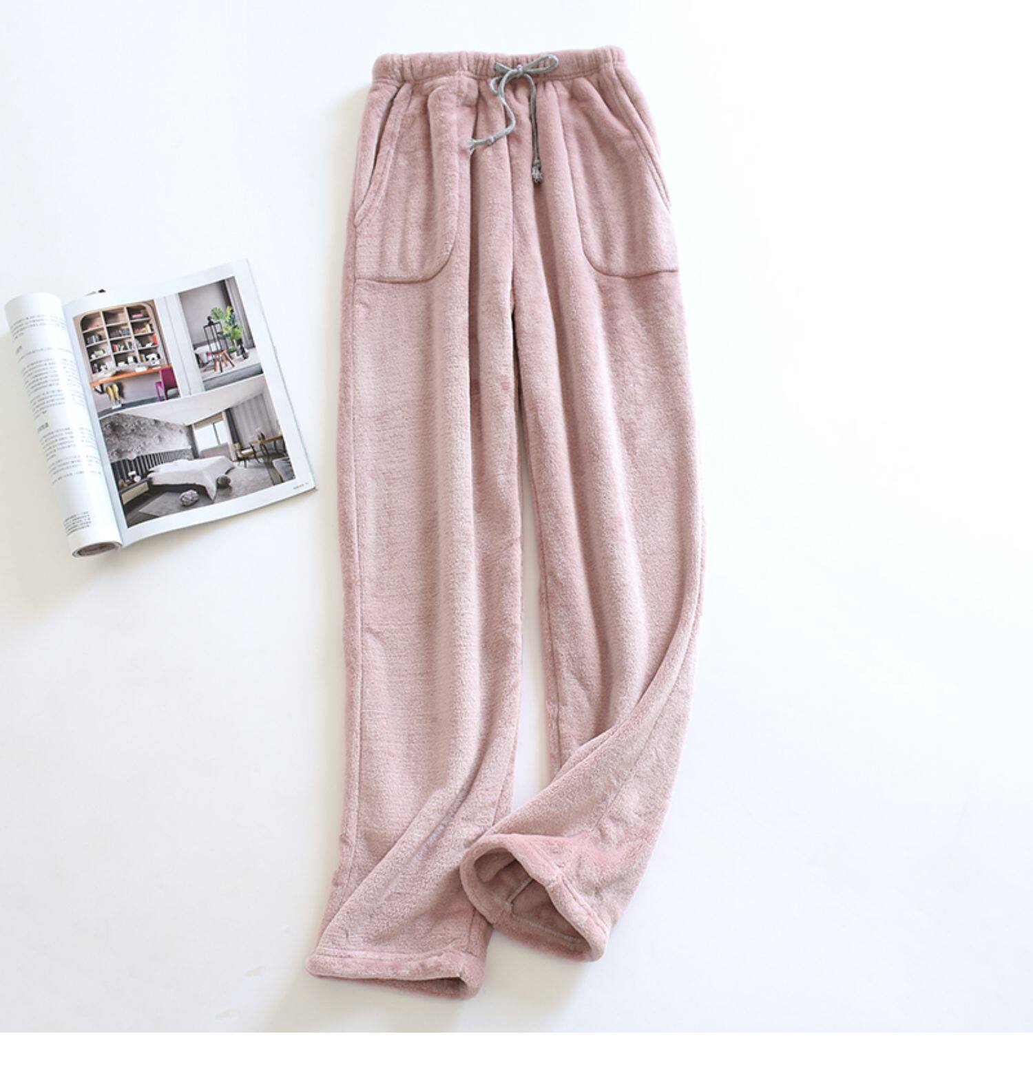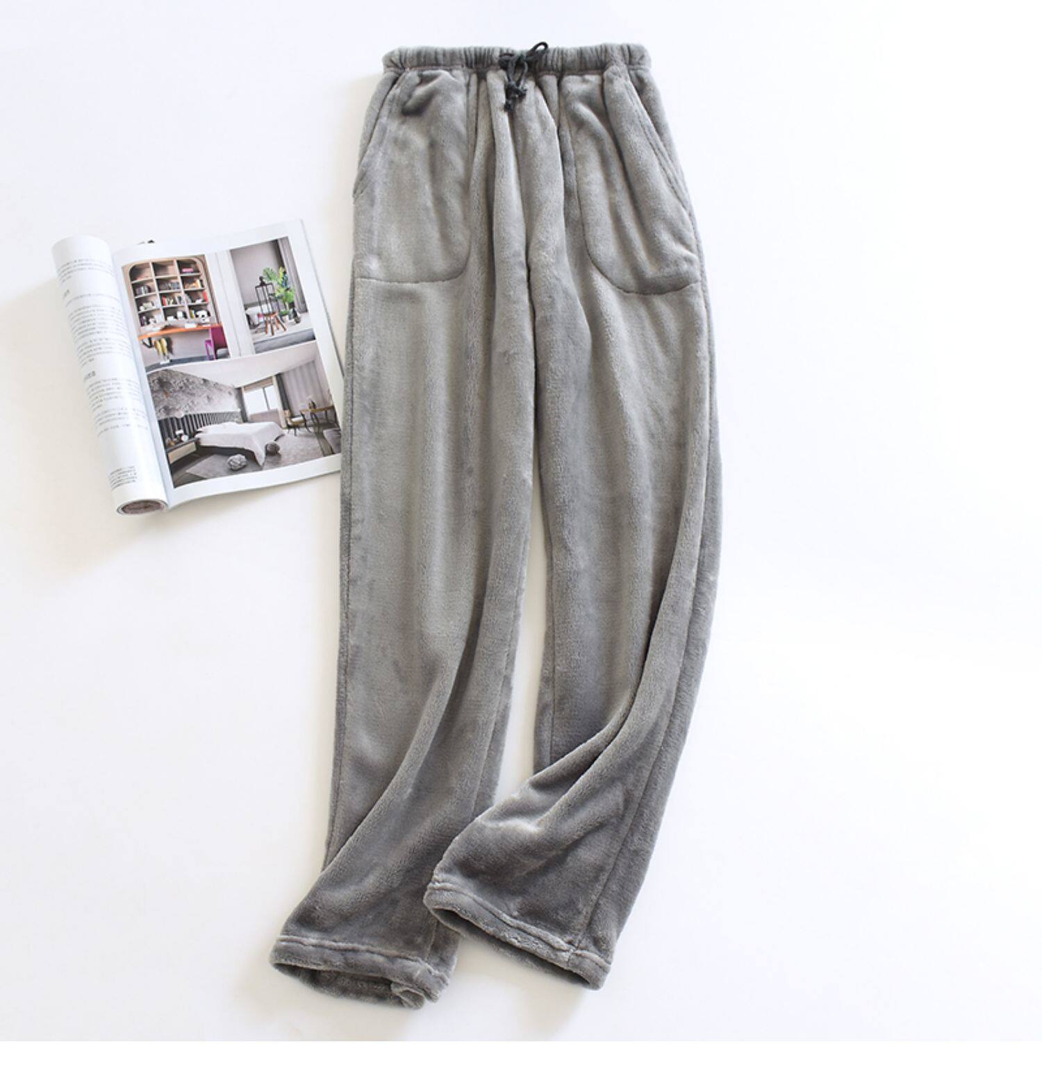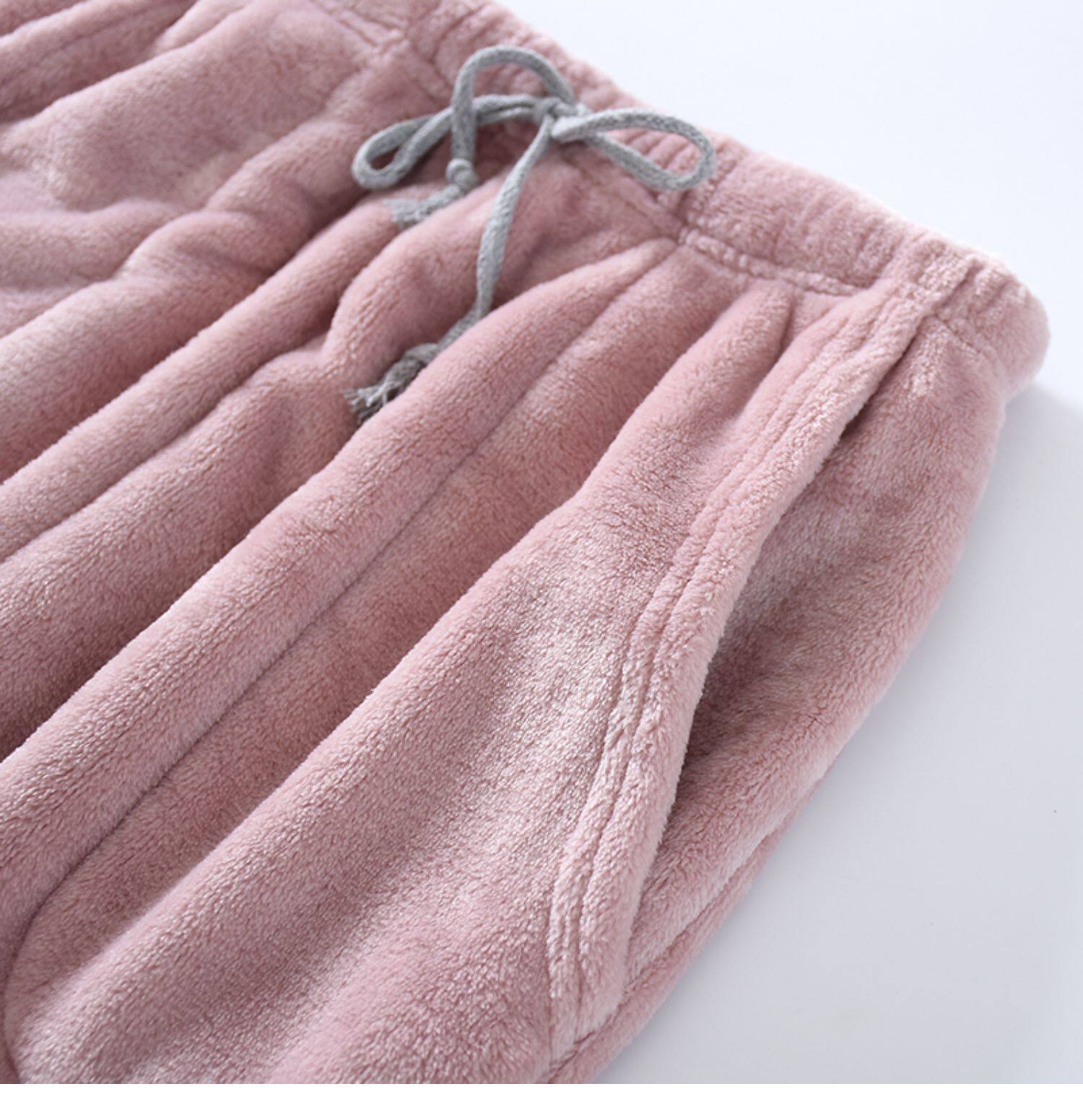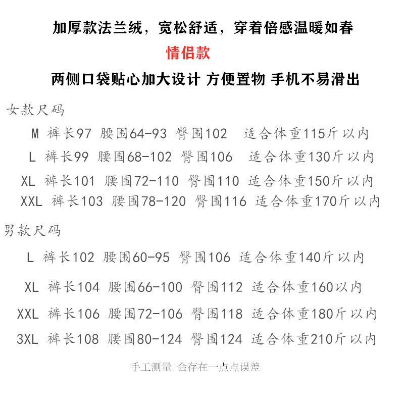 冬季法蘭絨男女士睡褲加厚保暖珊瑚絨寬鬆大碼情侶直筒家居長褲