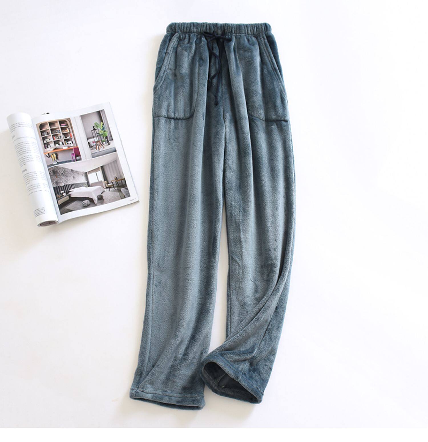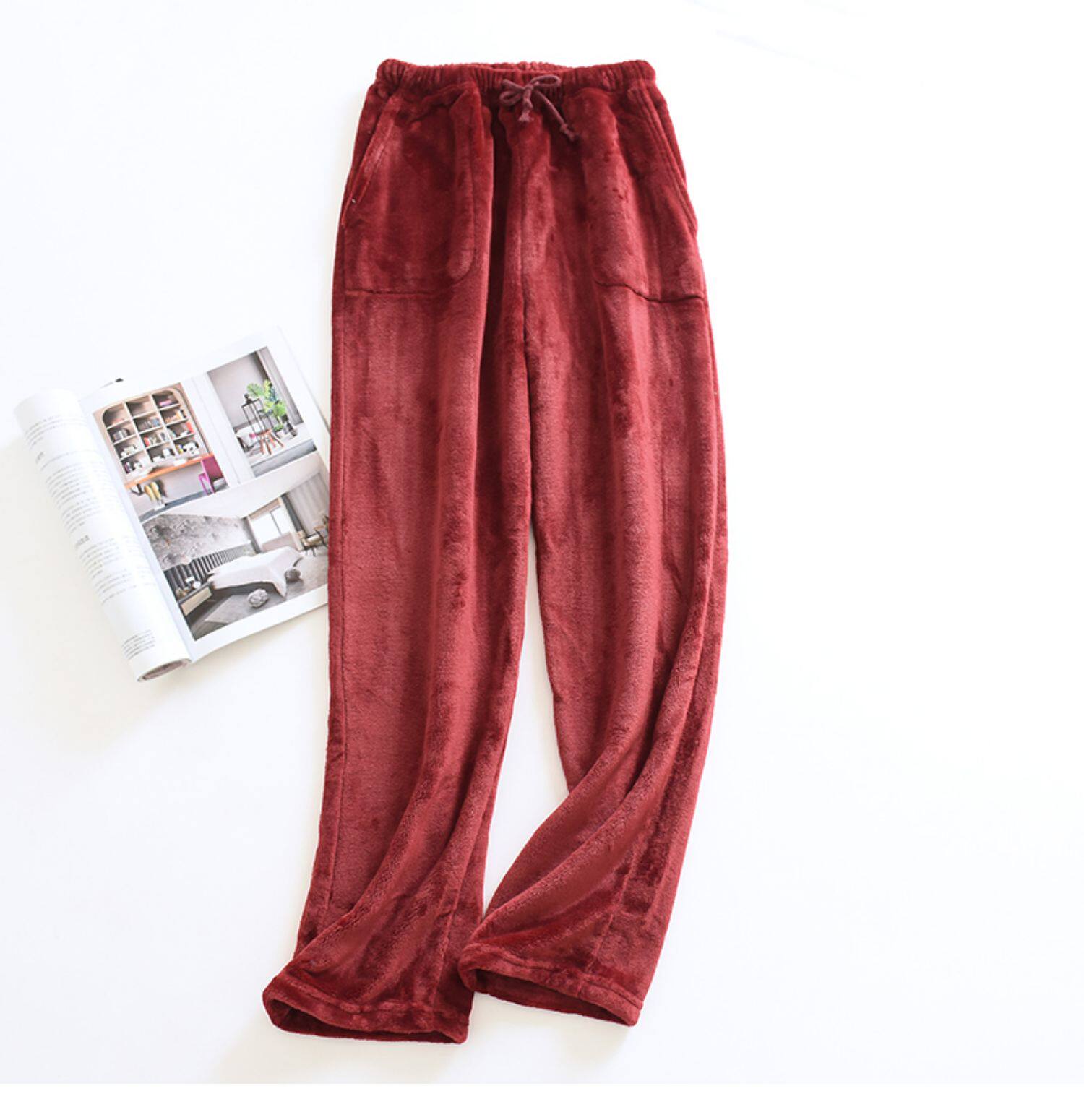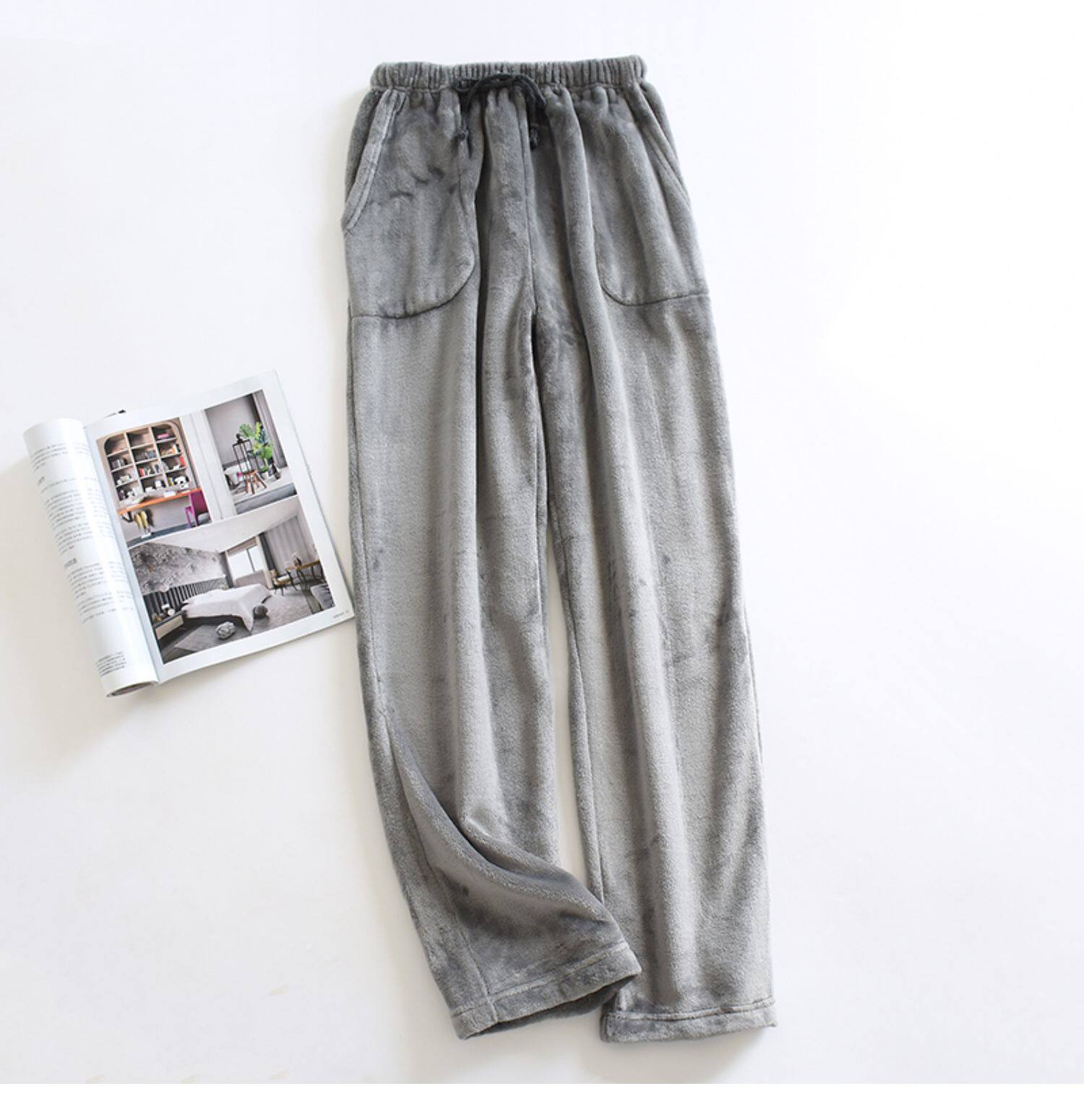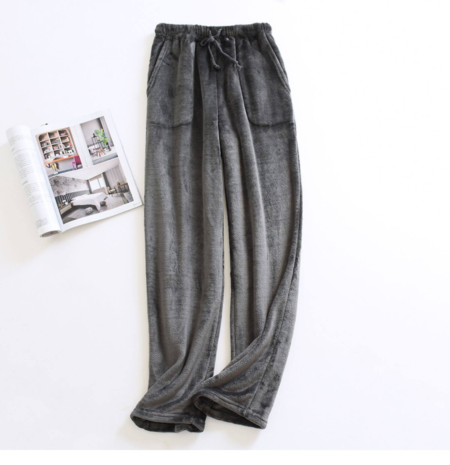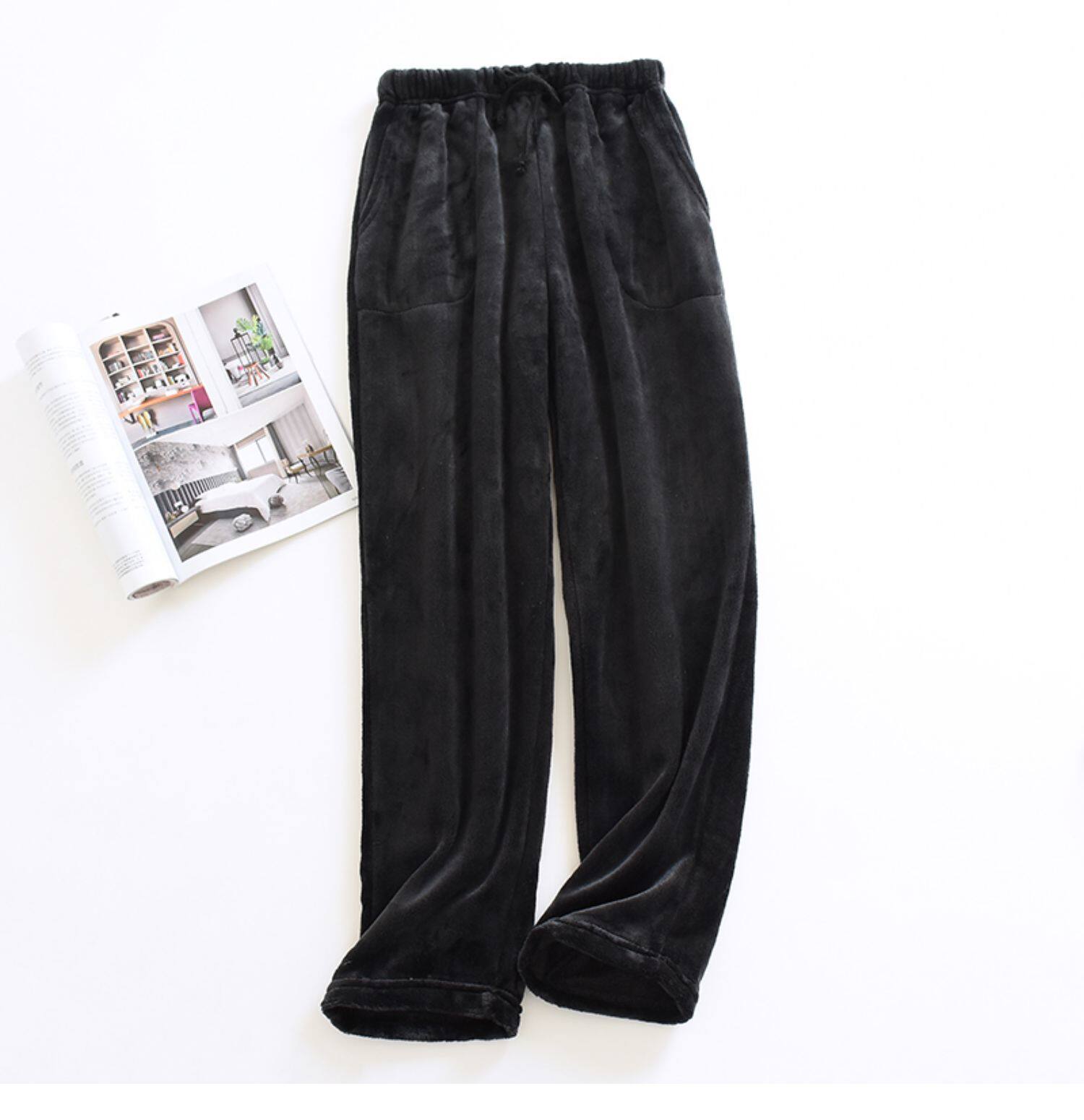 冬季法蘭絨男女士睡褲加厚保暖珊瑚絨寬鬆大碼情侶直筒家居長褲