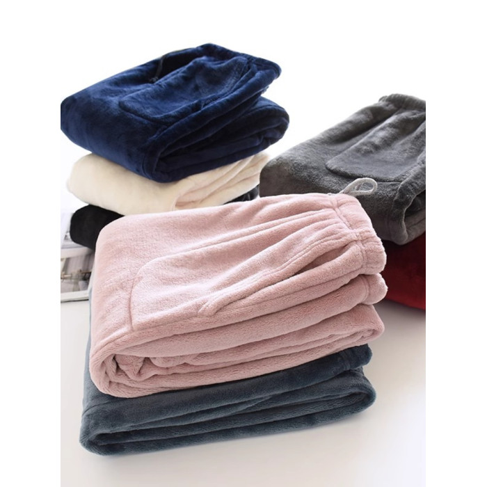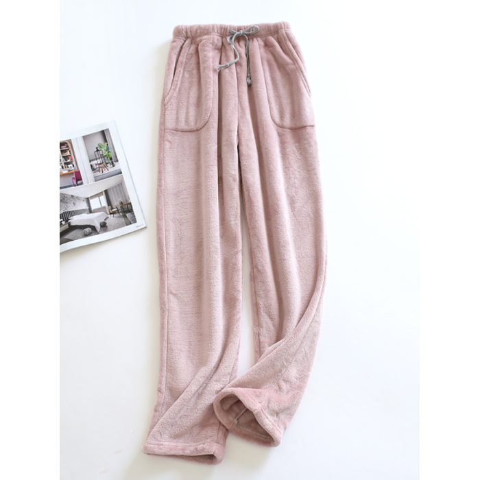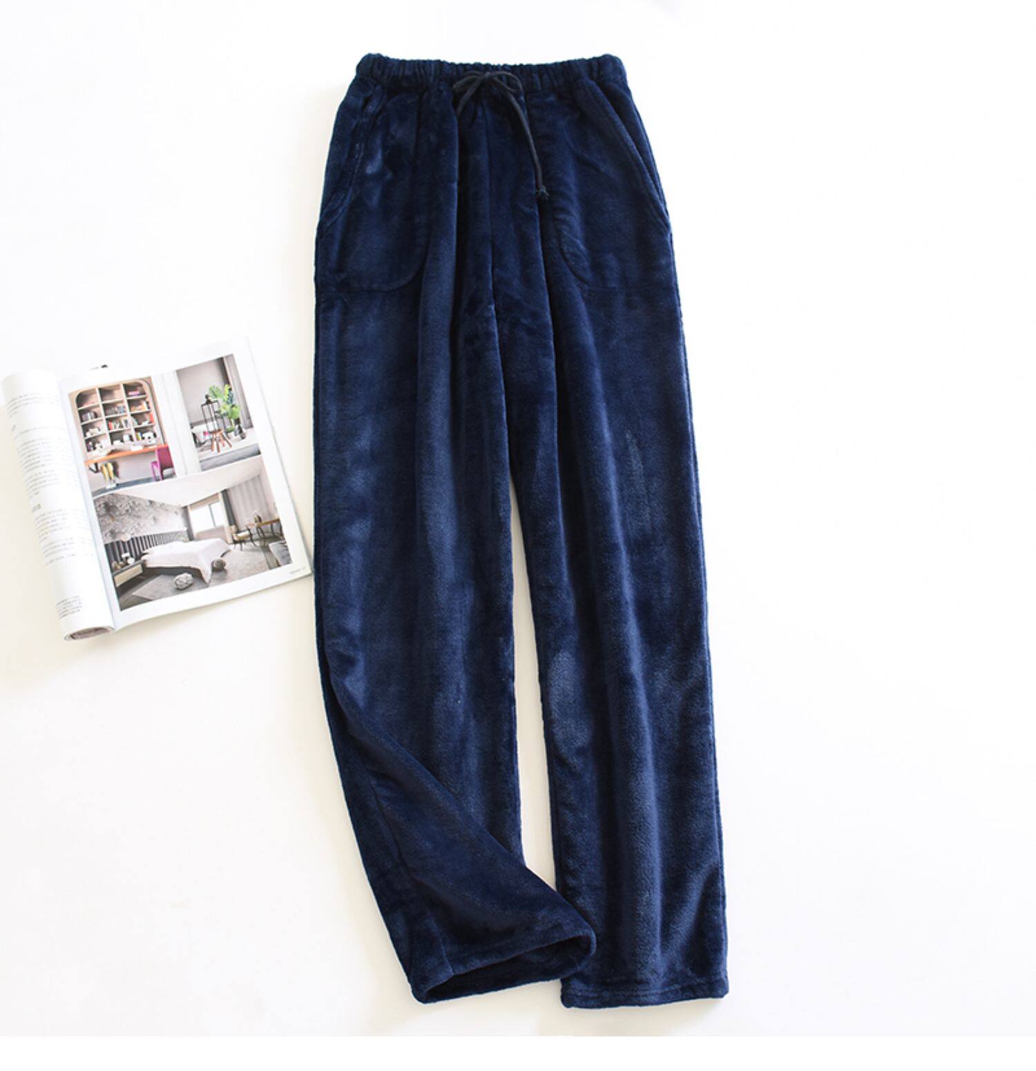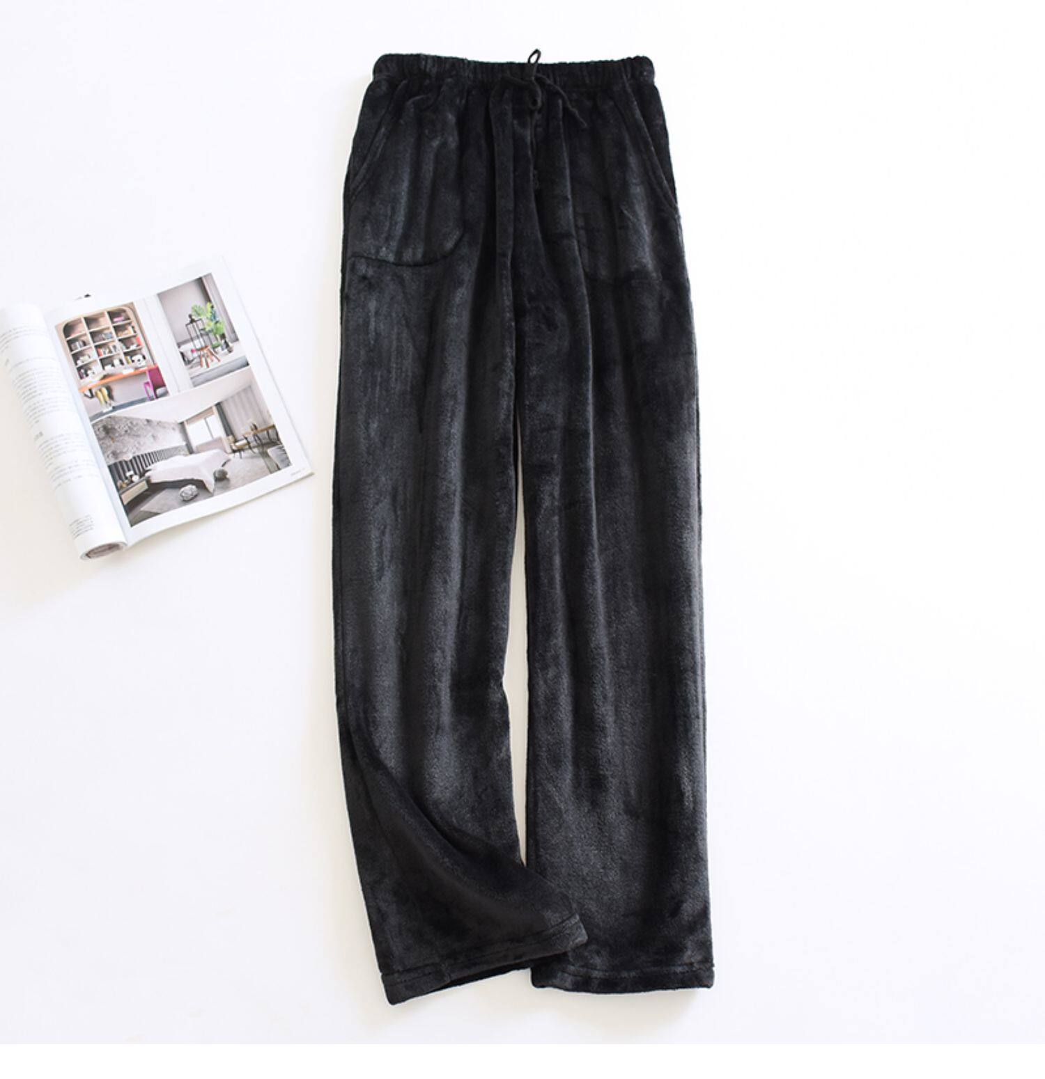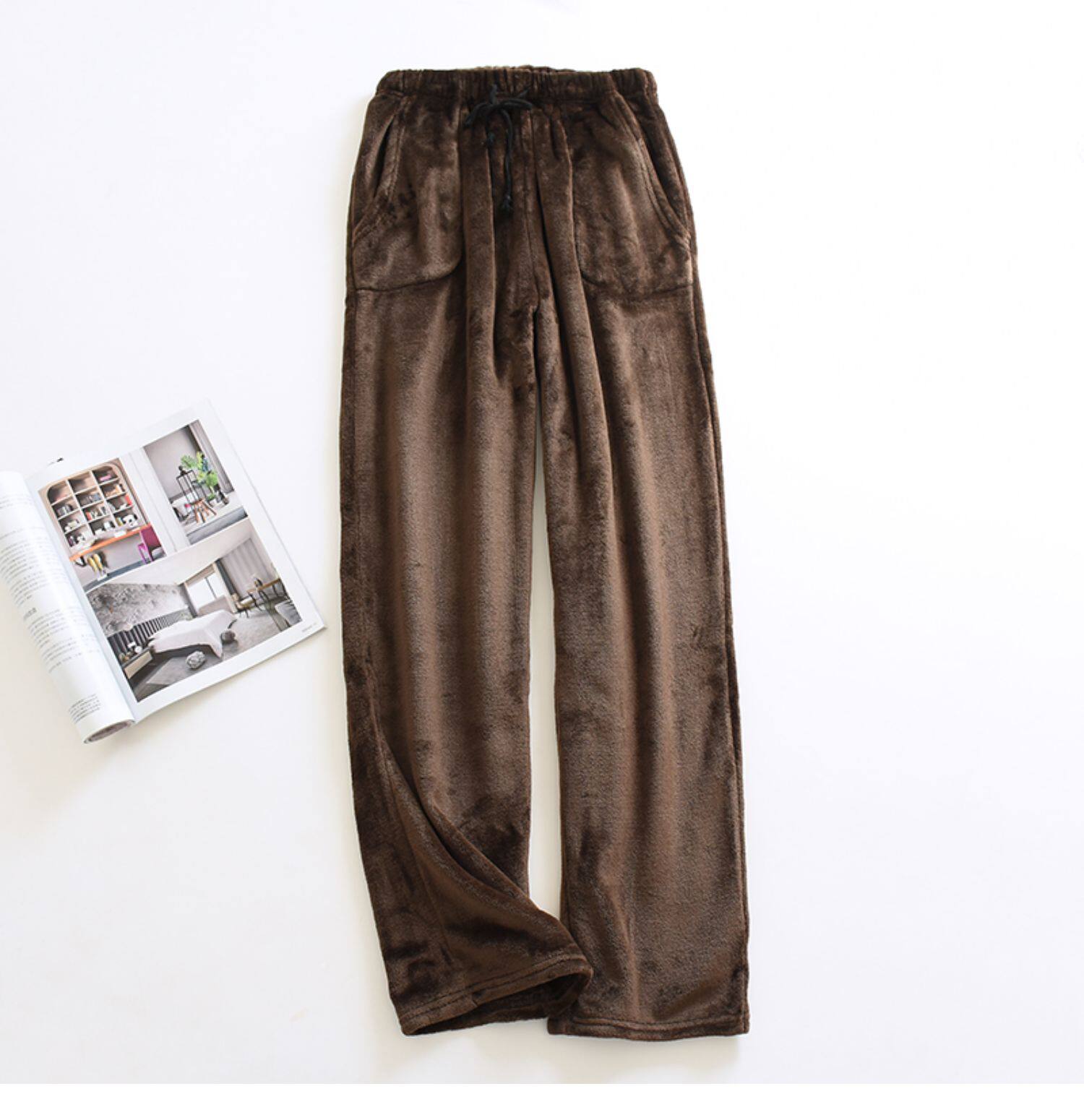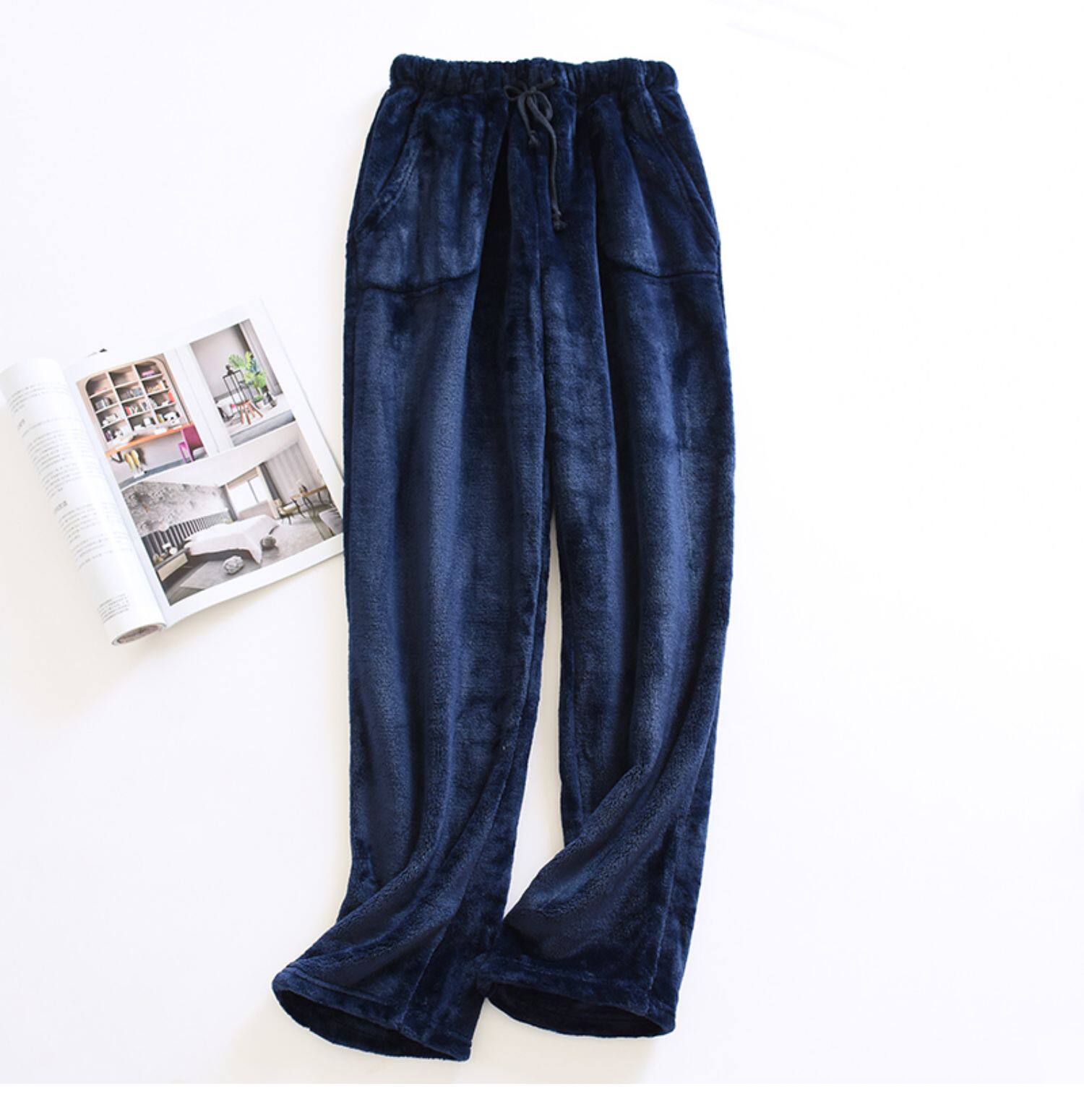 冬季法蘭絨男女士睡褲加厚保暖珊瑚絨寬鬆大碼情侶直筒家居長褲