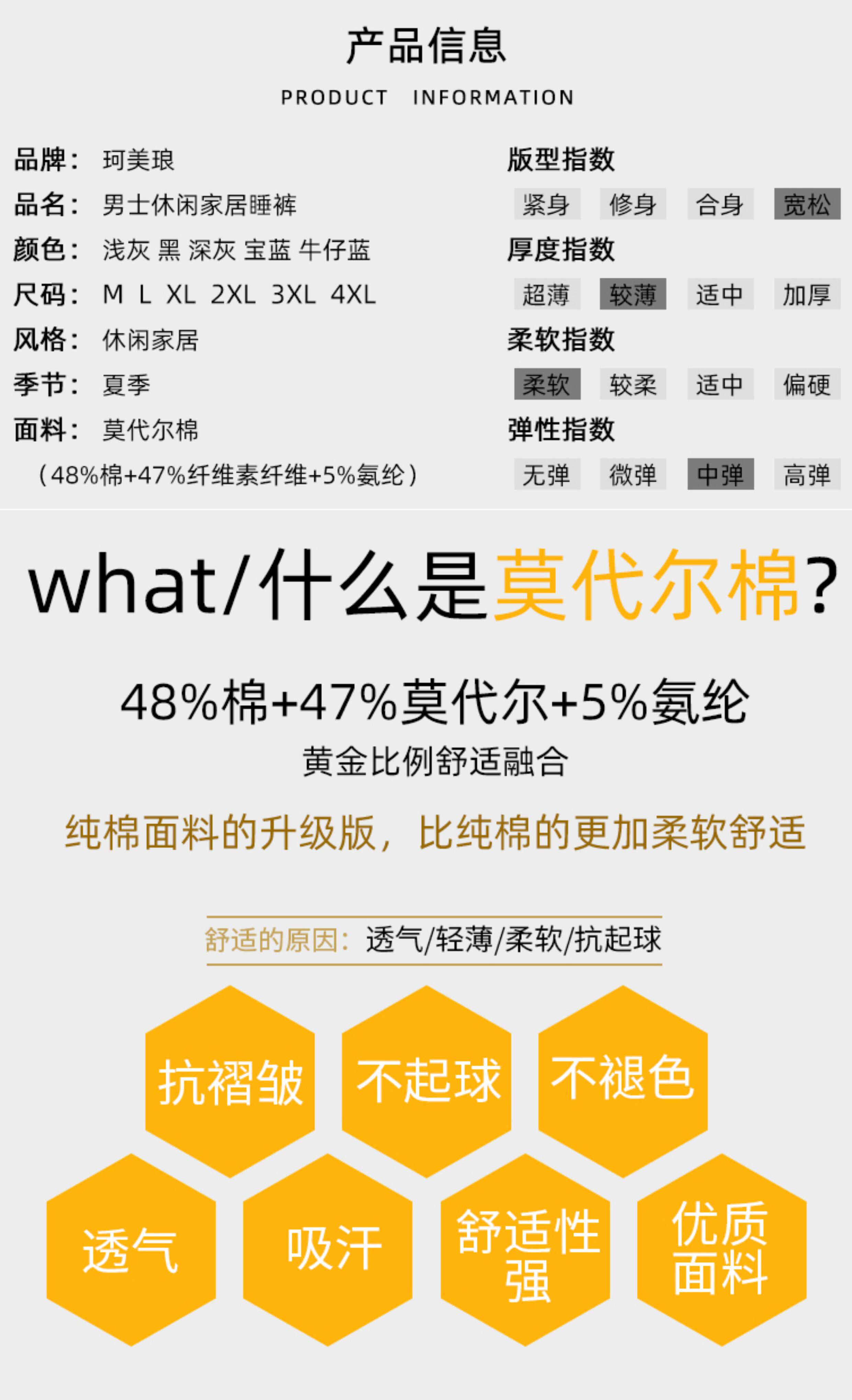 睡褲男士夏寬鬆大碼五分家居薄款休閒居家短純棉莫代爾混紡褲睡褲