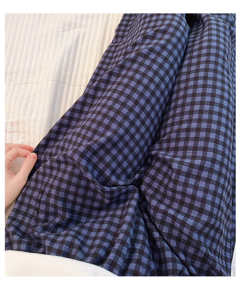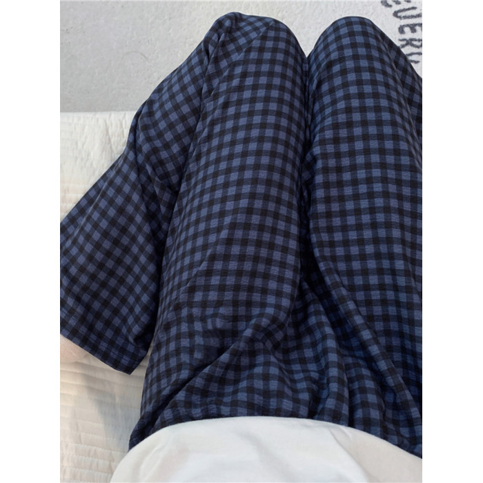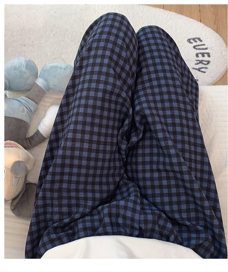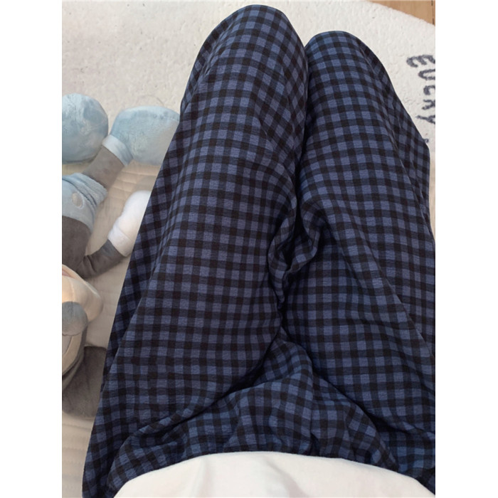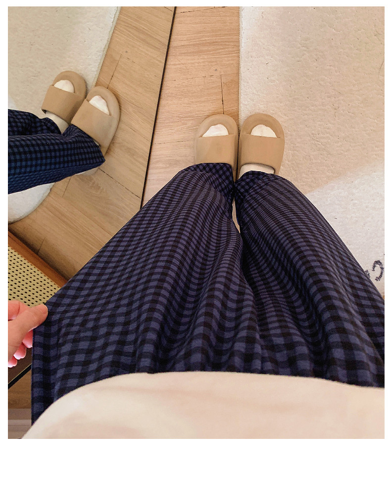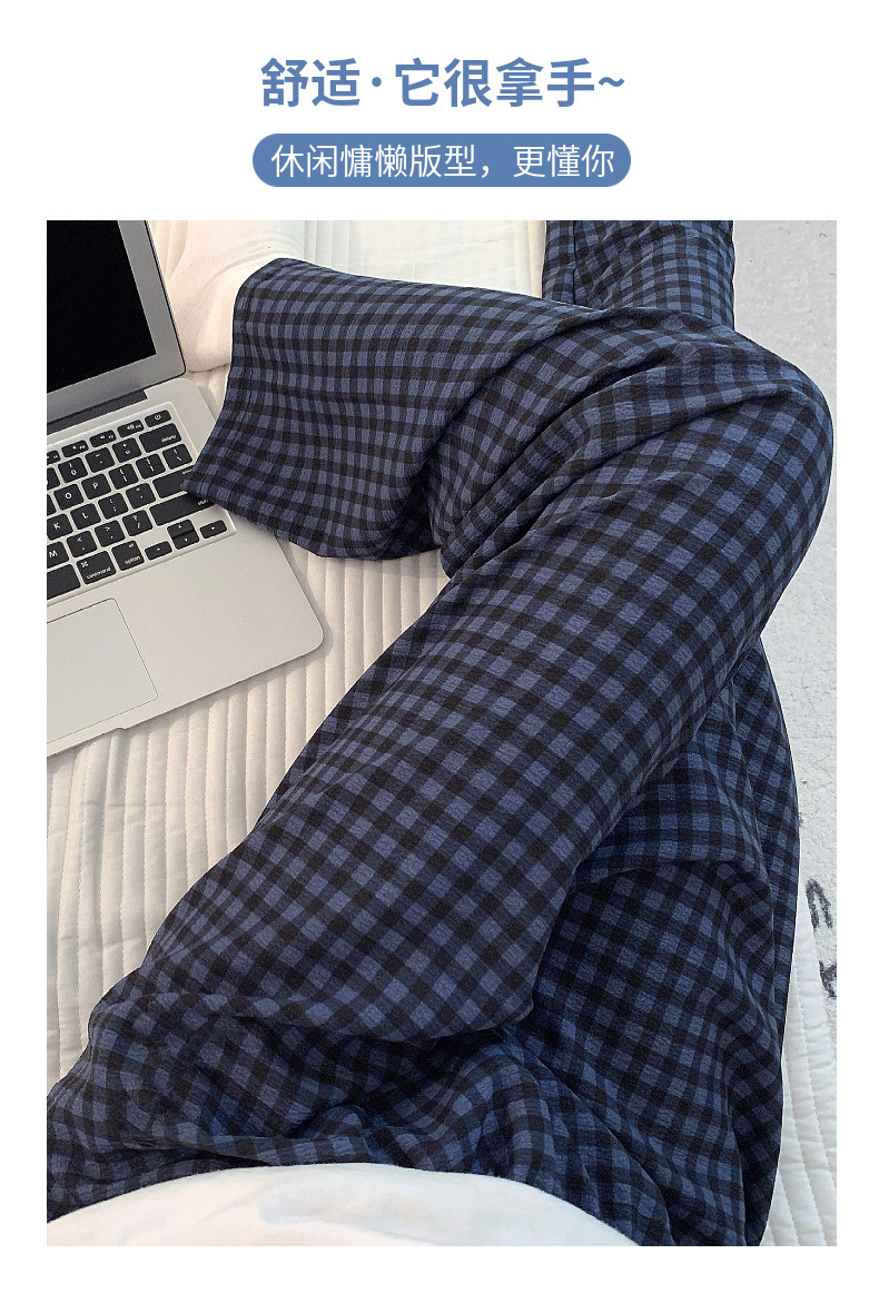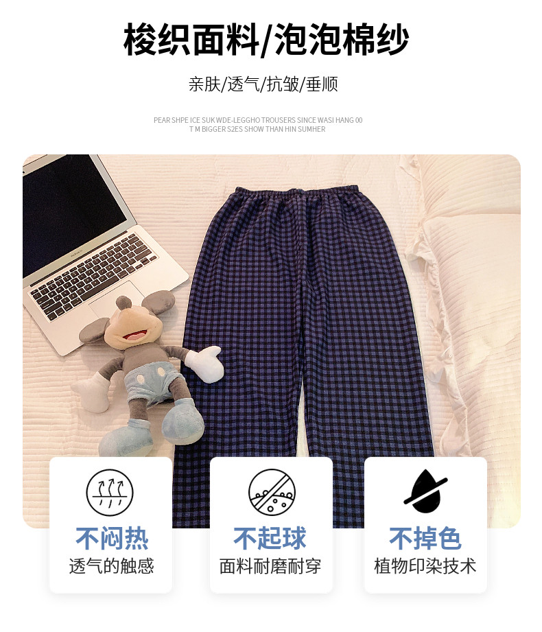 網紅風可外穿遛彎神褲女款泡泡棉紗睡褲春秋季長褲格子甜美家居褲