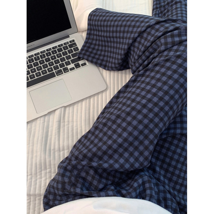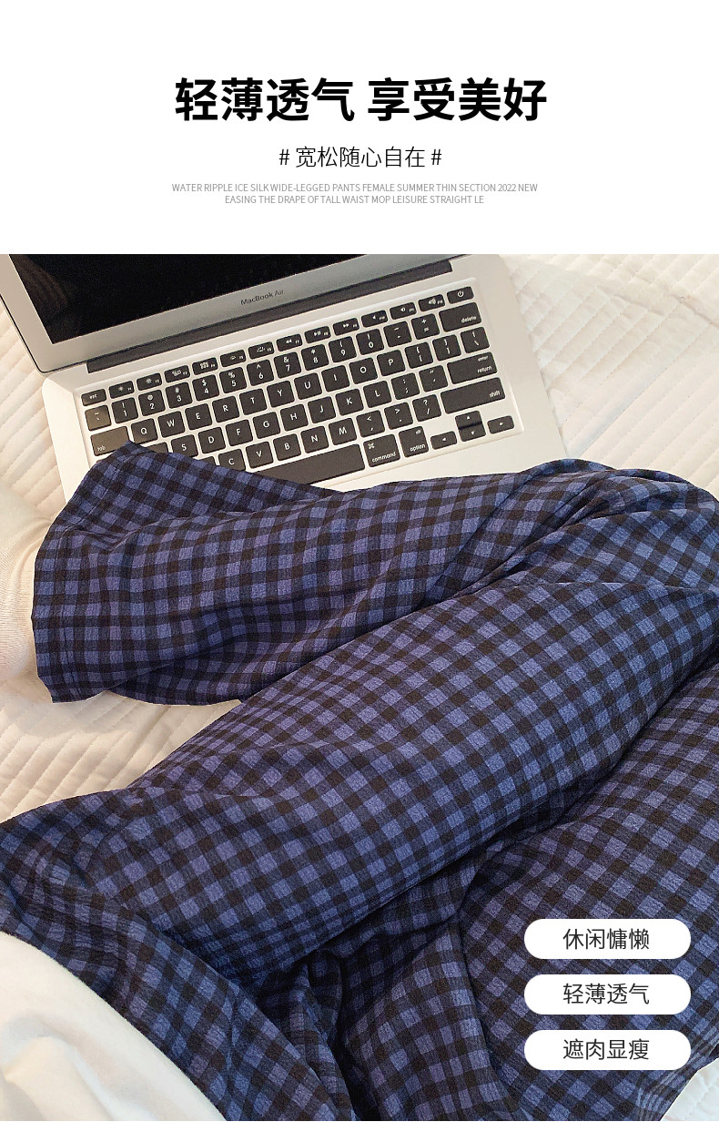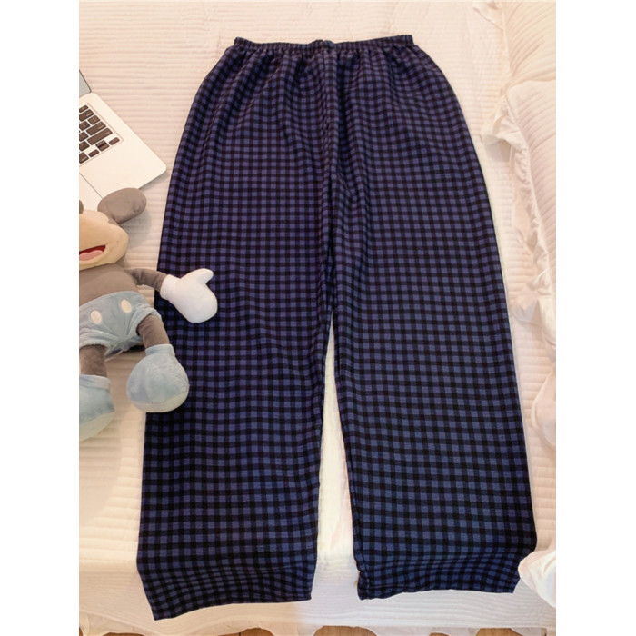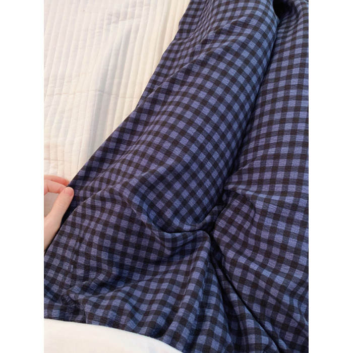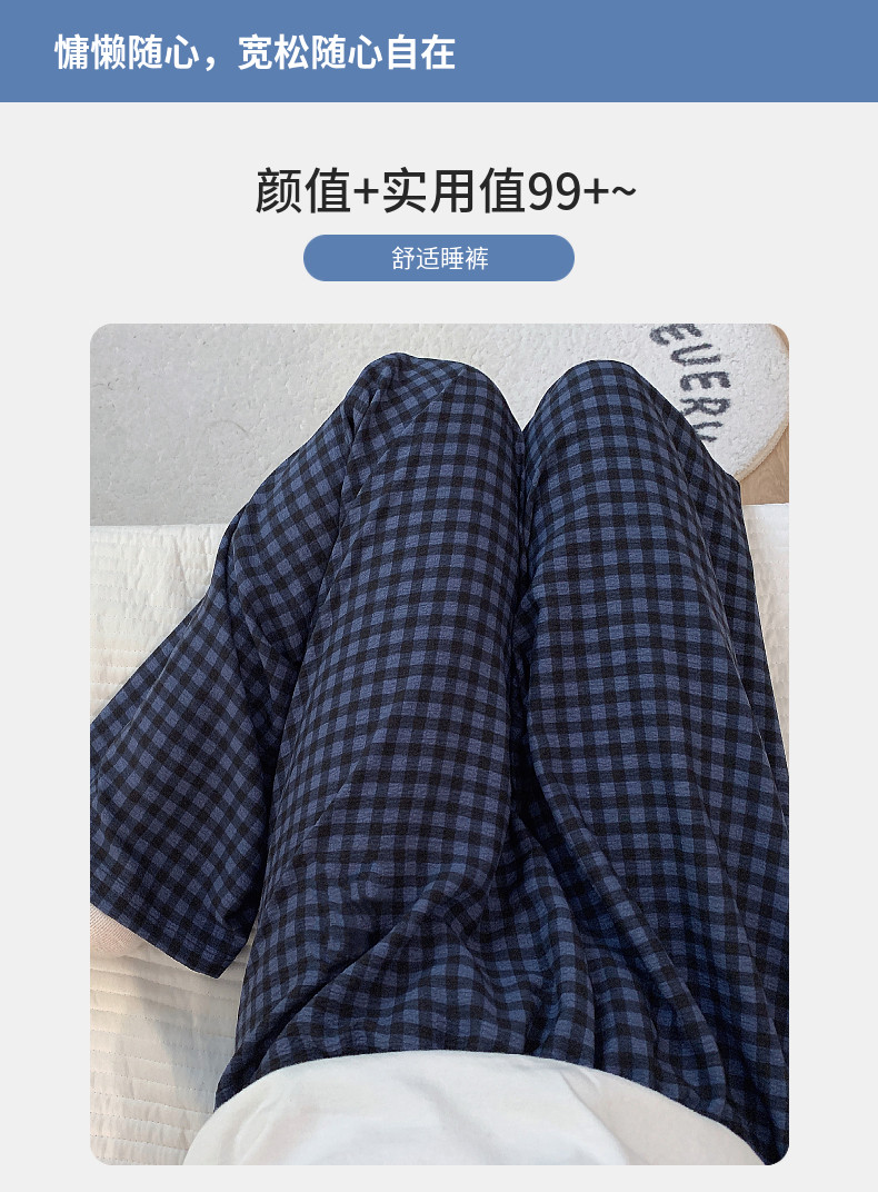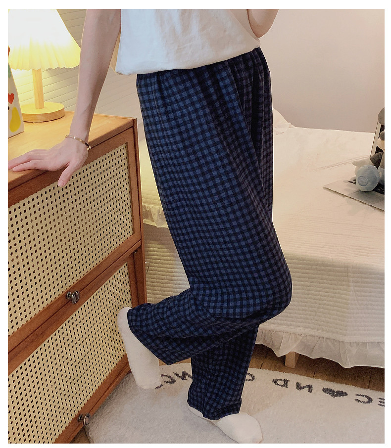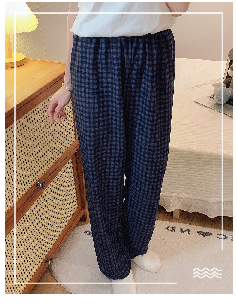 網紅風可外穿遛彎神褲女款泡泡棉紗睡褲春秋季長褲格子甜美家居褲