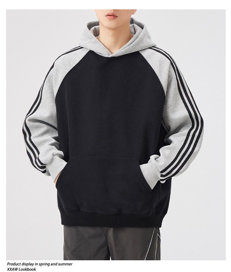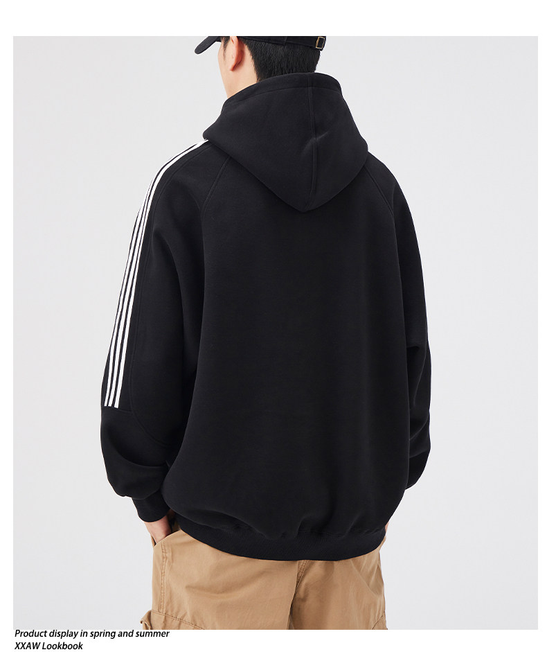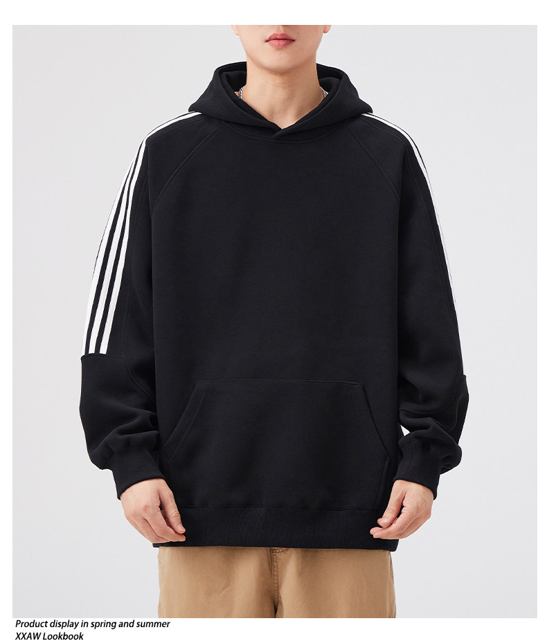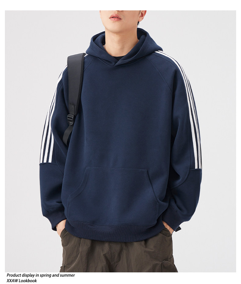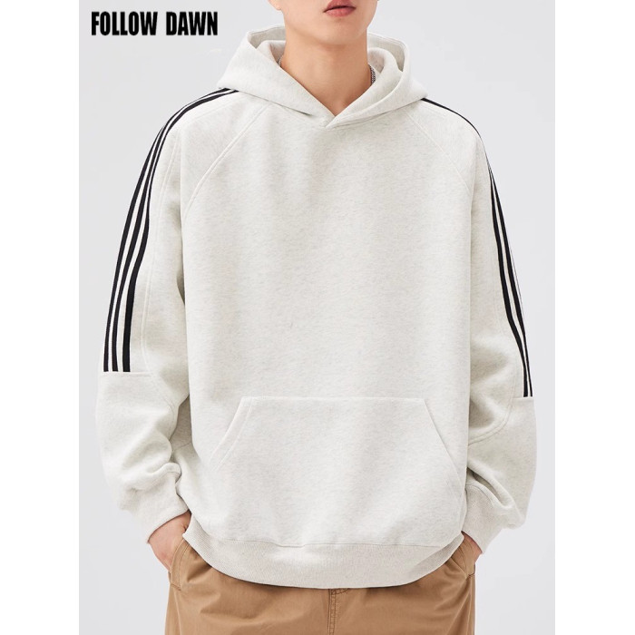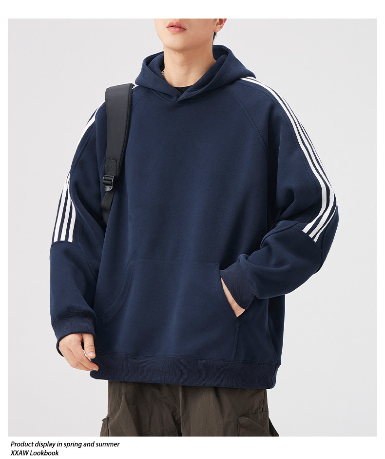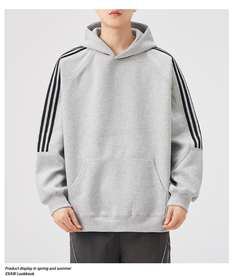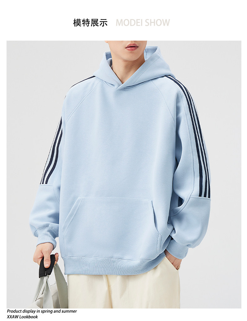 美式潮牌連帽衛衣男2025春秋季重磅三條杠休閒運動情侶上衣外套