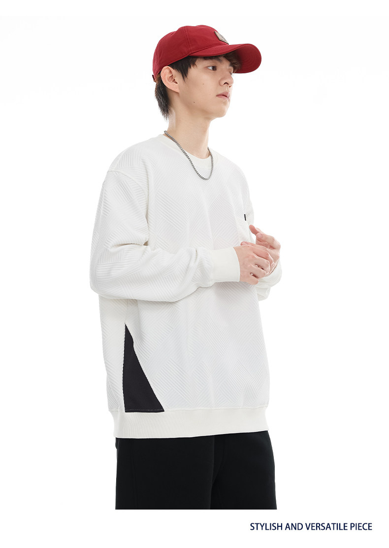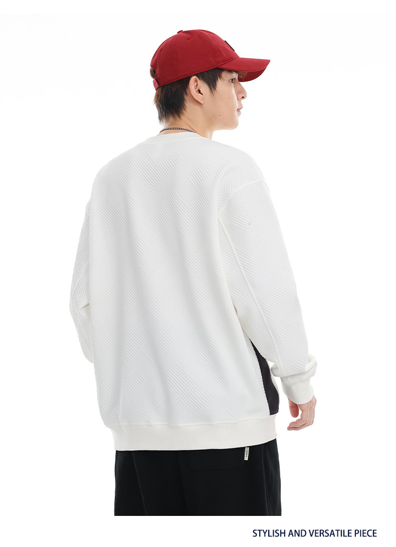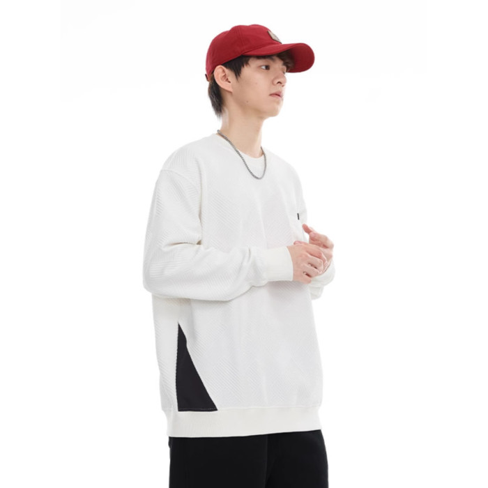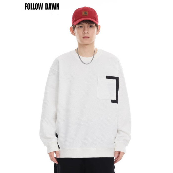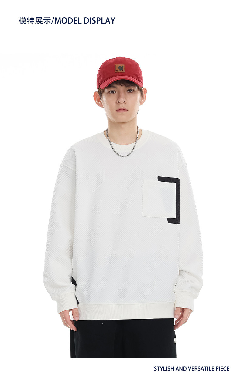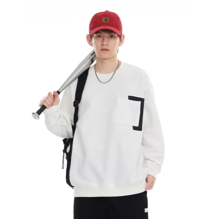 美式重磅肌理感圓領衛衣男士2025春季潮流寬鬆休閒套頭白色內搭