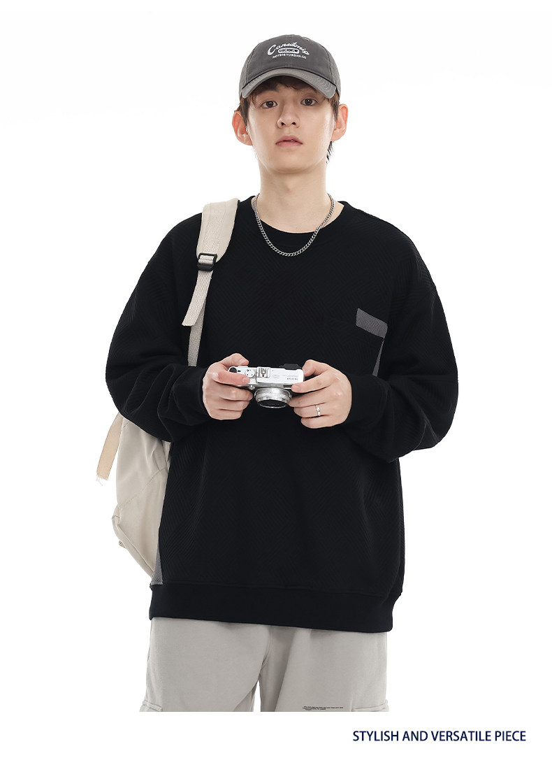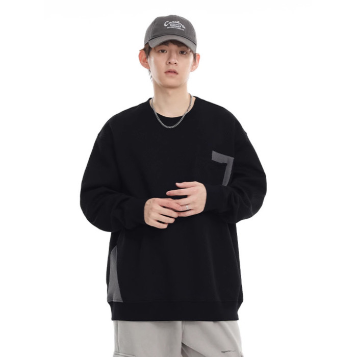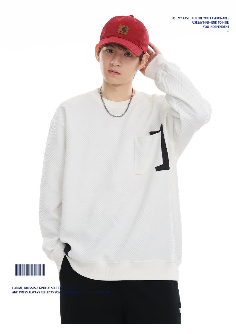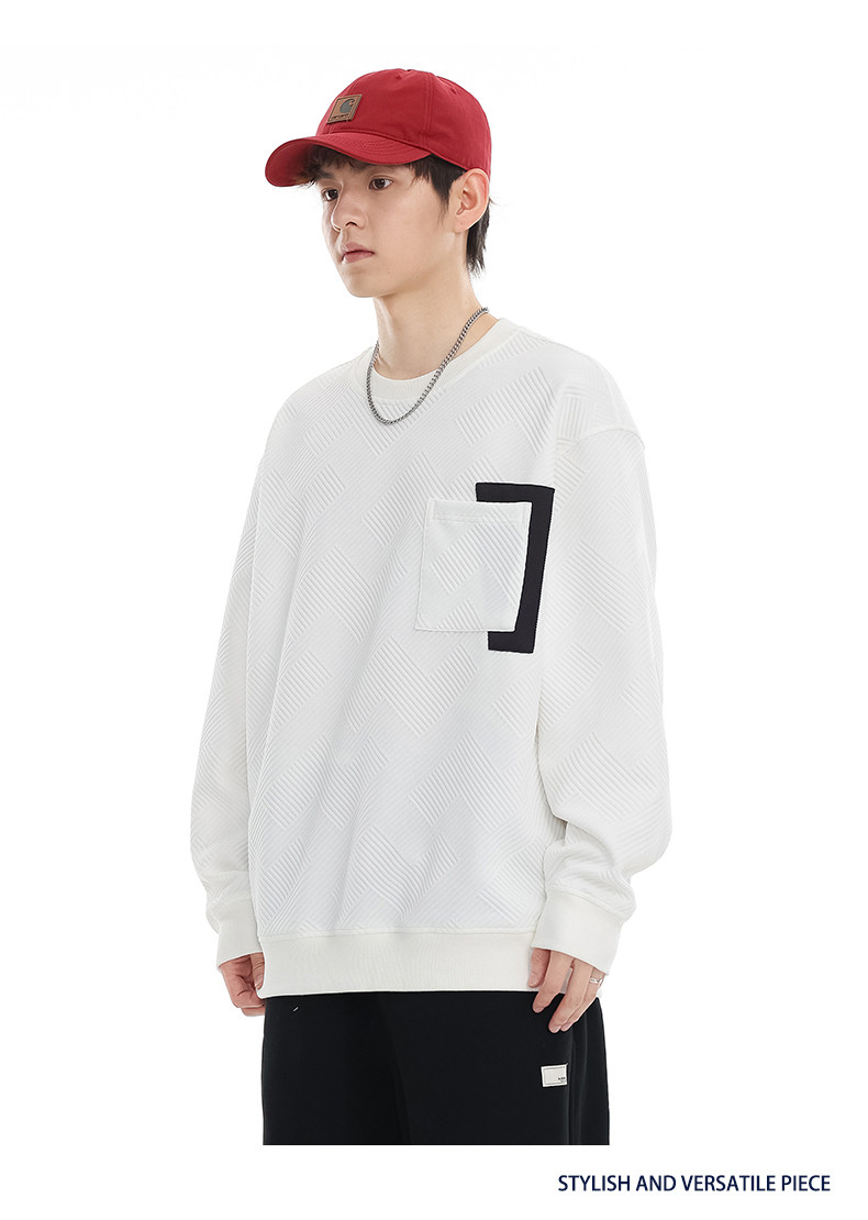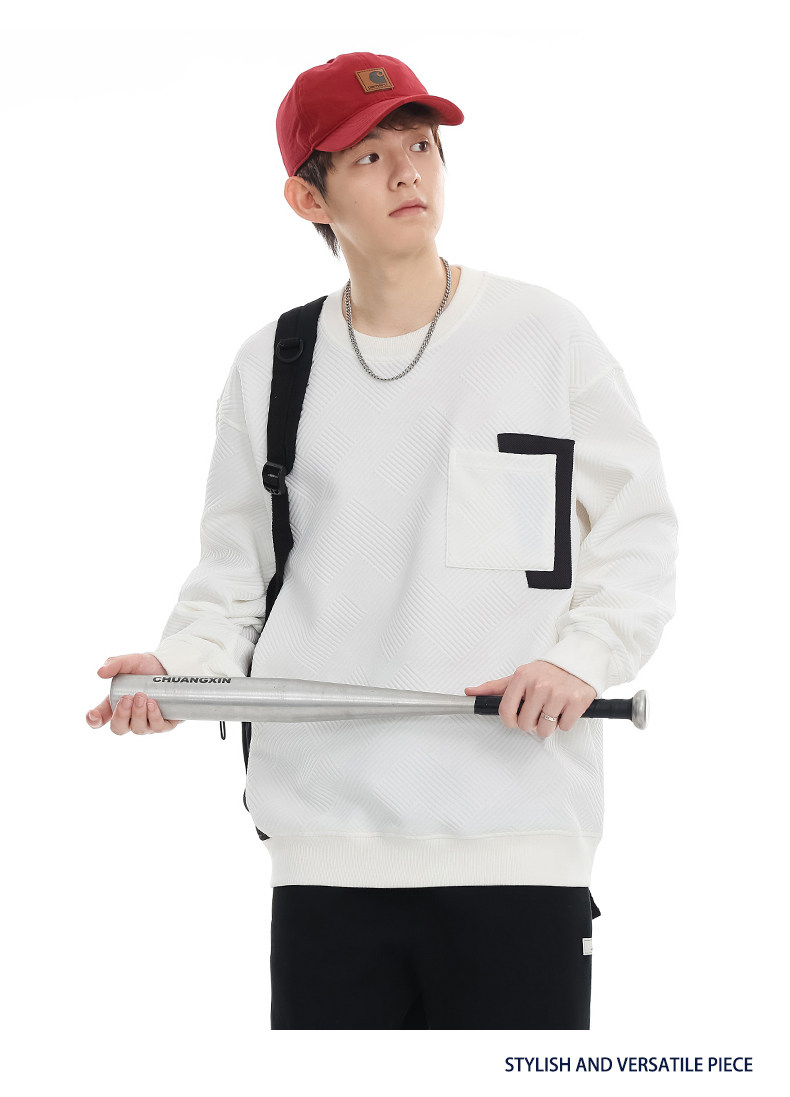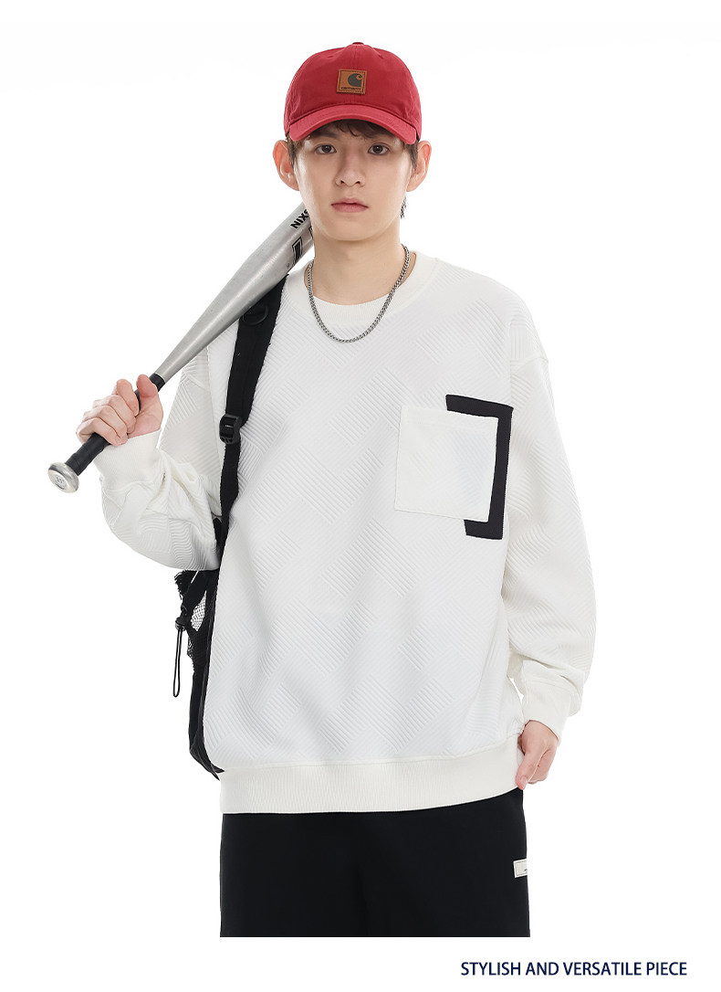 美式重磅肌理感圓領衛衣男士2025春季潮流寬鬆休閒套頭白色內搭