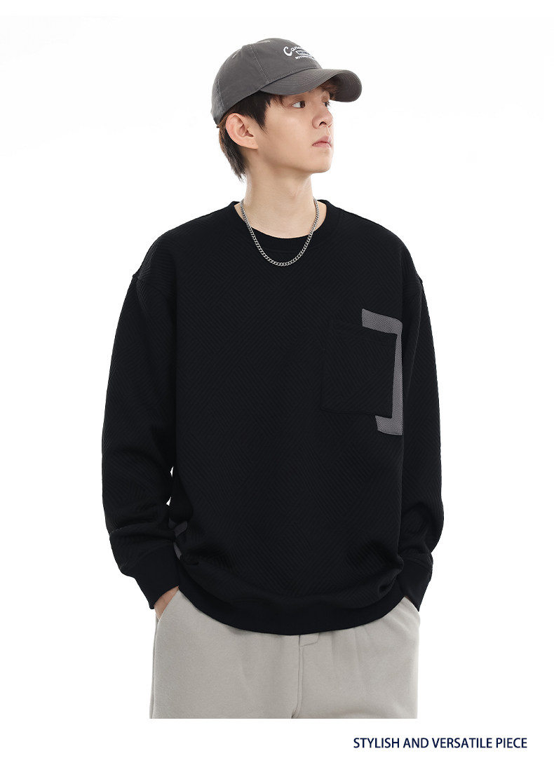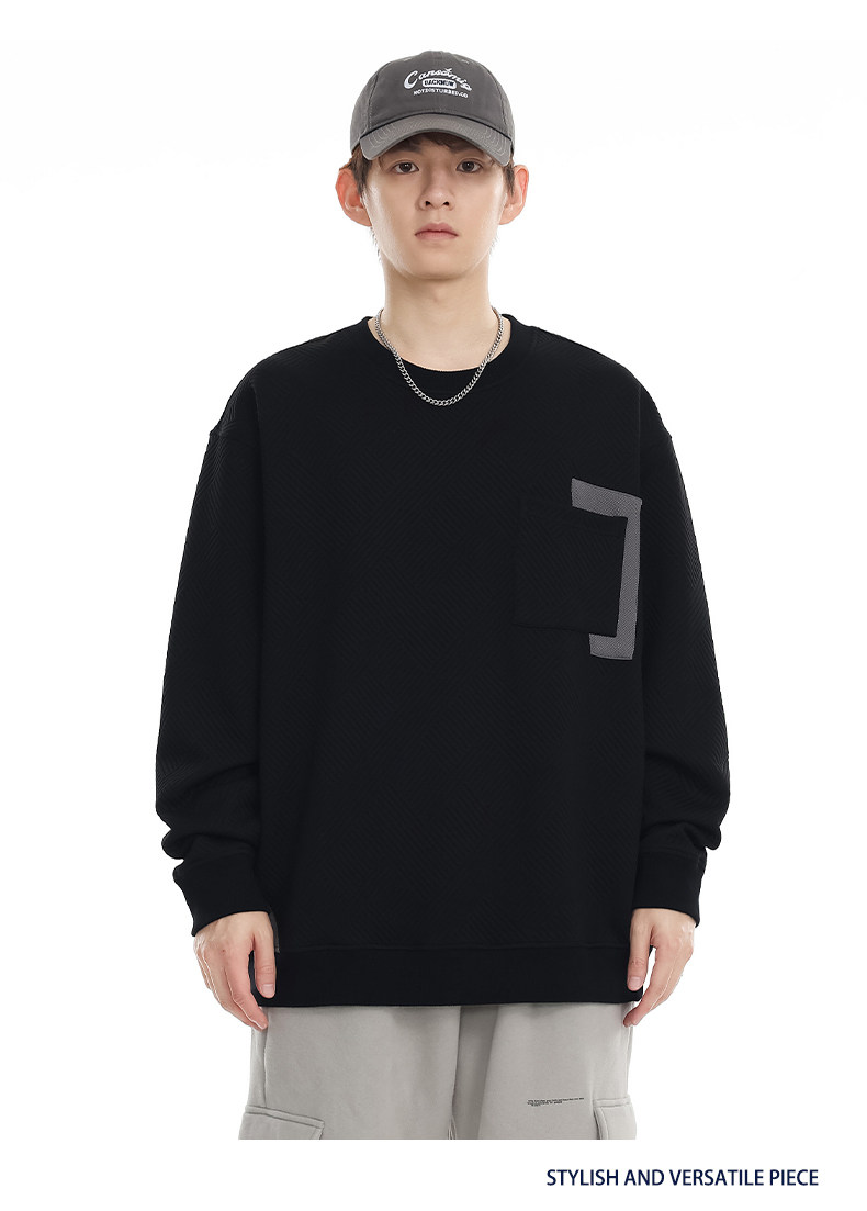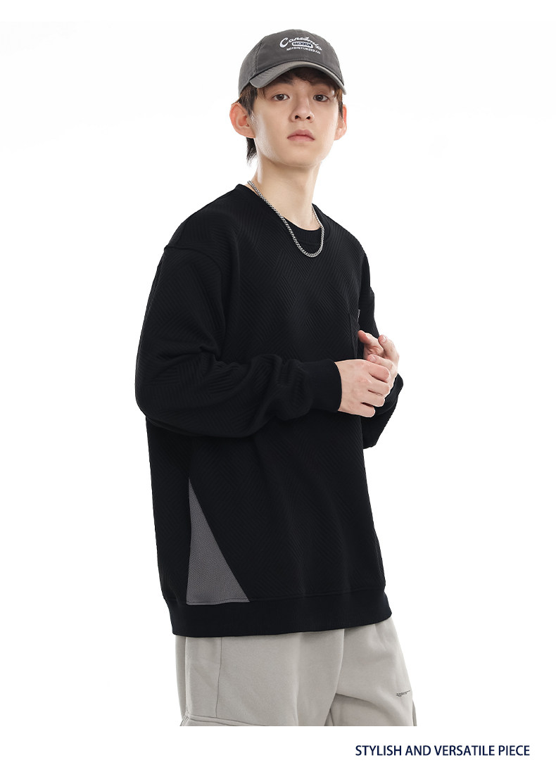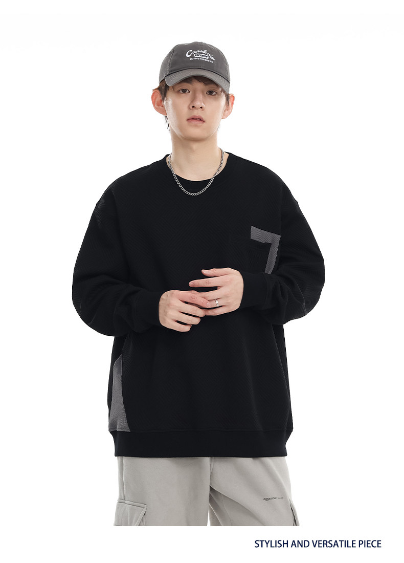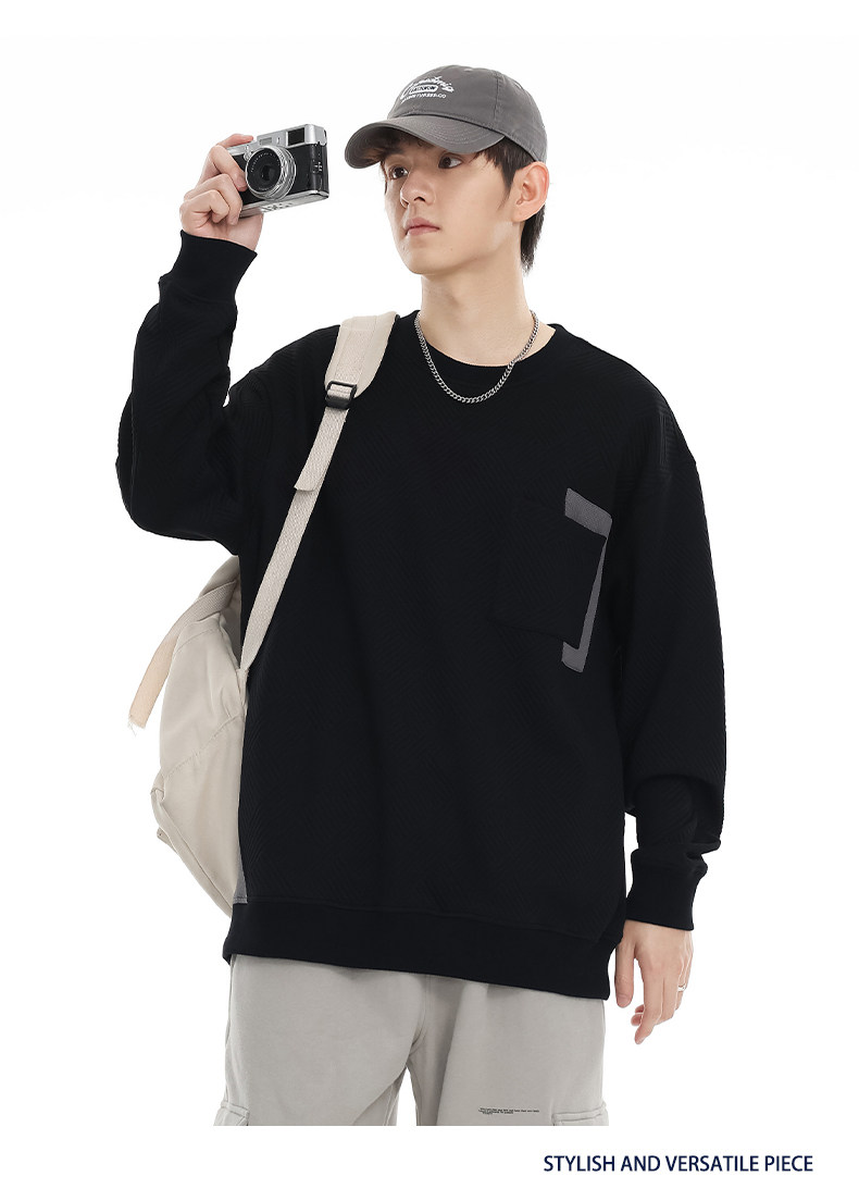 美式重磅肌理感圓領衛衣男士2025春季潮流寬鬆休閒套頭白色內搭