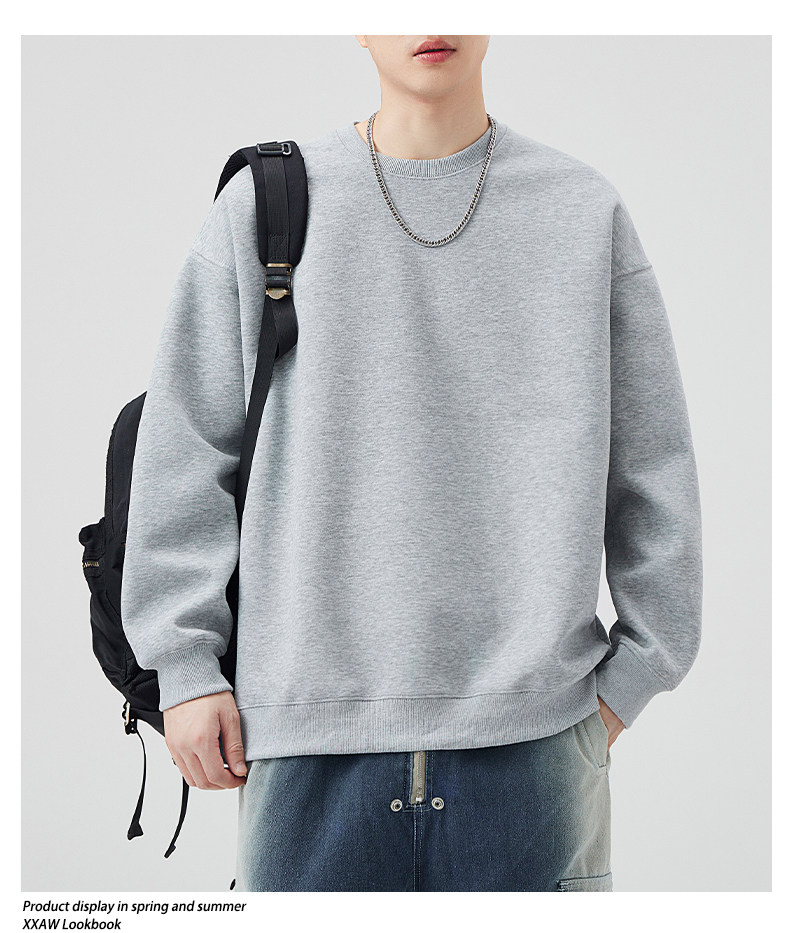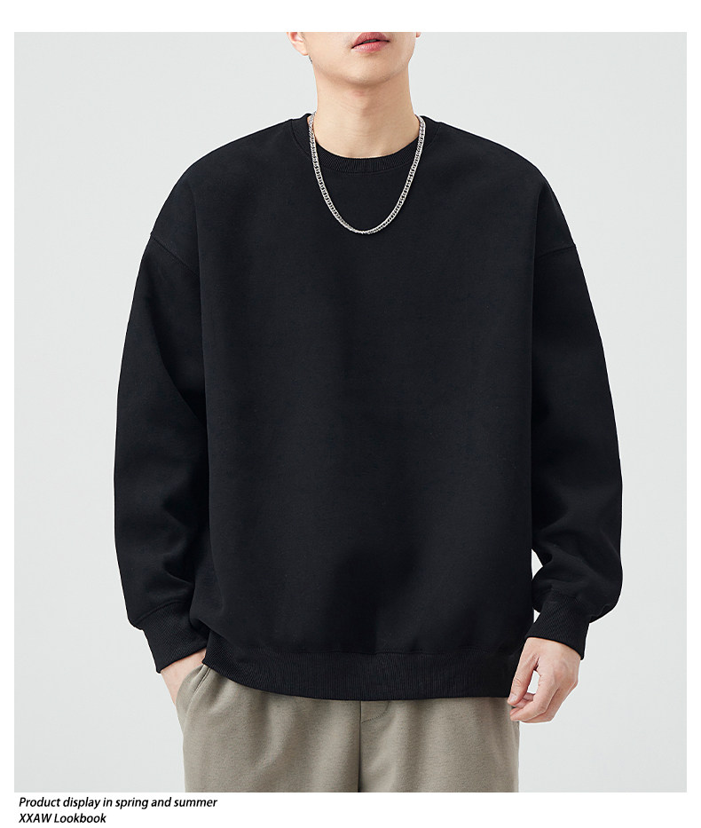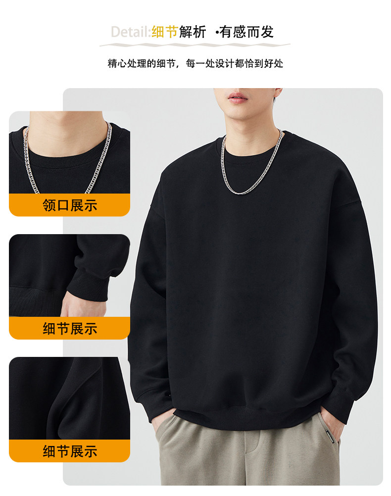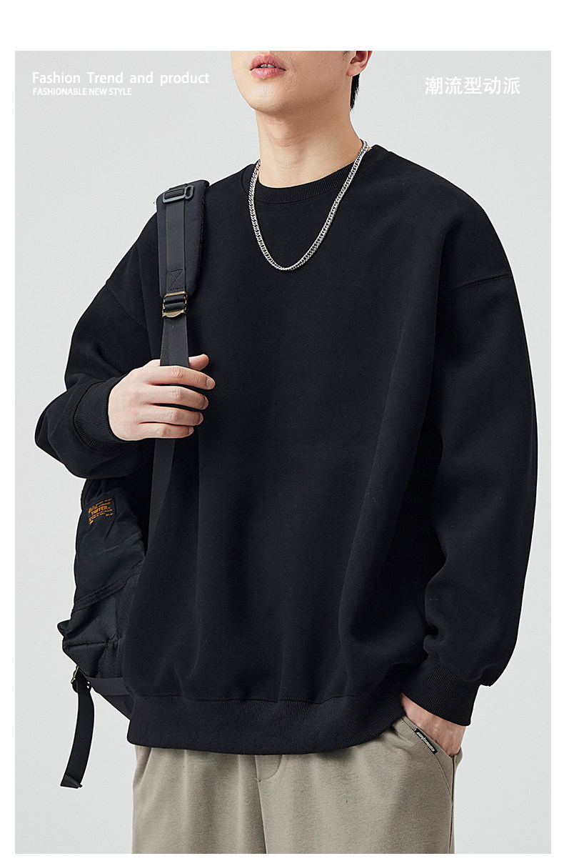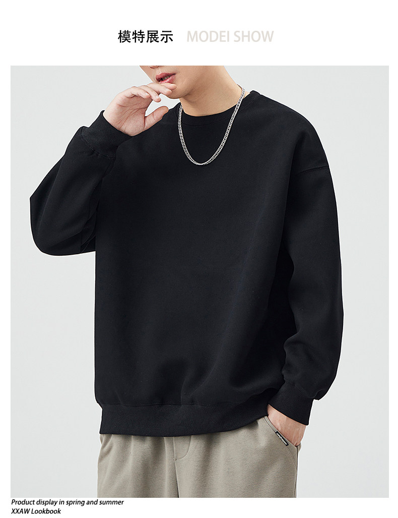 400G重磅圓領衛衣男士春秋季潮牌純色寬鬆內搭打底衫上衣情侶外套