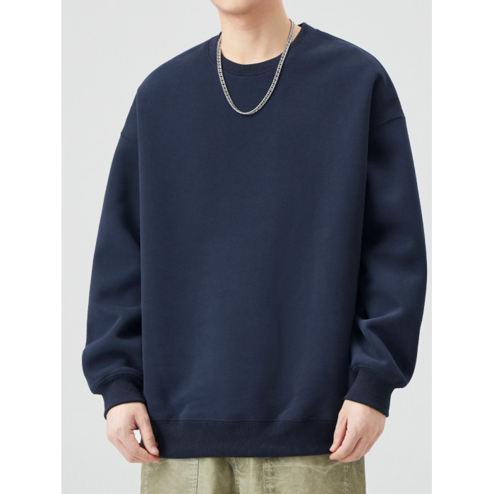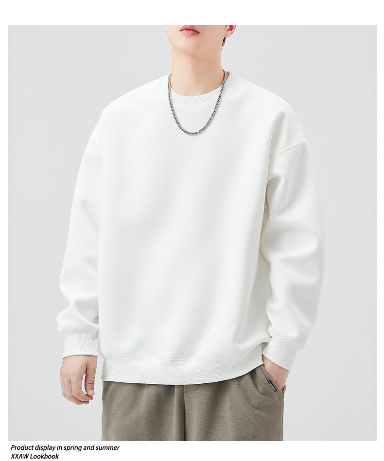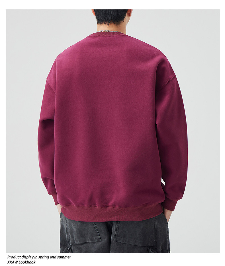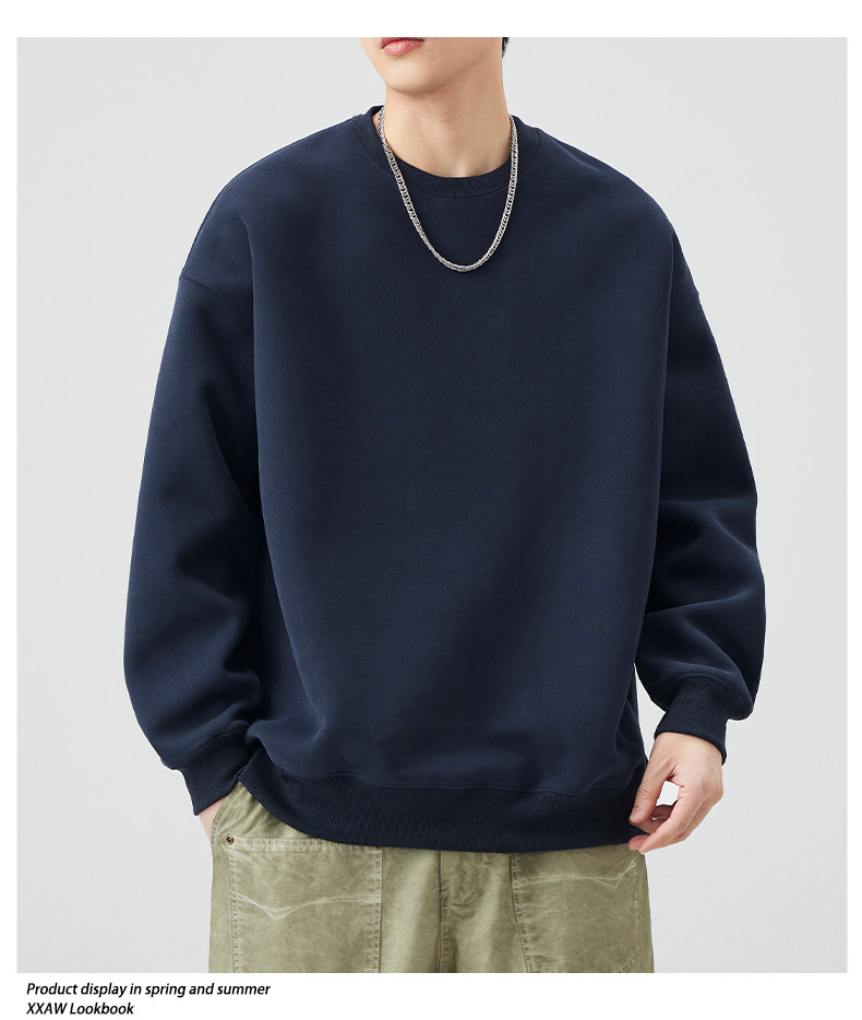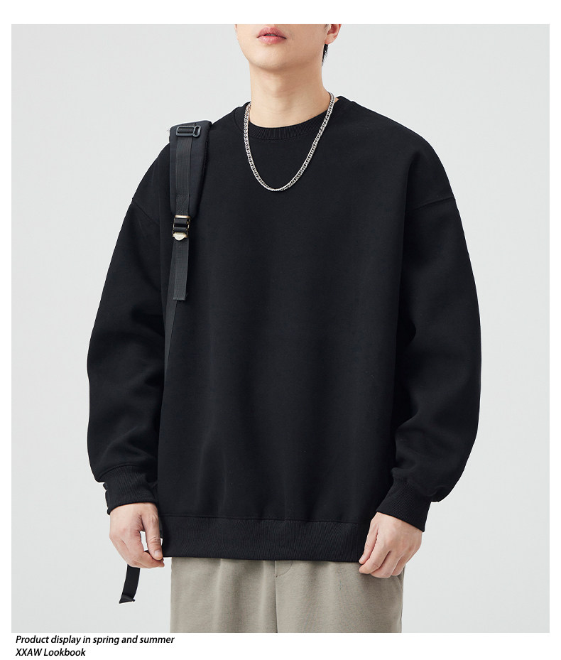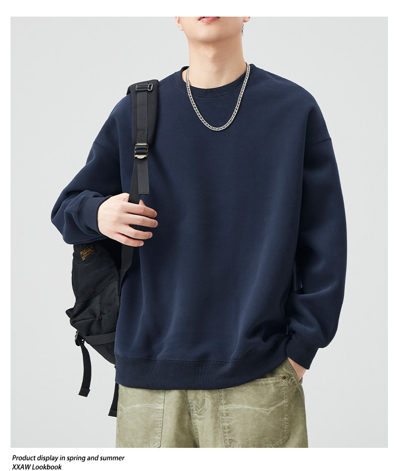 400G重磅圓領衛衣男士春秋季潮牌純色寬鬆內搭打底衫上衣情侶外套