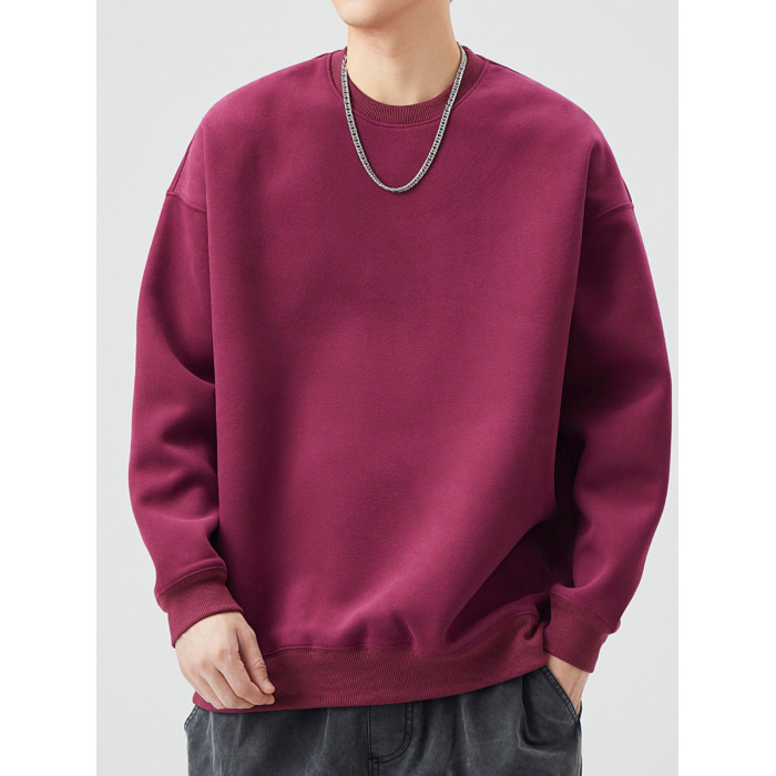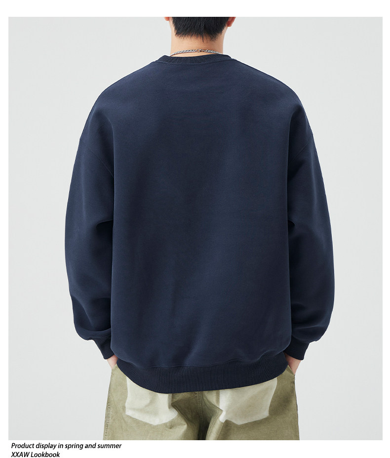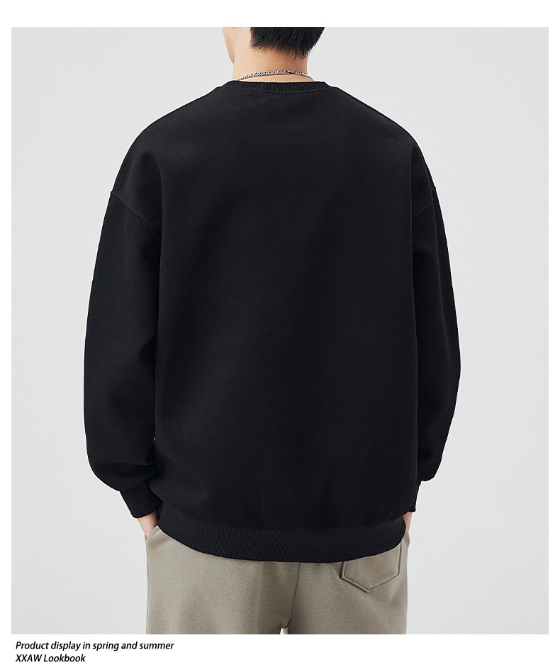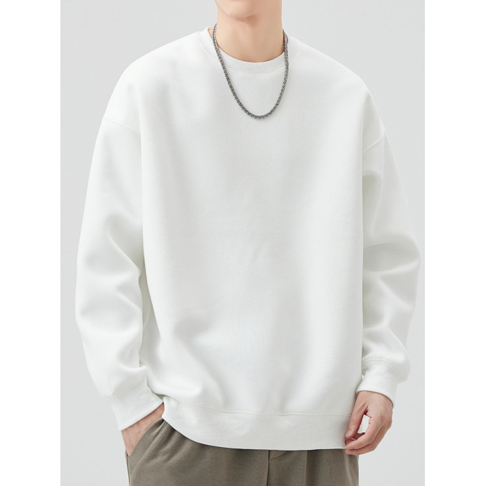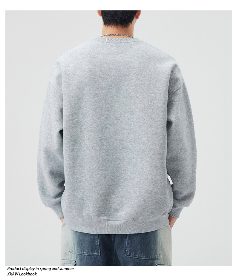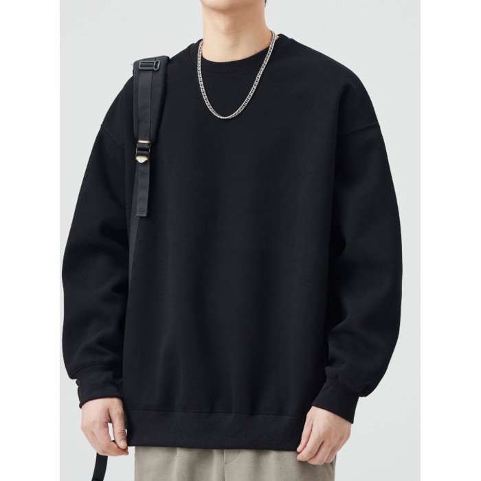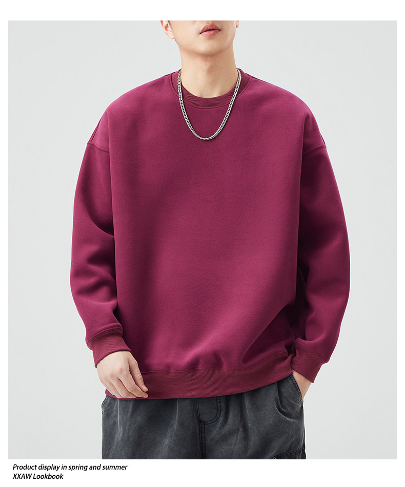 400G重磅圓領衛衣男士春秋季潮牌純色寬鬆內搭打底衫上衣情侶外套