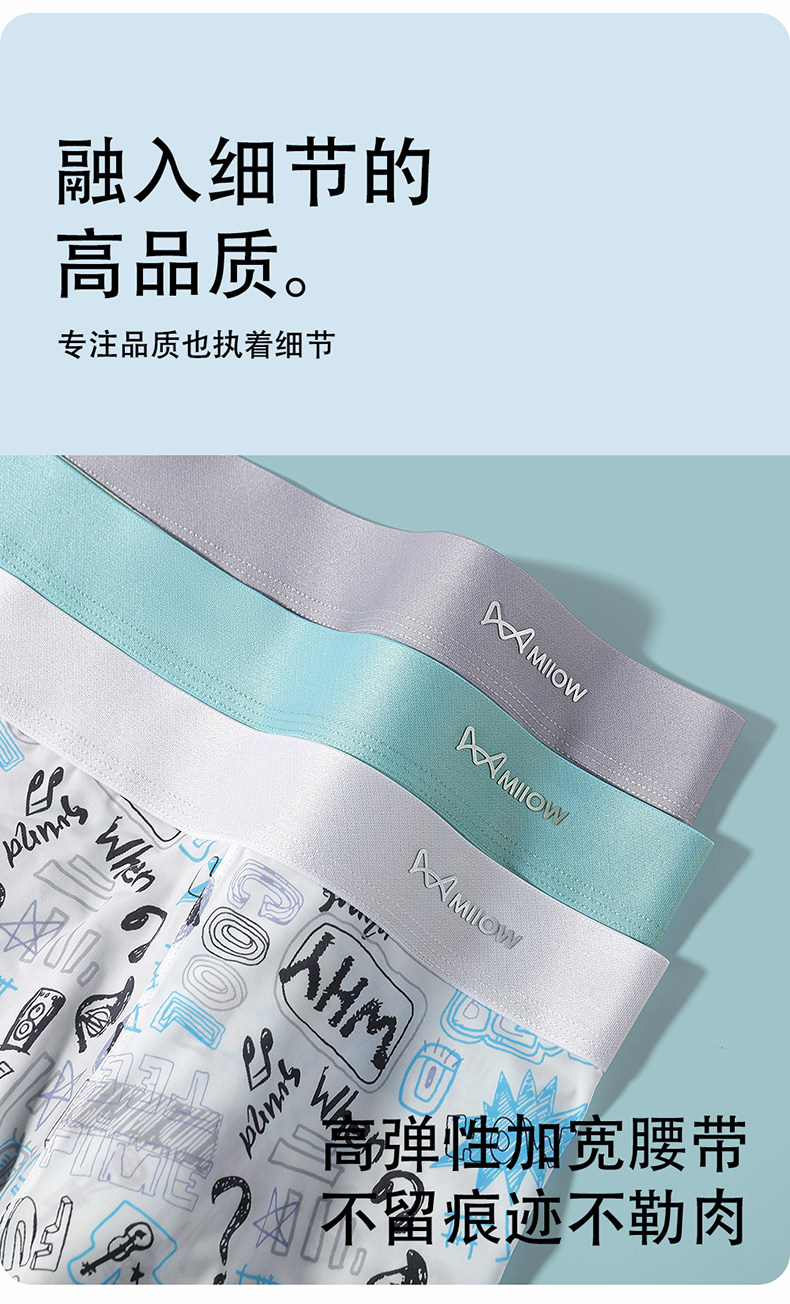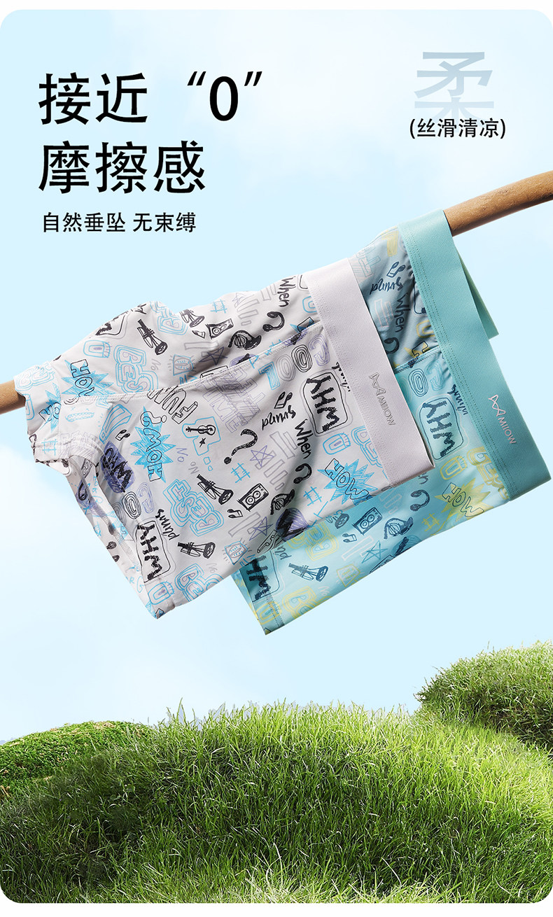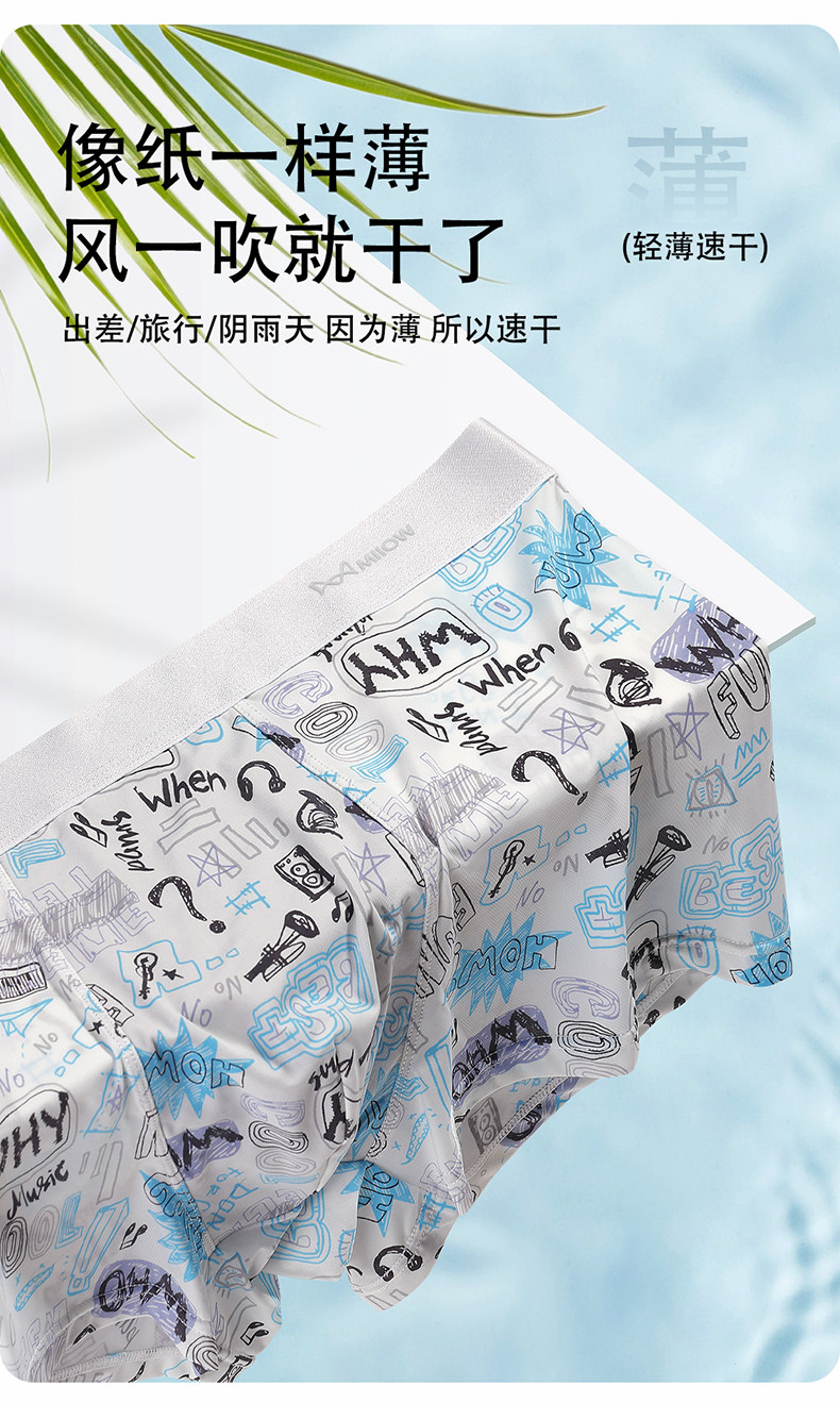 貓人男士內褲男生冰絲印花男式四角褲2025年新款青少年平角短褲頭