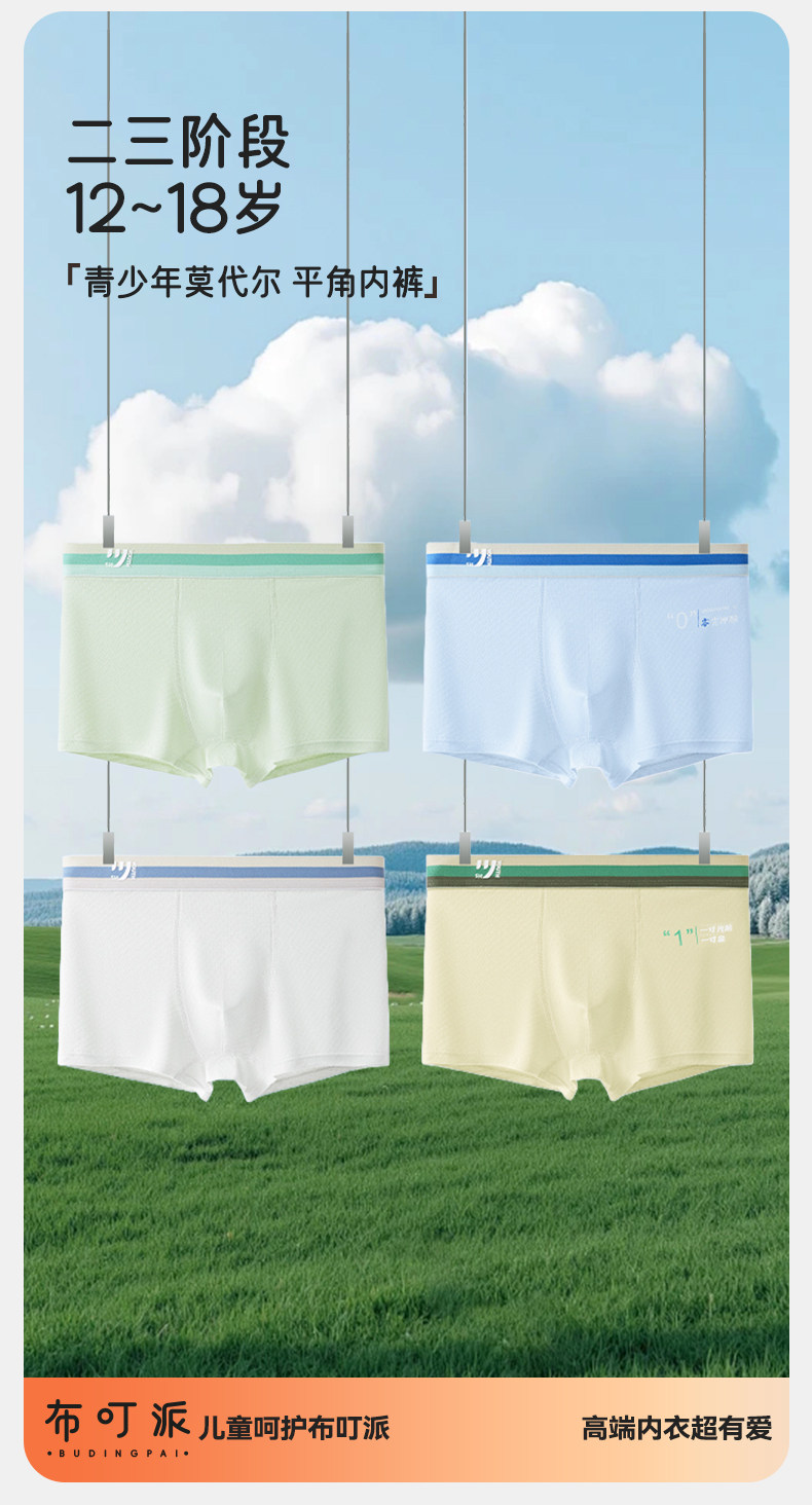 青少年莫代爾內褲男生發育期初高中學生親膚透氣抑菌加寬大四角褲