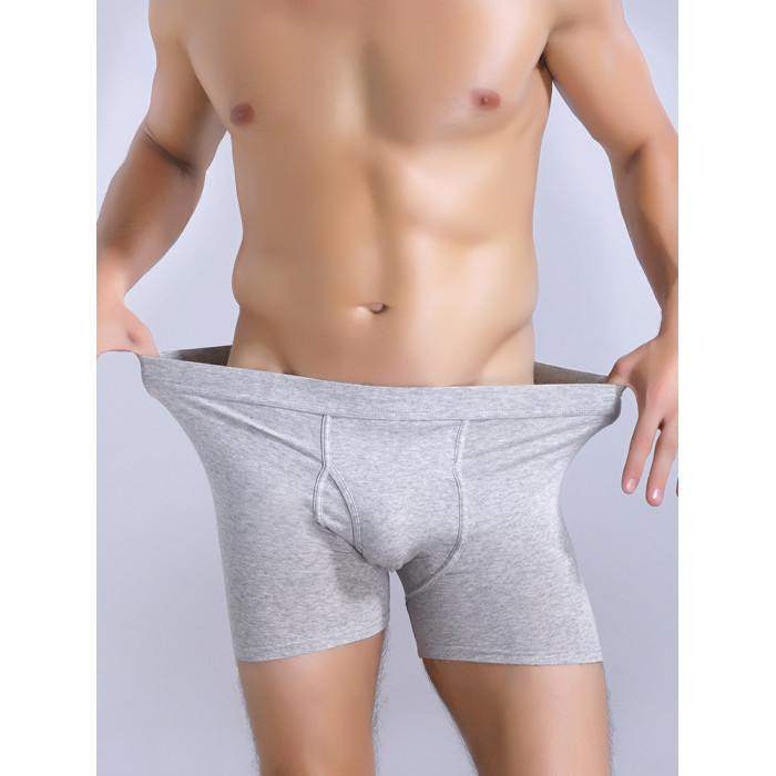 男士內褲純棉高腰前開洞加長款防磨腿平角褲側開口開襠四角短褲頭