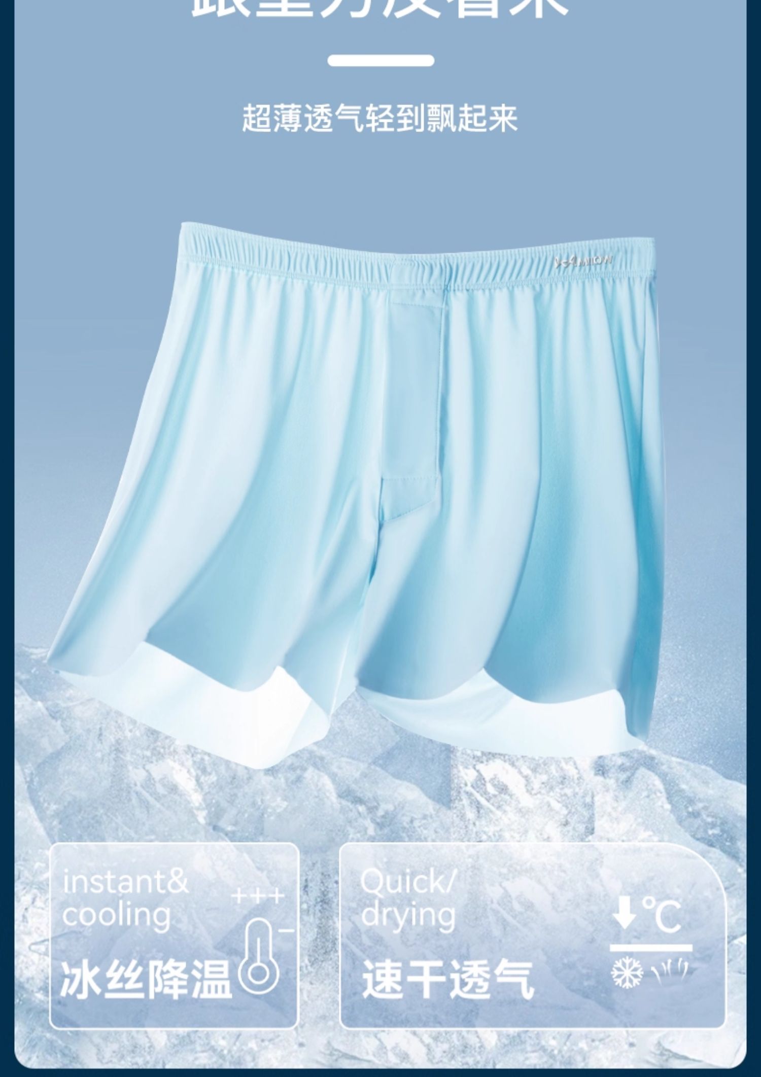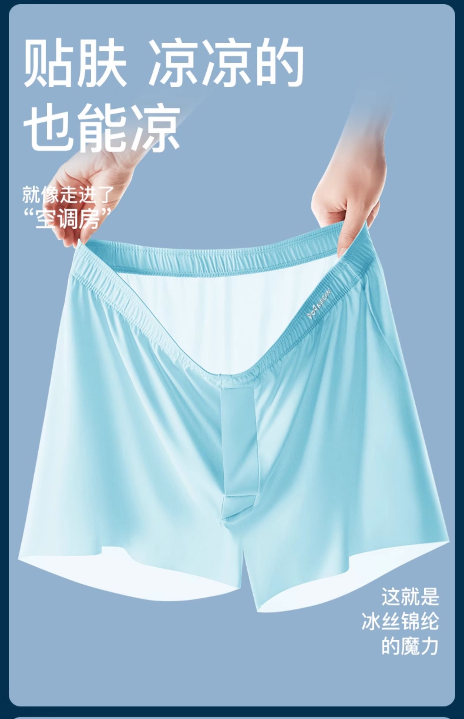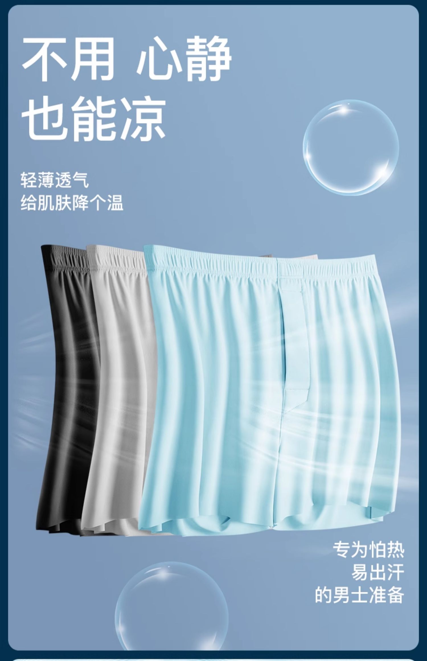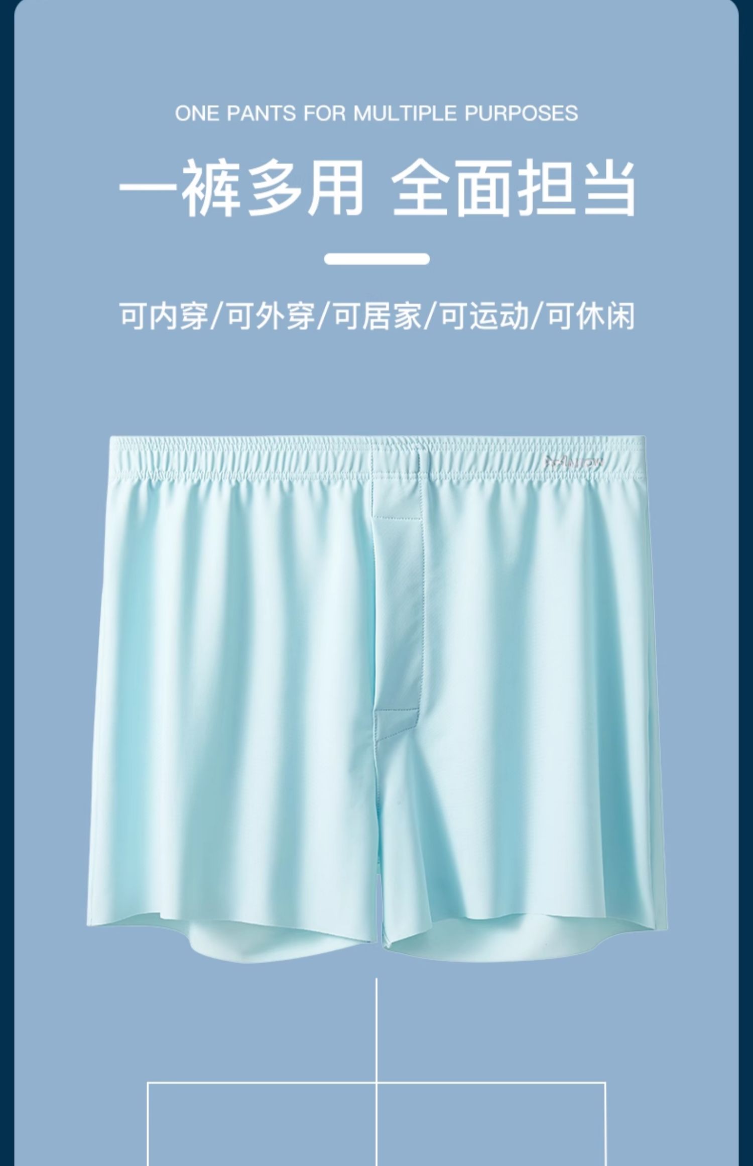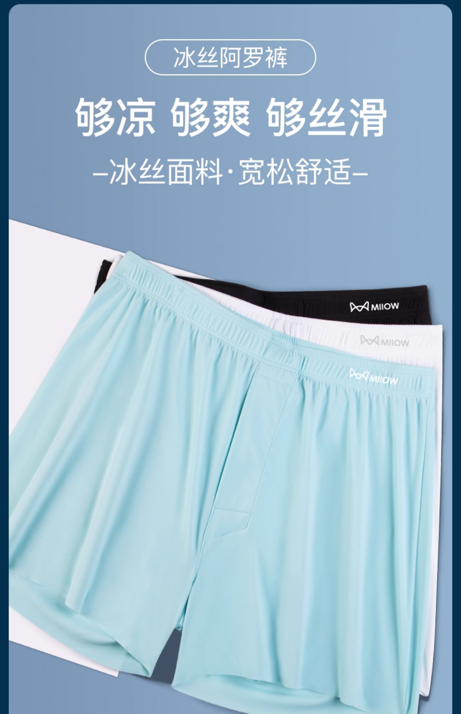貓人冰絲阿羅褲男士內褲男款夏季涼感平角可外穿寬松大碼居家睡褲