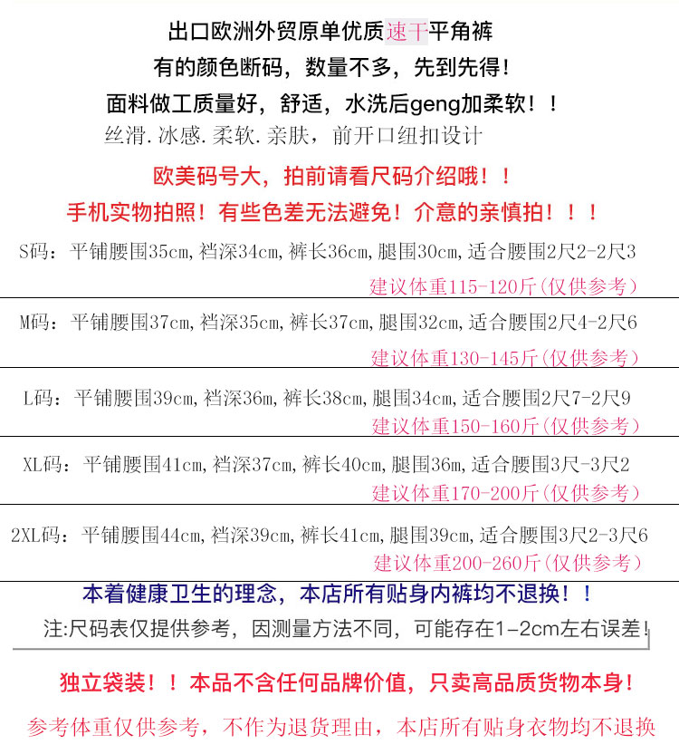 出口速乾冰絲男平角褲運動內褲男夏季前開口紐釦透氣加肥大碼