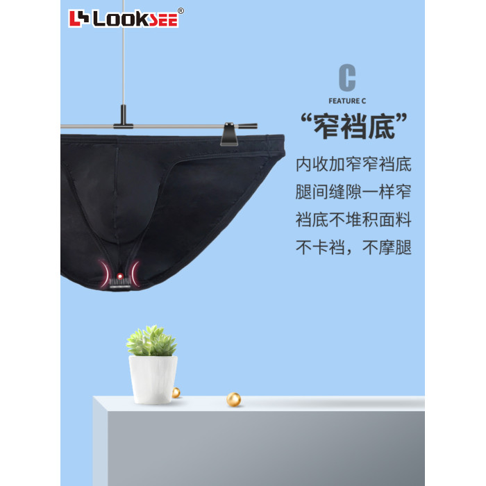 純黑色超薄款冰絲 低腰細邊小三角褲男士內褲U凸個性感半透明高叉