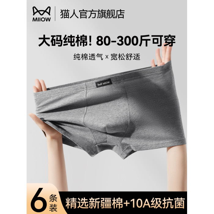 貓人大碼男士內褲男款純棉加肥加大胖子男式平角短褲肥佬四角褲衩