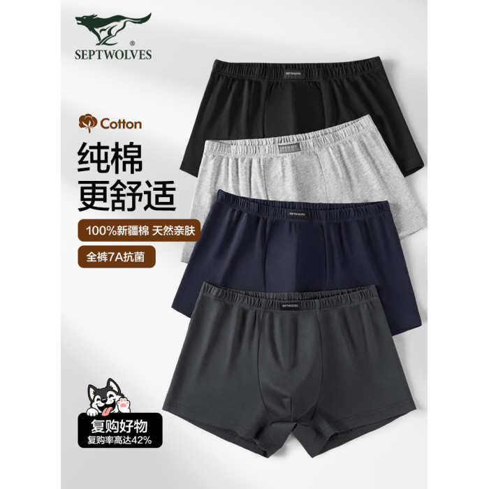七匹狼男士內褲男生純棉四角褲100%全棉寬松大碼男款平角褲頭短褲
