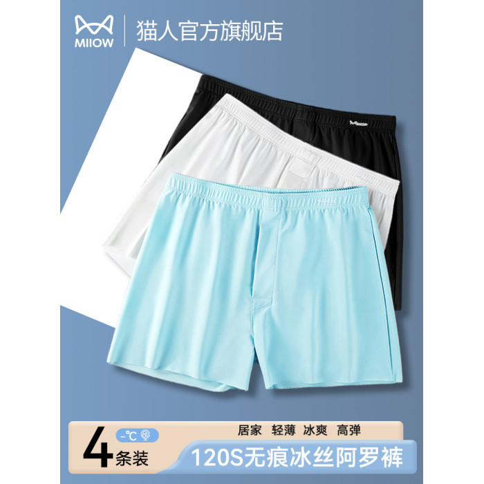 貓人男士內褲冰絲阿羅褲夏季涼感無痕薄款寬松運動大碼四角短褲頭