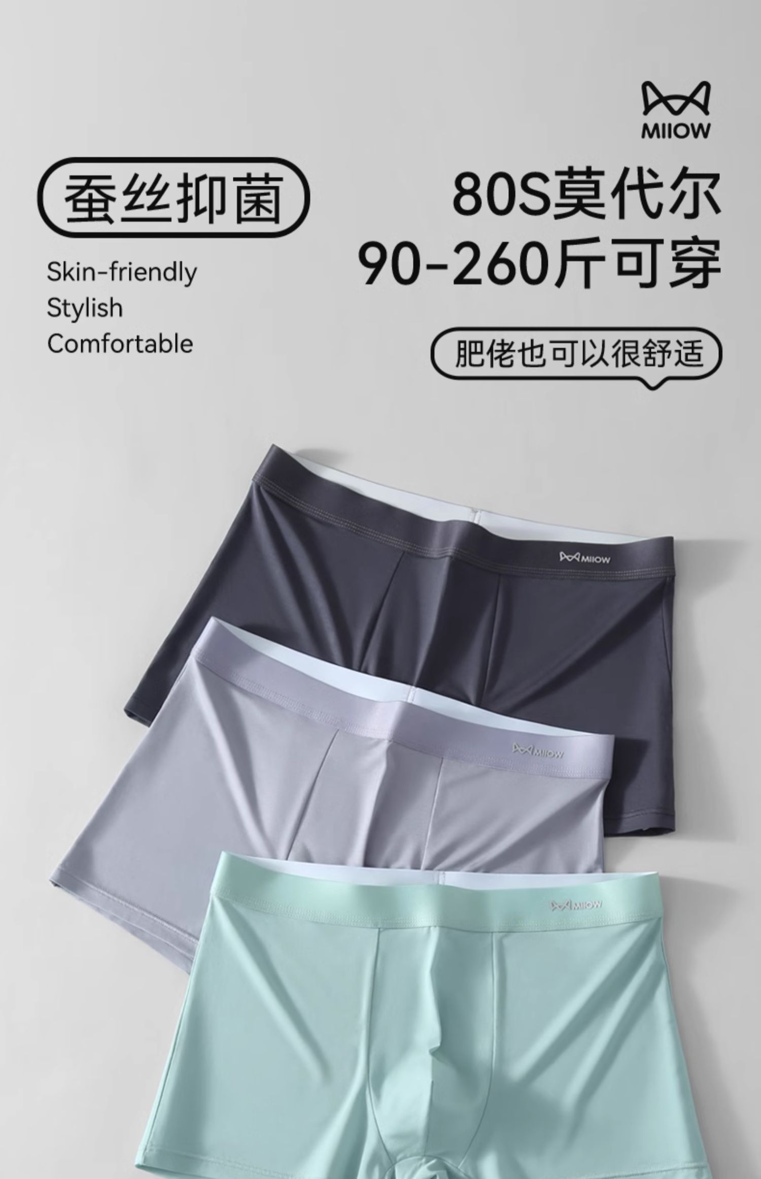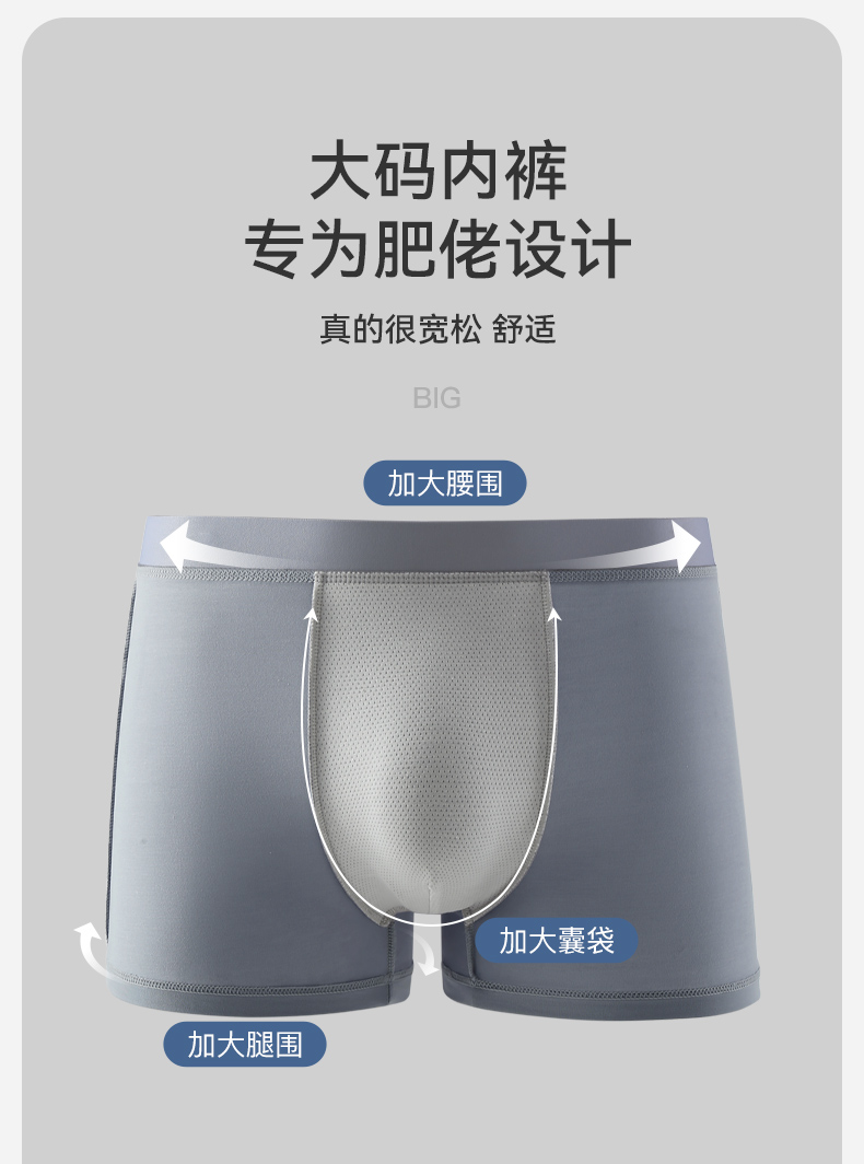 貓人莫代爾男士內褲冰絲四角褲無痕男生款透氣大碼胖子平角短褲頭