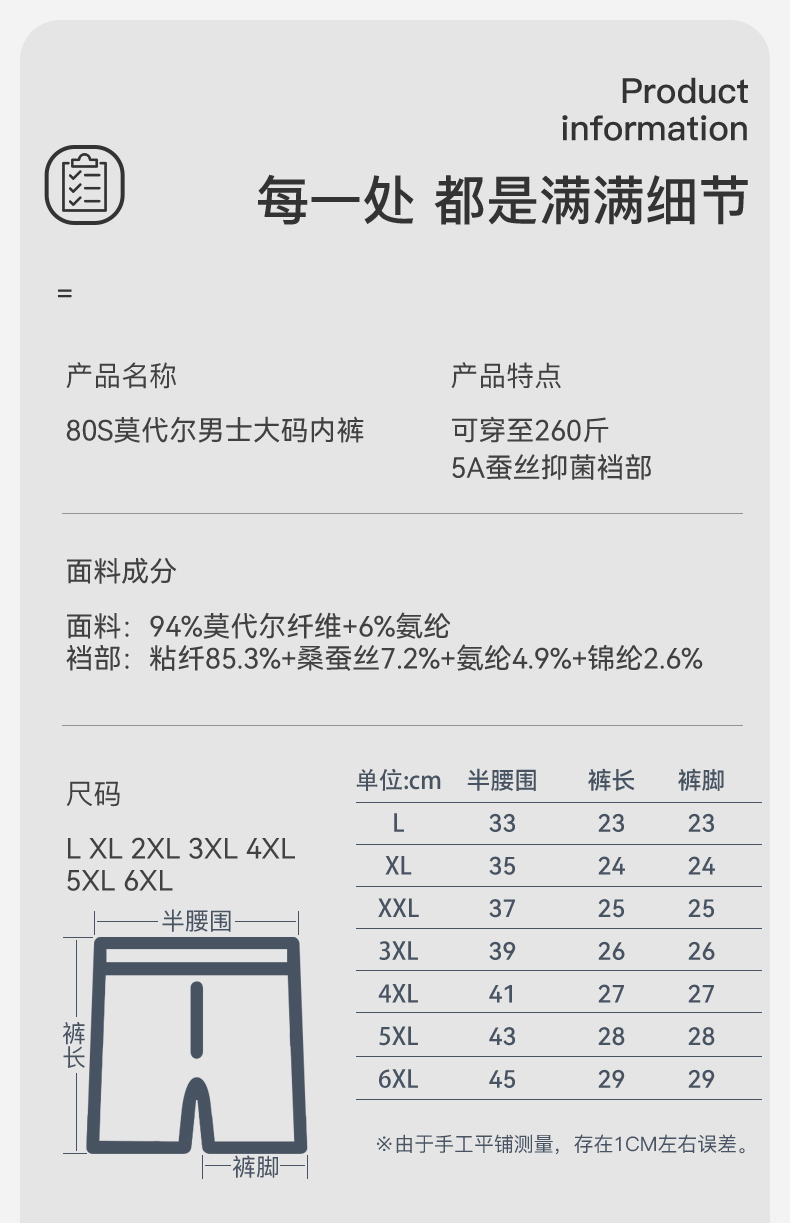 | 大身材質成分 | 莫代爾纖維(莫代爾)94% 聚氨酯彈性纖維(氨綸)6% |