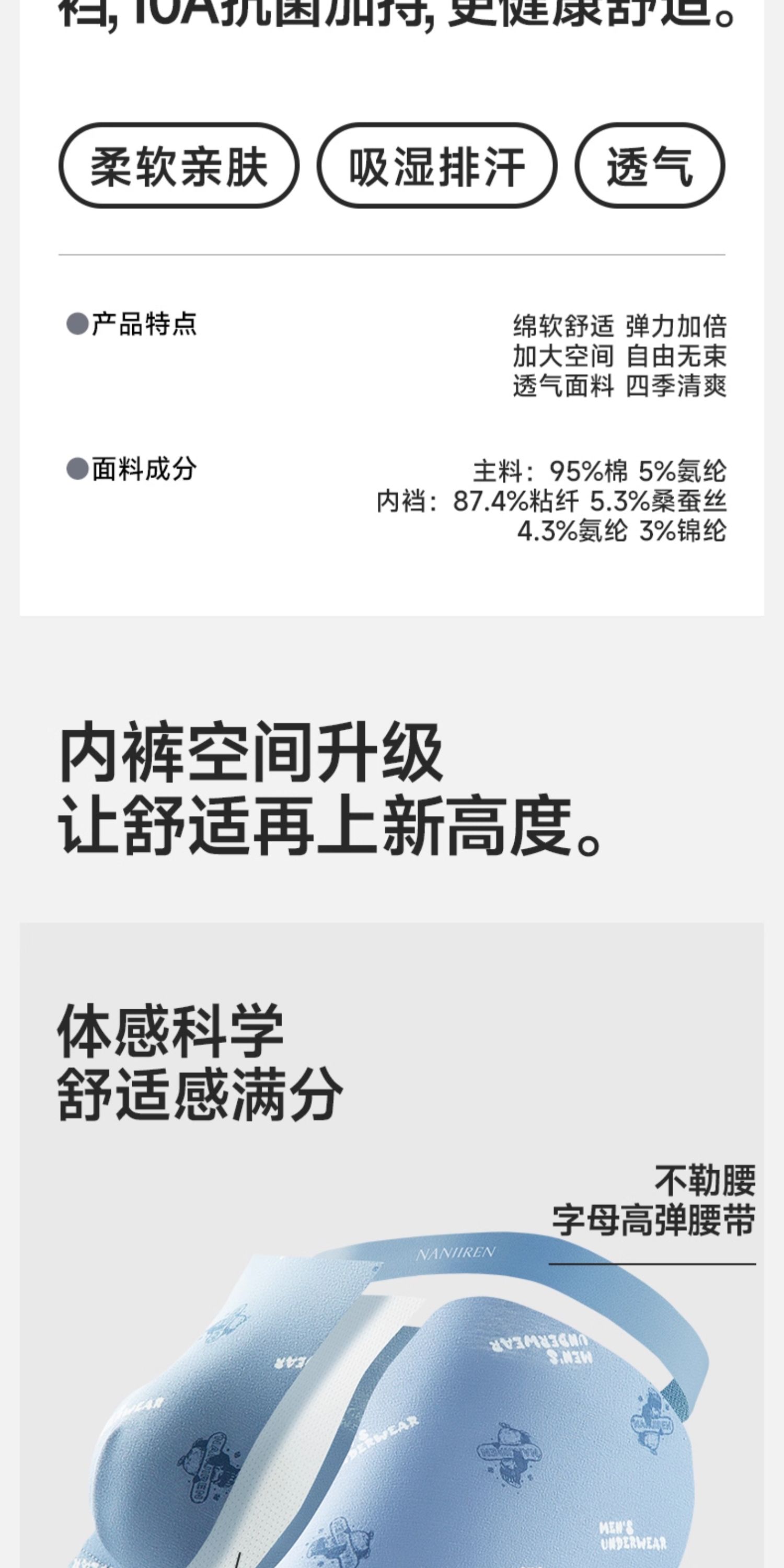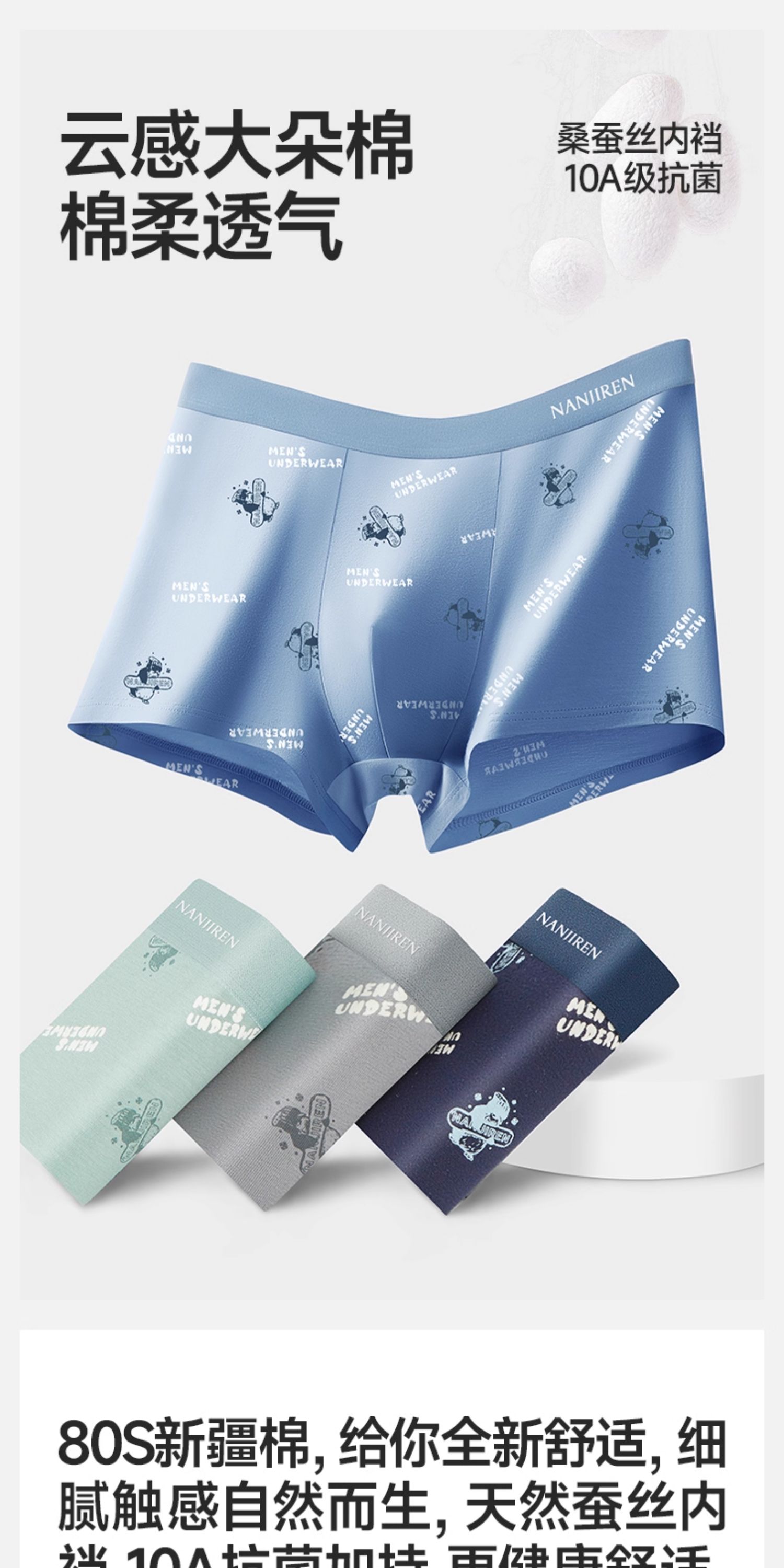 南極人男士內褲純棉男生男款四角褲平角短褲頭透氣青少年2025新款