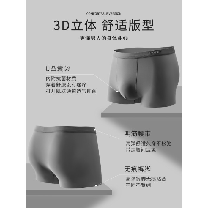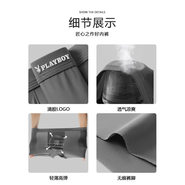 花花公子男士內褲男生冰絲夏薄款四角褲無痕抗菌平角短褲2025新款