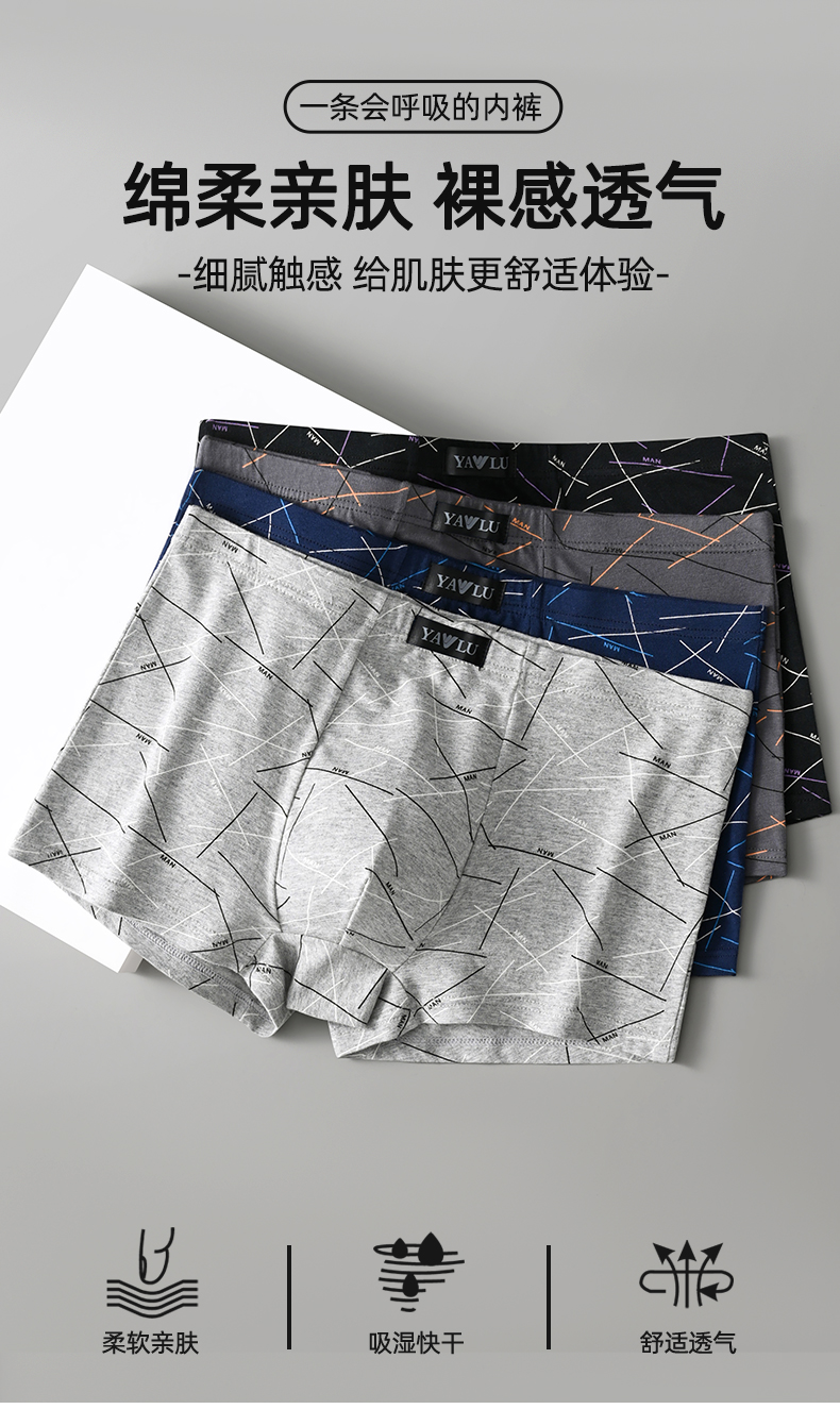 雅鹿男士內褲純棉舒適抗菌四角短褲透氣高彈大碼男生平角褲衩男