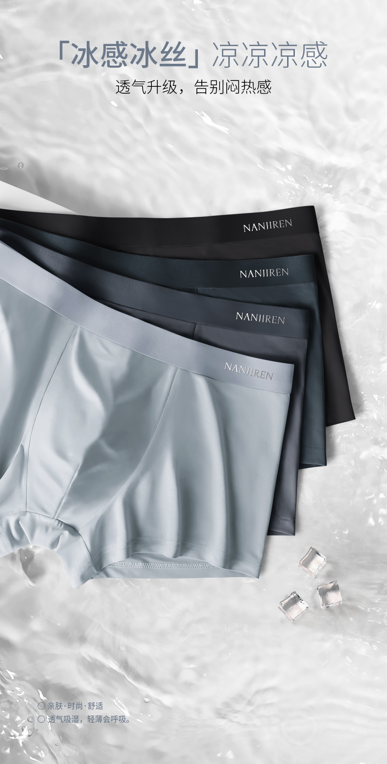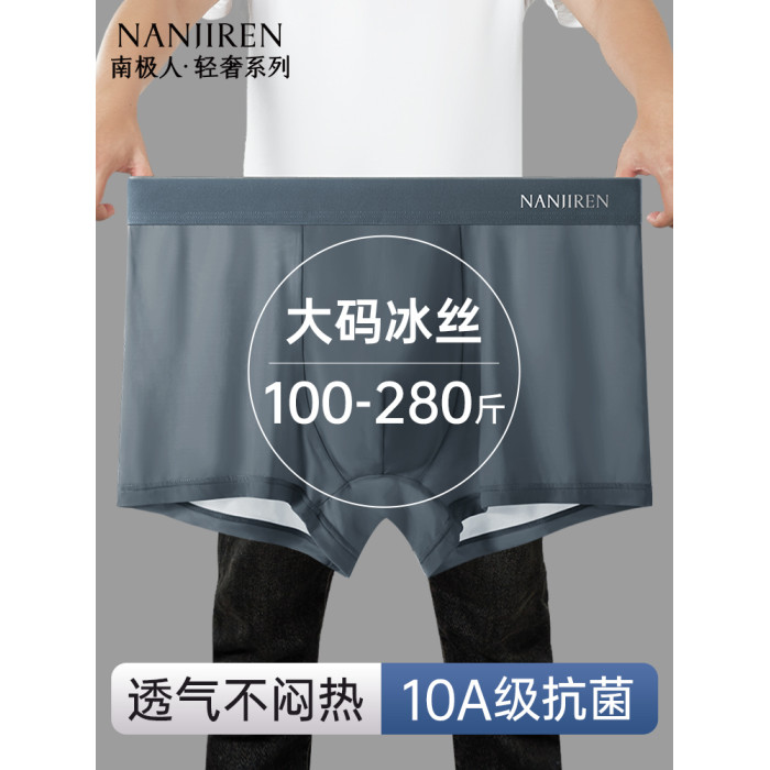 南極人冰絲內褲男士加肥加大碼胖子平角短褲肥佬四角褲衩夏季薄款