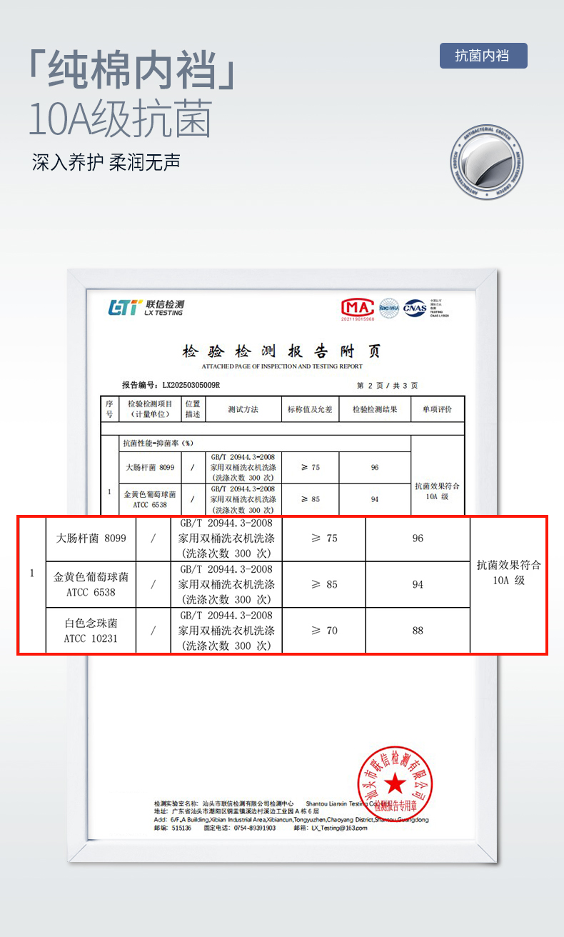 | 襠部材質成分 | 棉95% 聚氨酯彈性纖維(氨綸)5% |