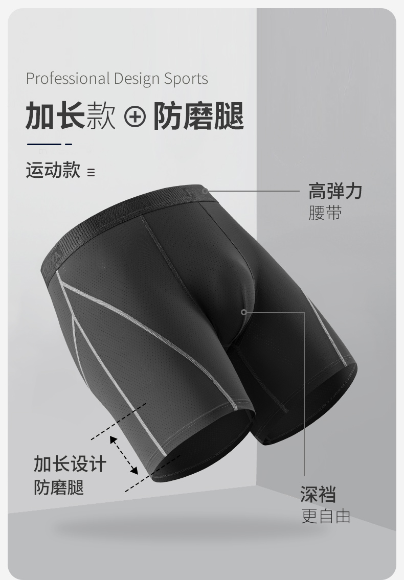 速乾運動內褲男款防磨腿抗菌襠透氣籃球跑步健身訓練平角褲加長款